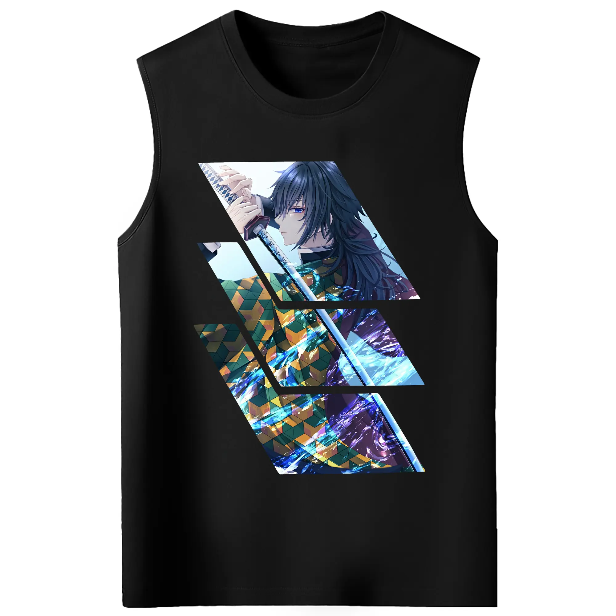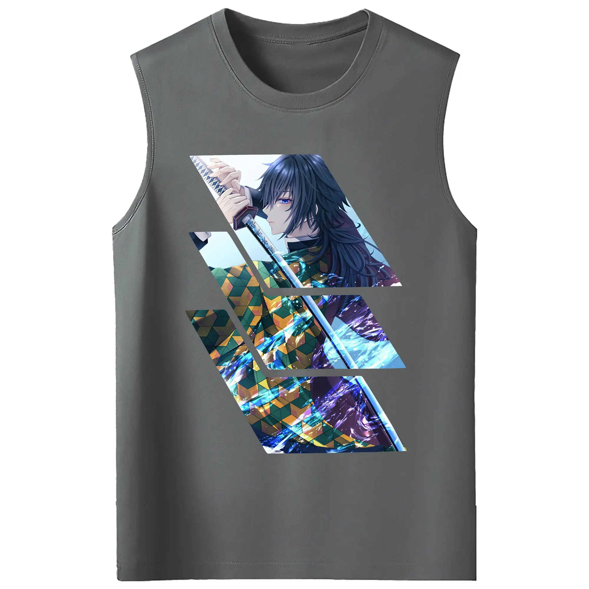 鬼滅の刃 グッズ,冨岡 義勇 - コットン100% タンクトップ ・ フロントプリント ・ タイトフィット ・ 快適 通気性 ・ スポーツ カジュアル 散歩用