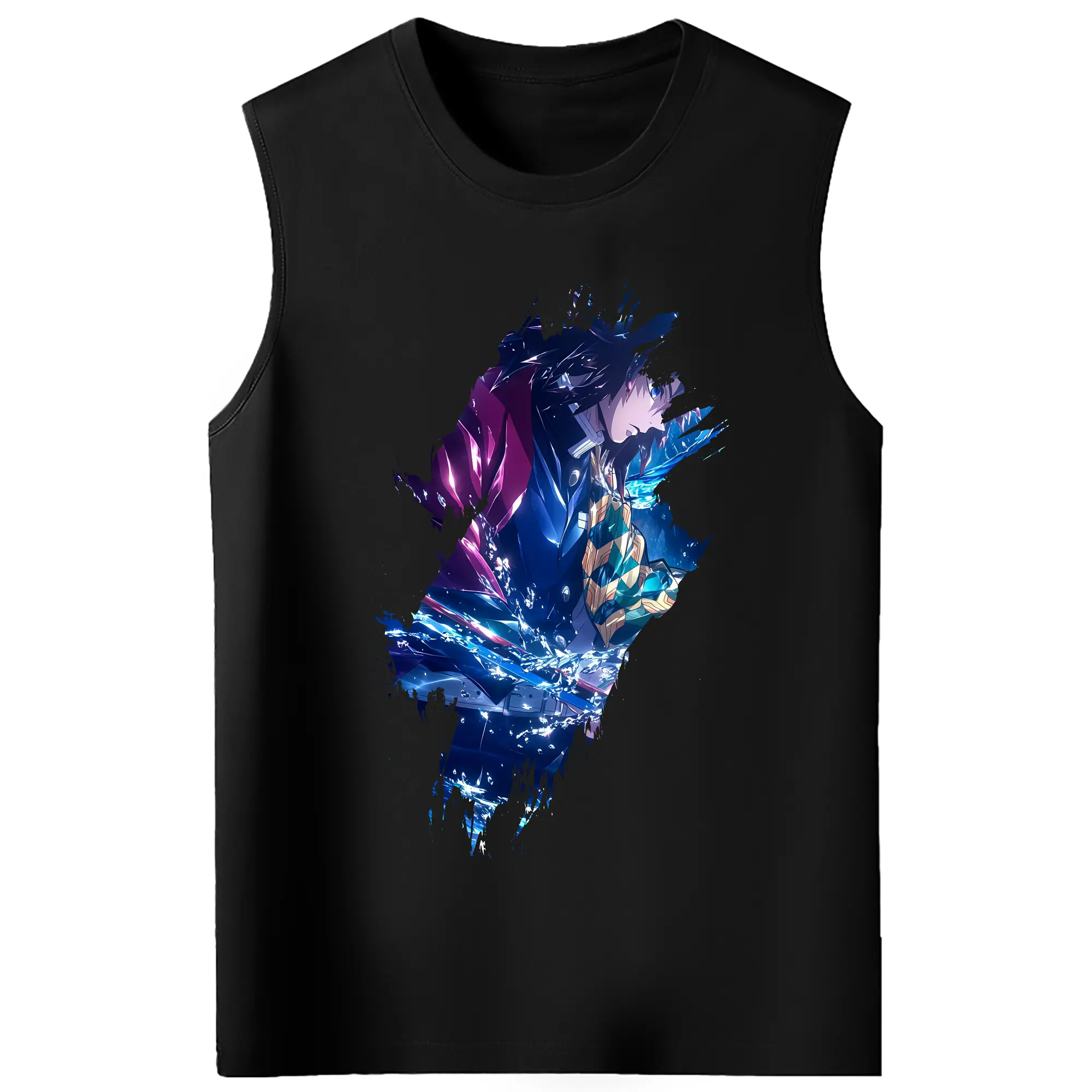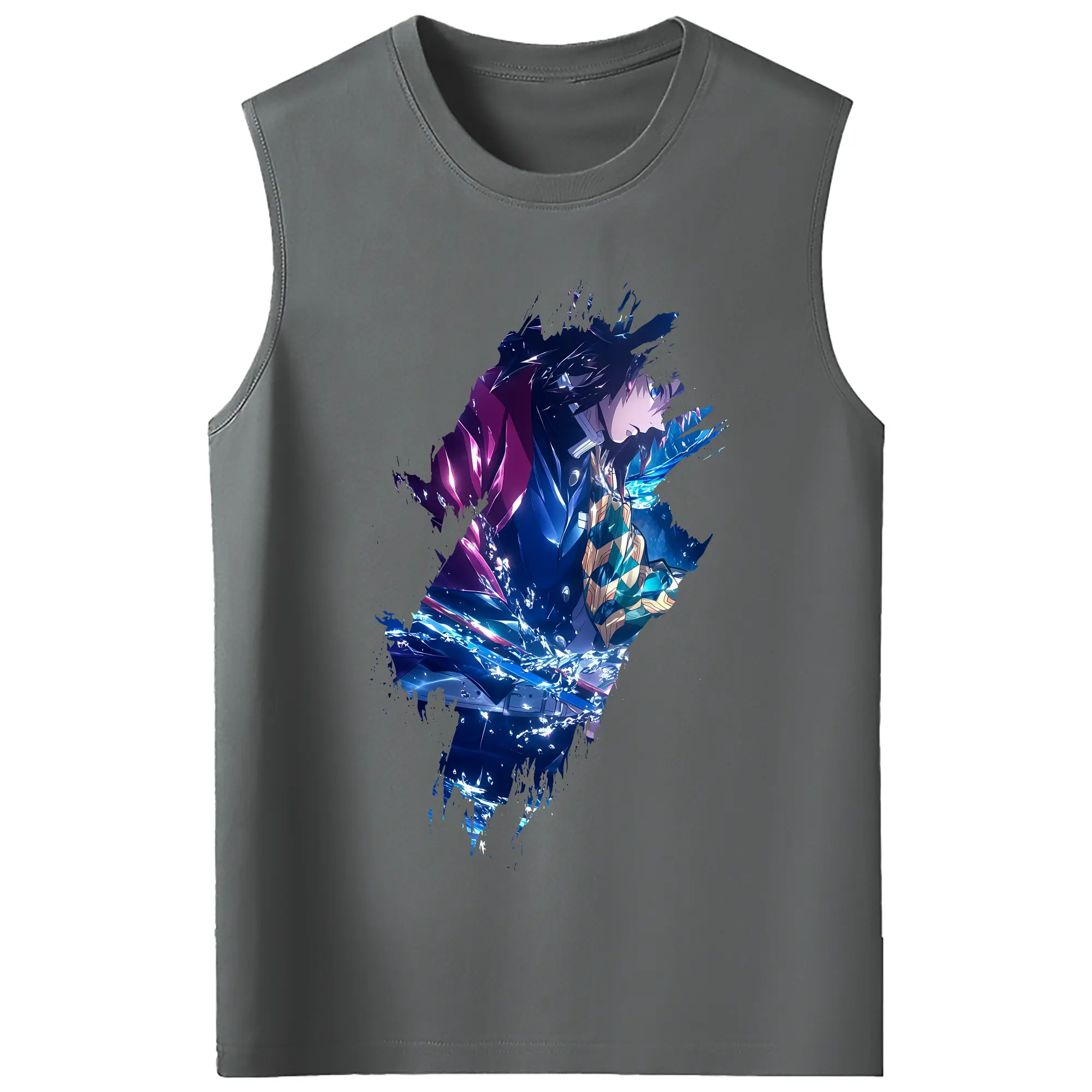 鬼滅の刃 グッズ,冨岡 義勇 - コットン100% タンクトップ ・ フロントプリント ・ タイトフィット ・ 快適 通気性 ・ スポーツ カジュアル 散歩用