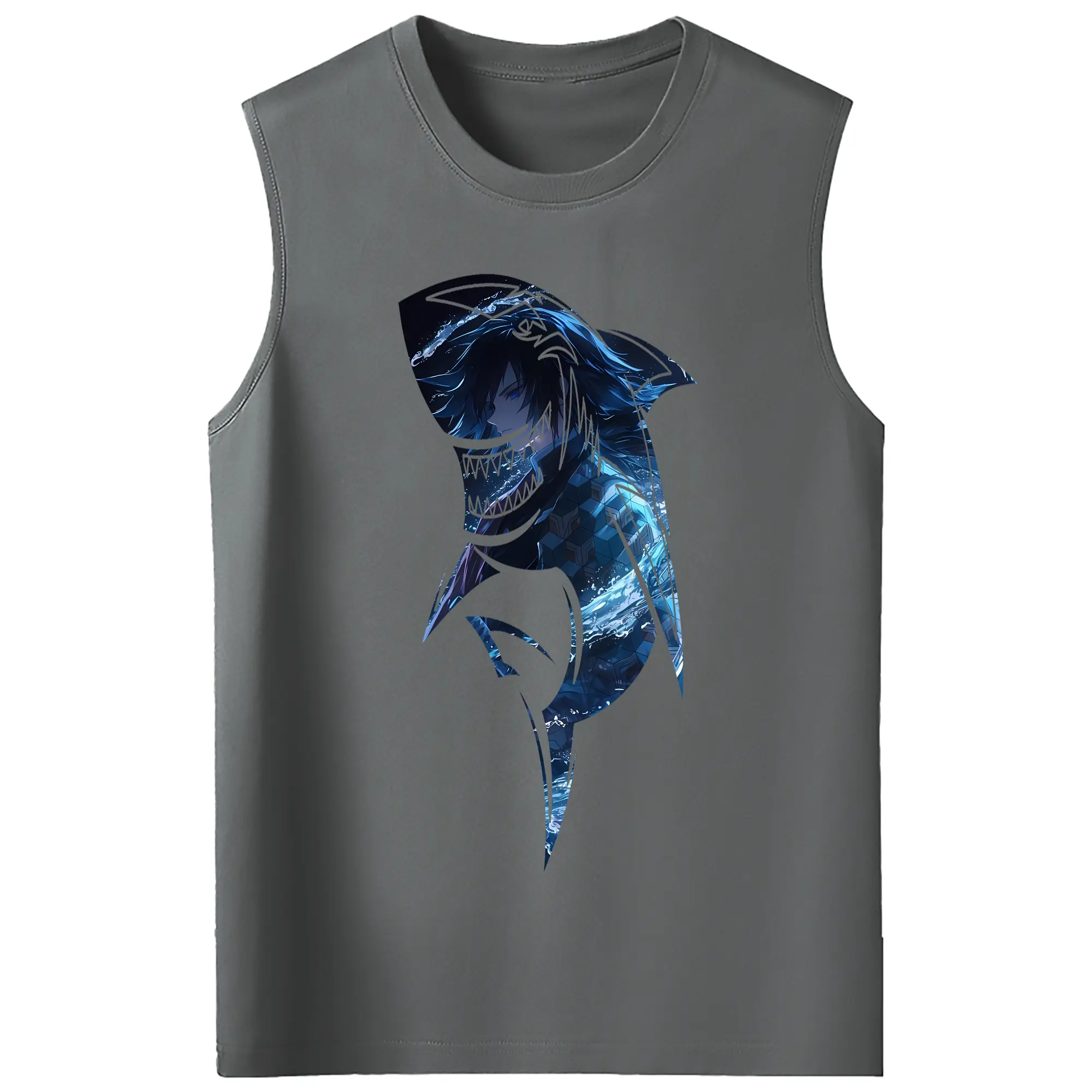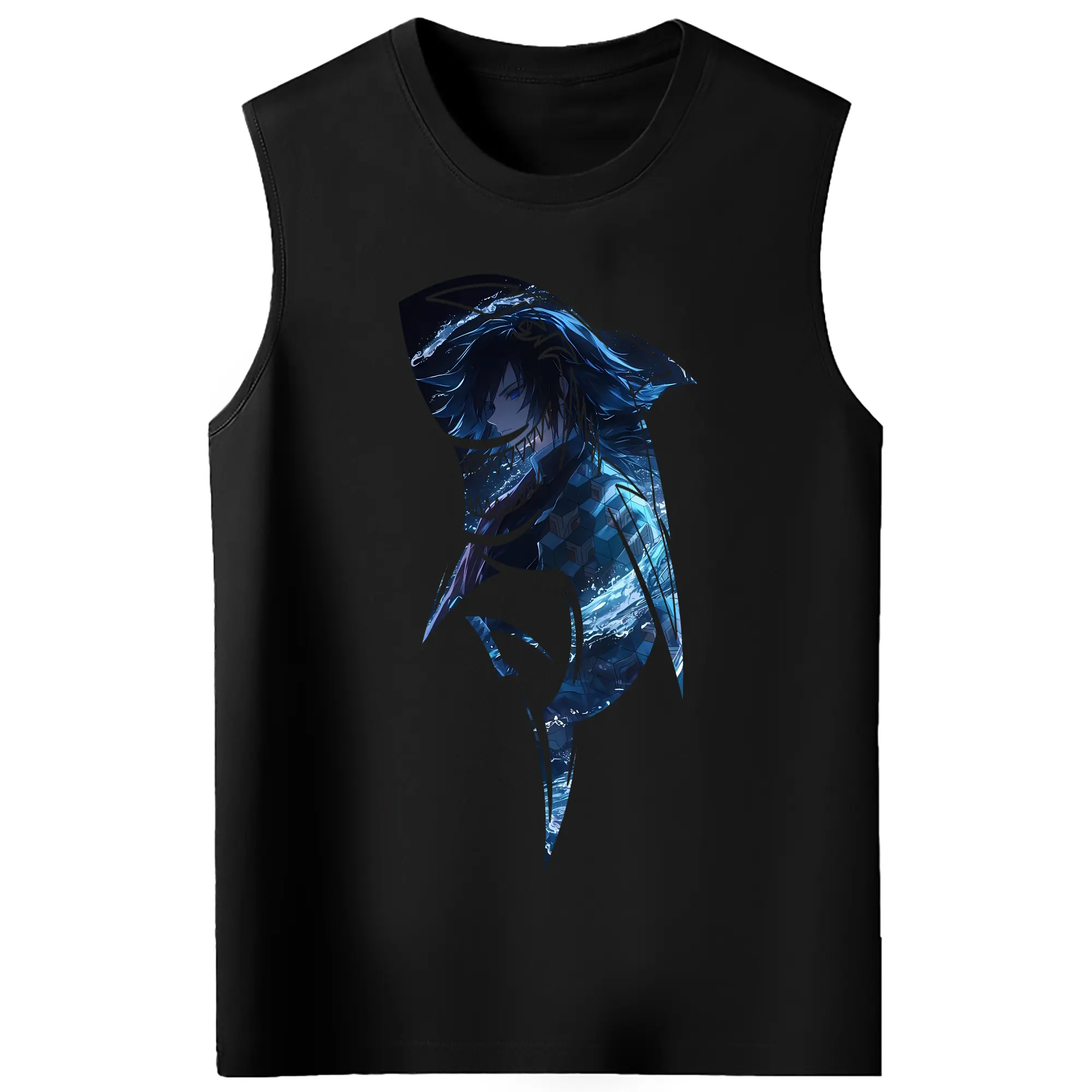 鬼滅の刃 グッズ,冨岡 義勇 - コットン100% タンクトップ ・ フロントプリント ・ タイトフィット ・ 快適 通気性 ・ スポーツ カジュアル 散歩用