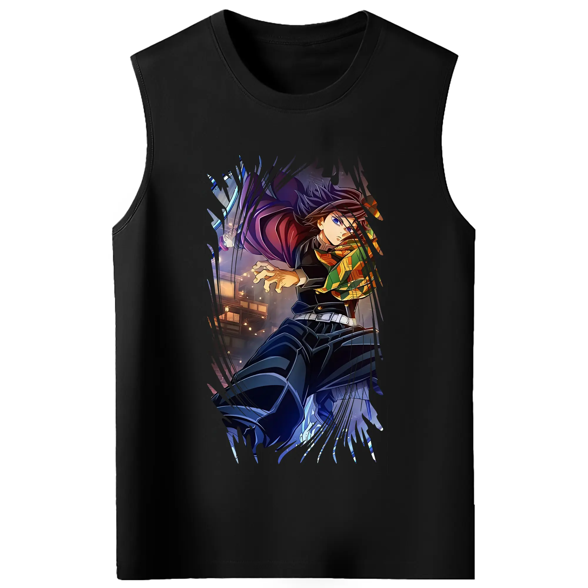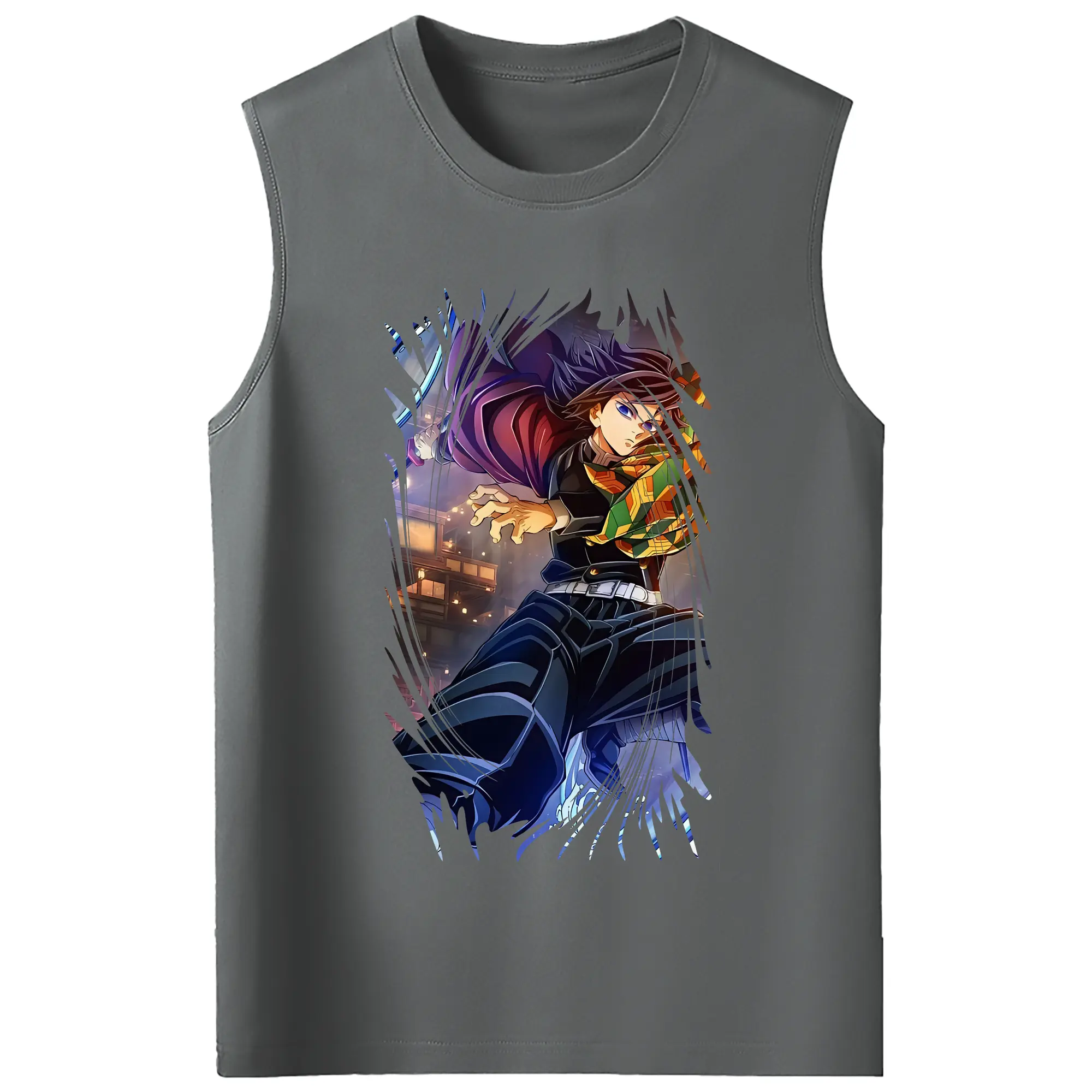 鬼滅の刃 グッズ,冨岡 義勇 - コットン100% タンクトップ ・ フロントプリント ・ タイトフィット ・ 快適 通気性 ・ スポーツ カジュアル 散歩用