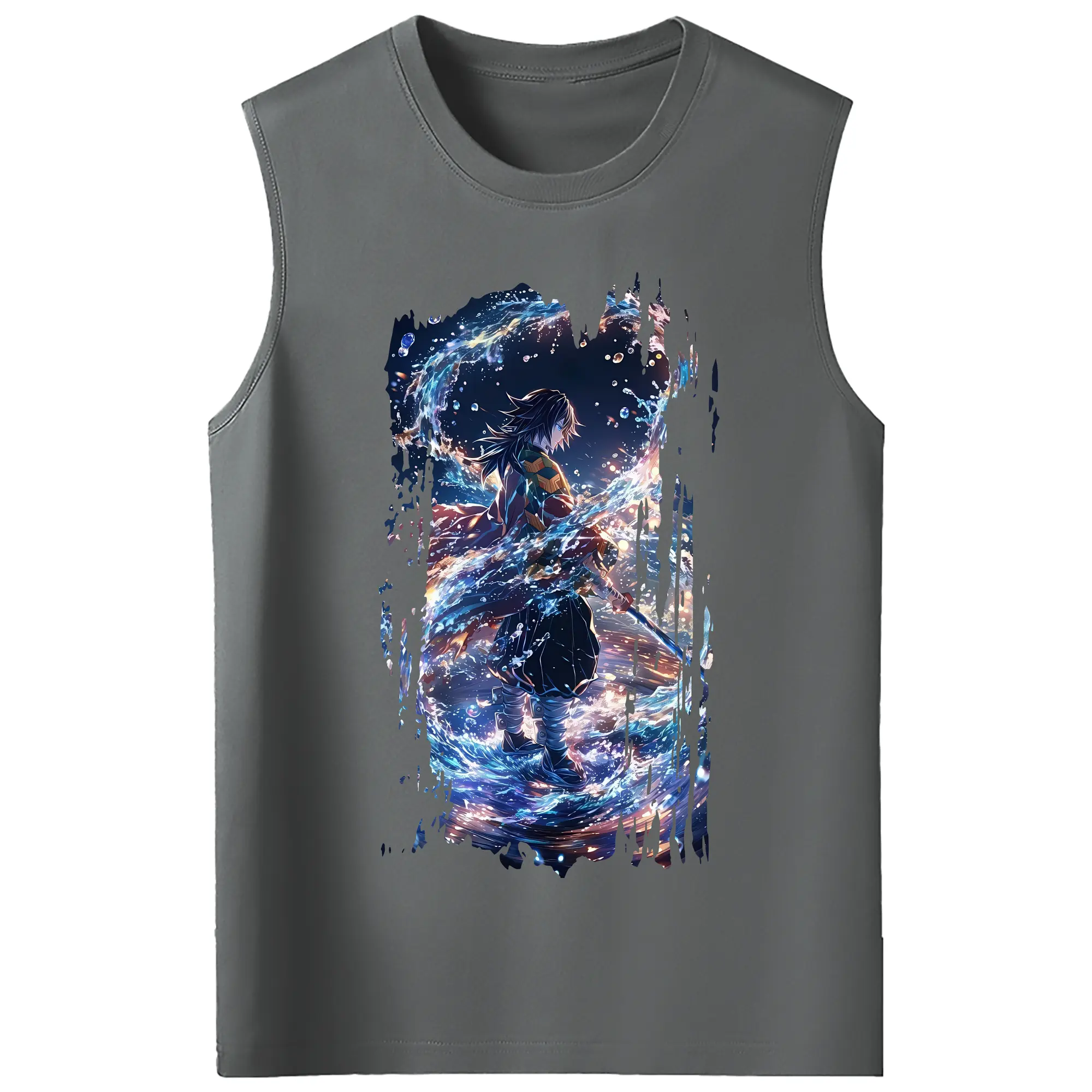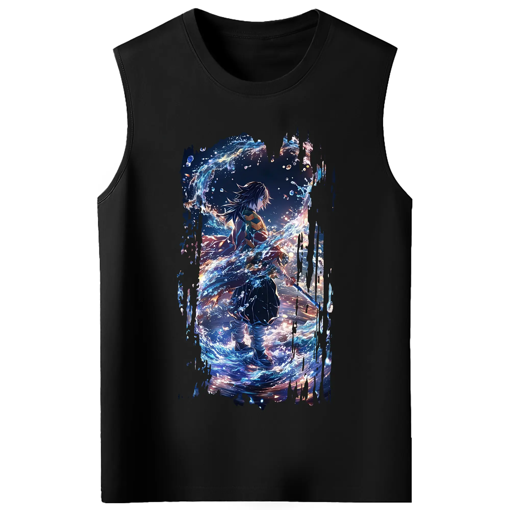 鬼滅の刃 グッズ,冨岡 義勇 - コットン100% タンクトップ ・ フロントプリント ・ タイトフィット ・ 快適 通気性 ・ スポーツ カジュアル 散歩用