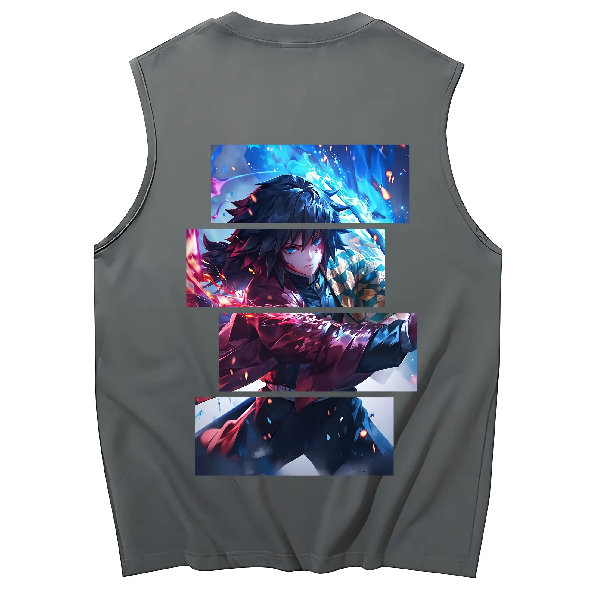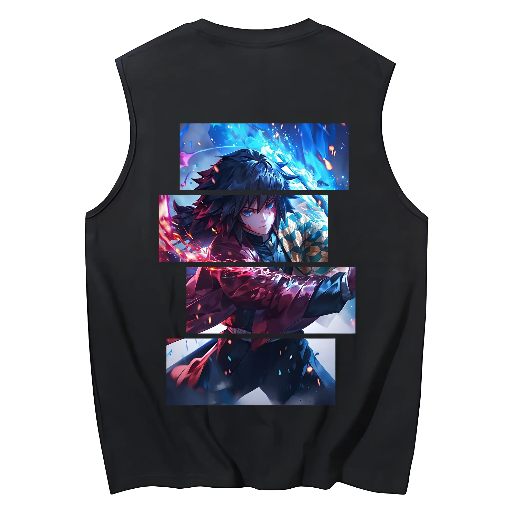 鬼滅の刃 グッズ,冨岡 義勇 - コットン100% タンクトップ ・ 背面プリント ・ タイトシルエット ・ 快適 通気性 ・ スポーツ カジュアル 散歩用