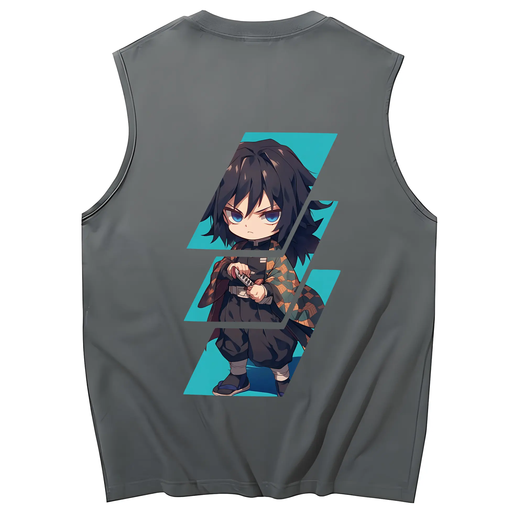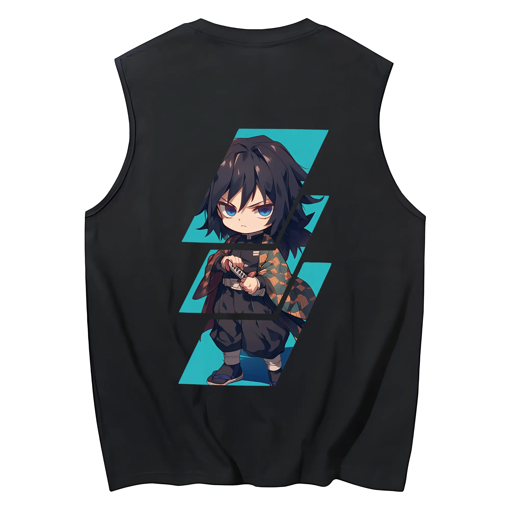 鬼滅の刃 グッズ,冨岡 義勇 - コットン100% タンクトップ ・ 背面プリント ・ タイトシルエット ・ 快適 通気性 ・ スポーツ カジュアル 散歩用