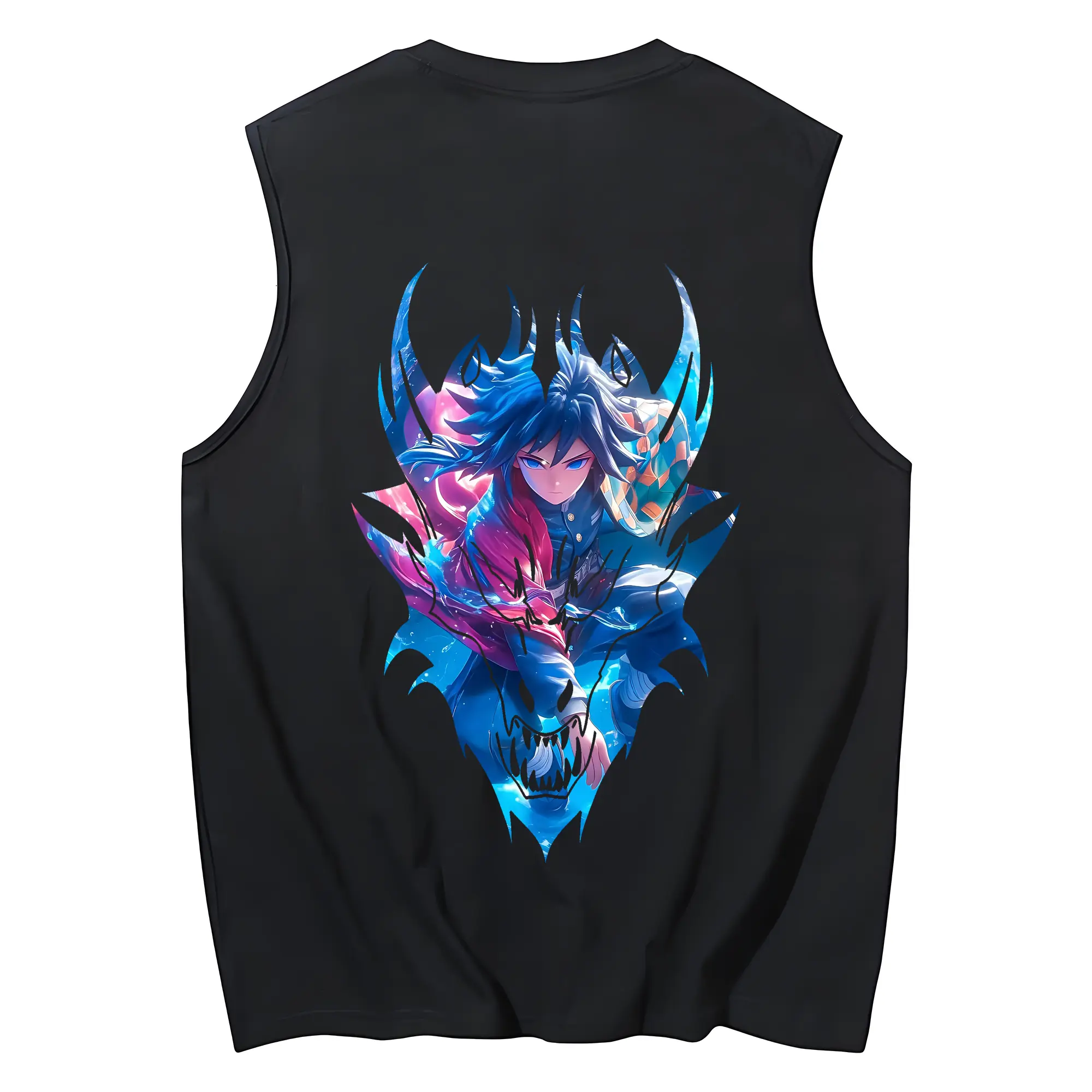 鬼滅の刃 グッズ,冨岡 義勇 - コットン100% タンクトップ ・ 背面プリント ・ タイトシルエット ・ 快適 通気性 ・ スポーツ カジュアル 散歩用