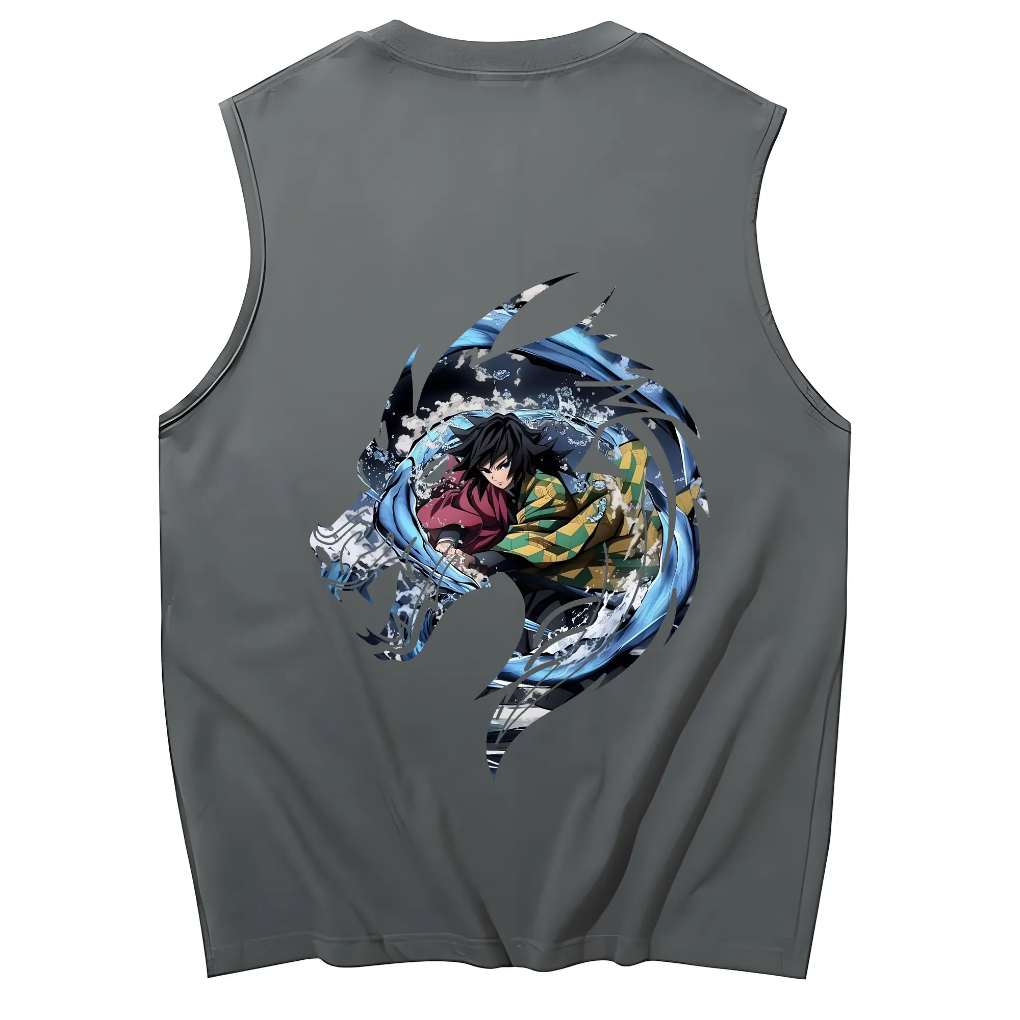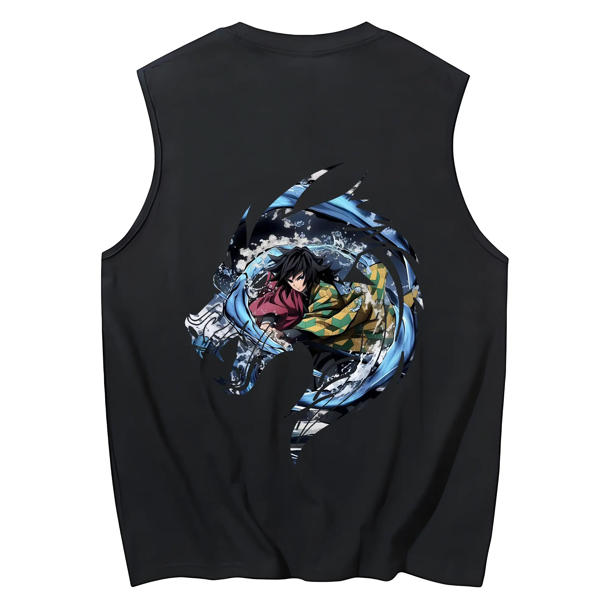 鬼滅の刃 グッズ,冨岡 義勇 - コットン100% タンクトップ ・ 背面プリント ・ タイトシルエット ・ 快適 通気性 ・ スポーツ カジュアル 散歩用