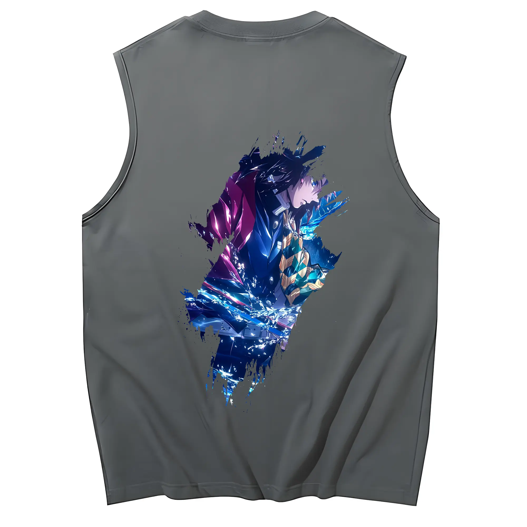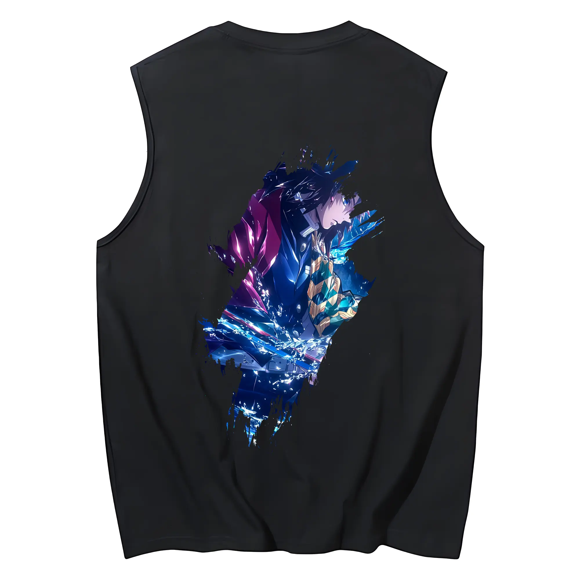 鬼滅の刃 グッズ,冨岡 義勇 - コットン100% タンクトップ ・ 背面プリント ・ タイトシルエット ・ 快適 通気性 ・ スポーツ カジュアル 散歩用