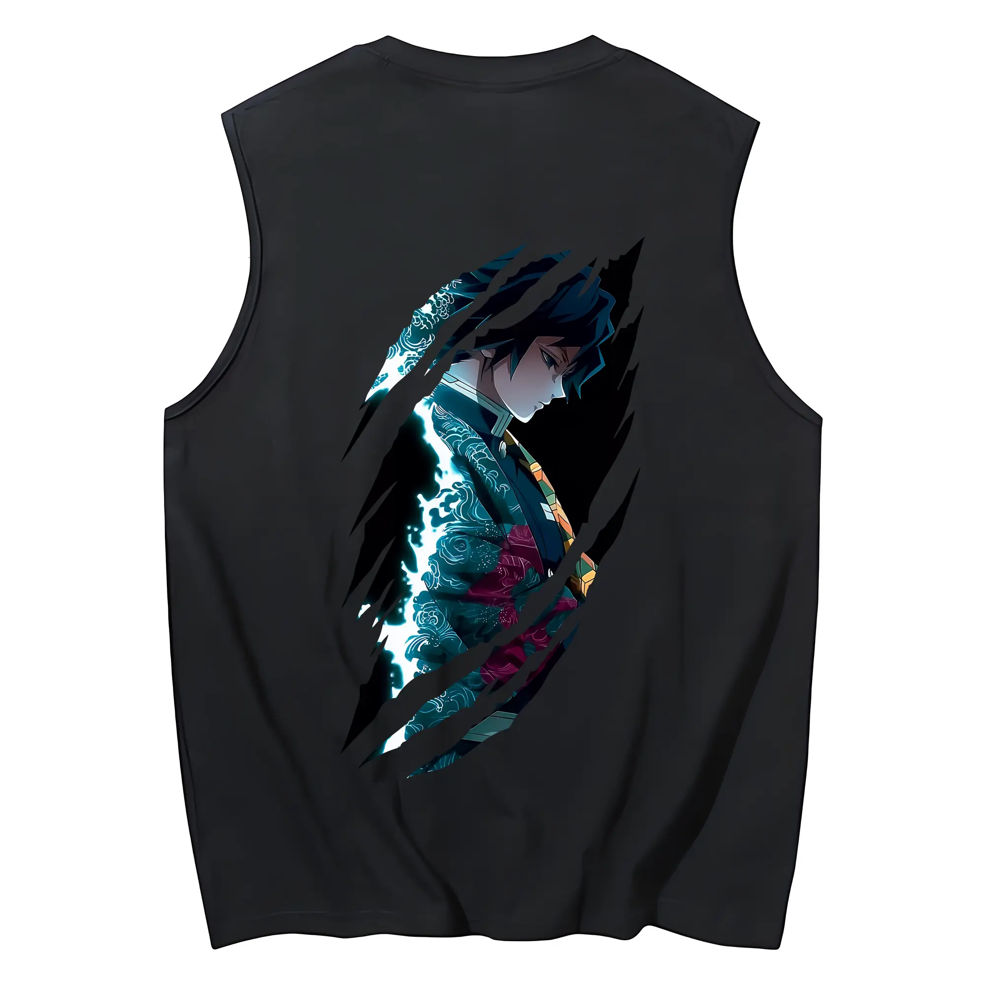 鬼滅の刃 グッズ,冨岡 義勇 - コットン100% タンクトップ ・ 背面プリント ・ タイトシルエット ・ 快適 通気性 ・ スポーツ カジュアル 散歩用