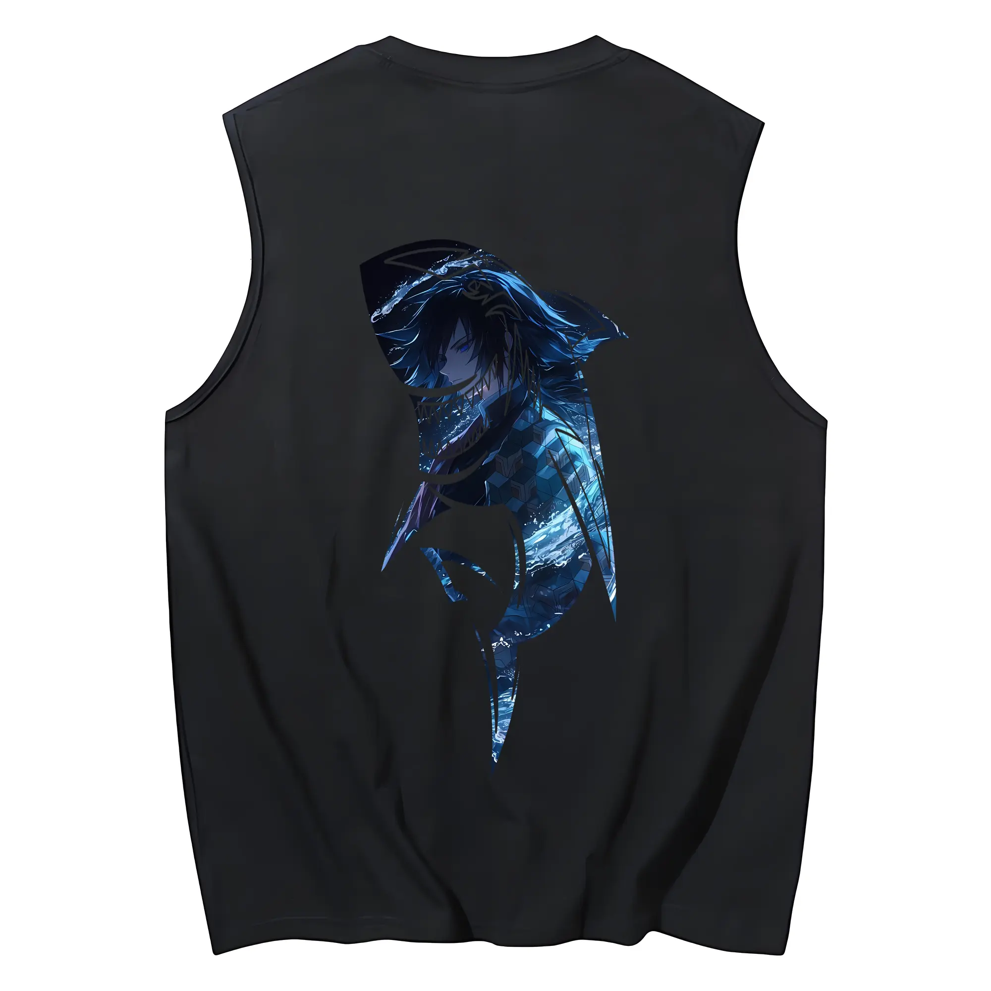 鬼滅の刃 グッズ,冨岡 義勇 - コットン100% タンクトップ ・ 背面プリント ・ タイトシルエット ・ 快適 通気性 ・ スポーツ カジュアル 散歩用
