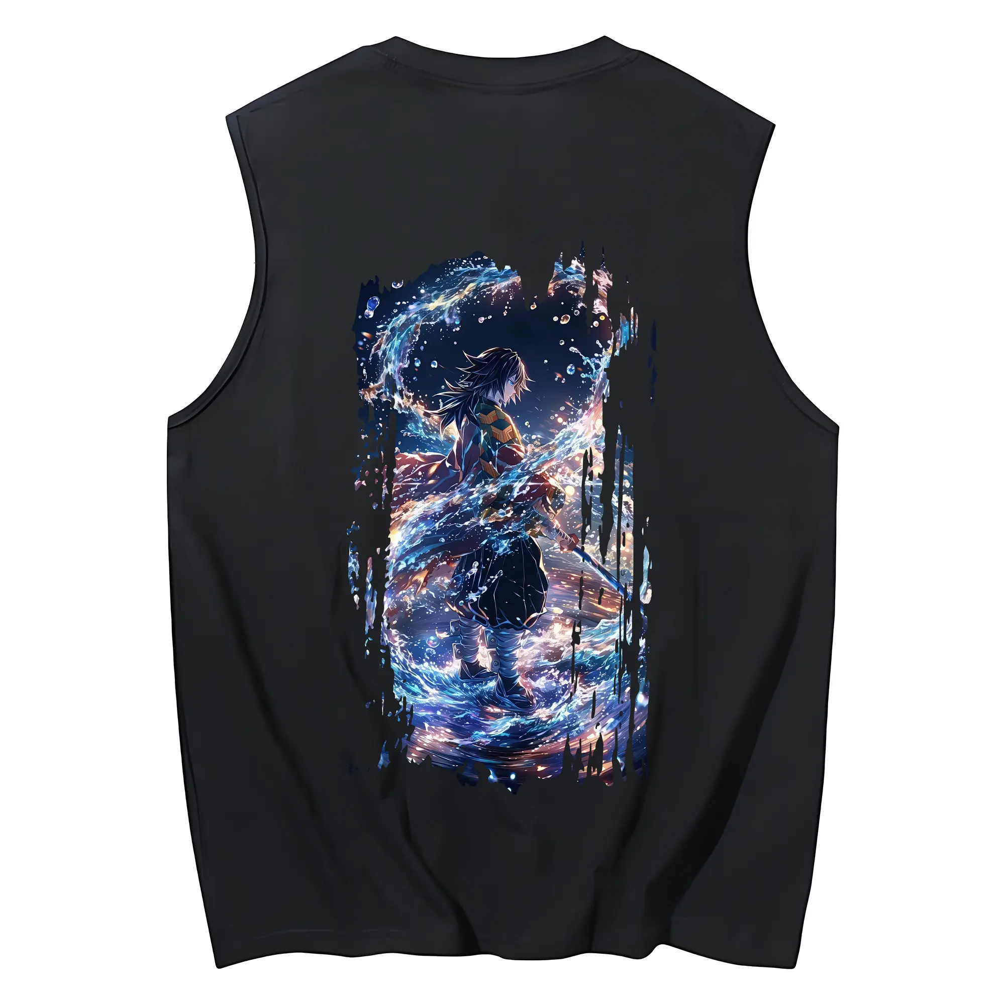 鬼滅の刃 グッズ,冨岡 義勇 - 綿100% 半袖Tシャツ ・ バックプリント ・ 快適 通気性 ・ 日常使い 散歩 スポーツ用
