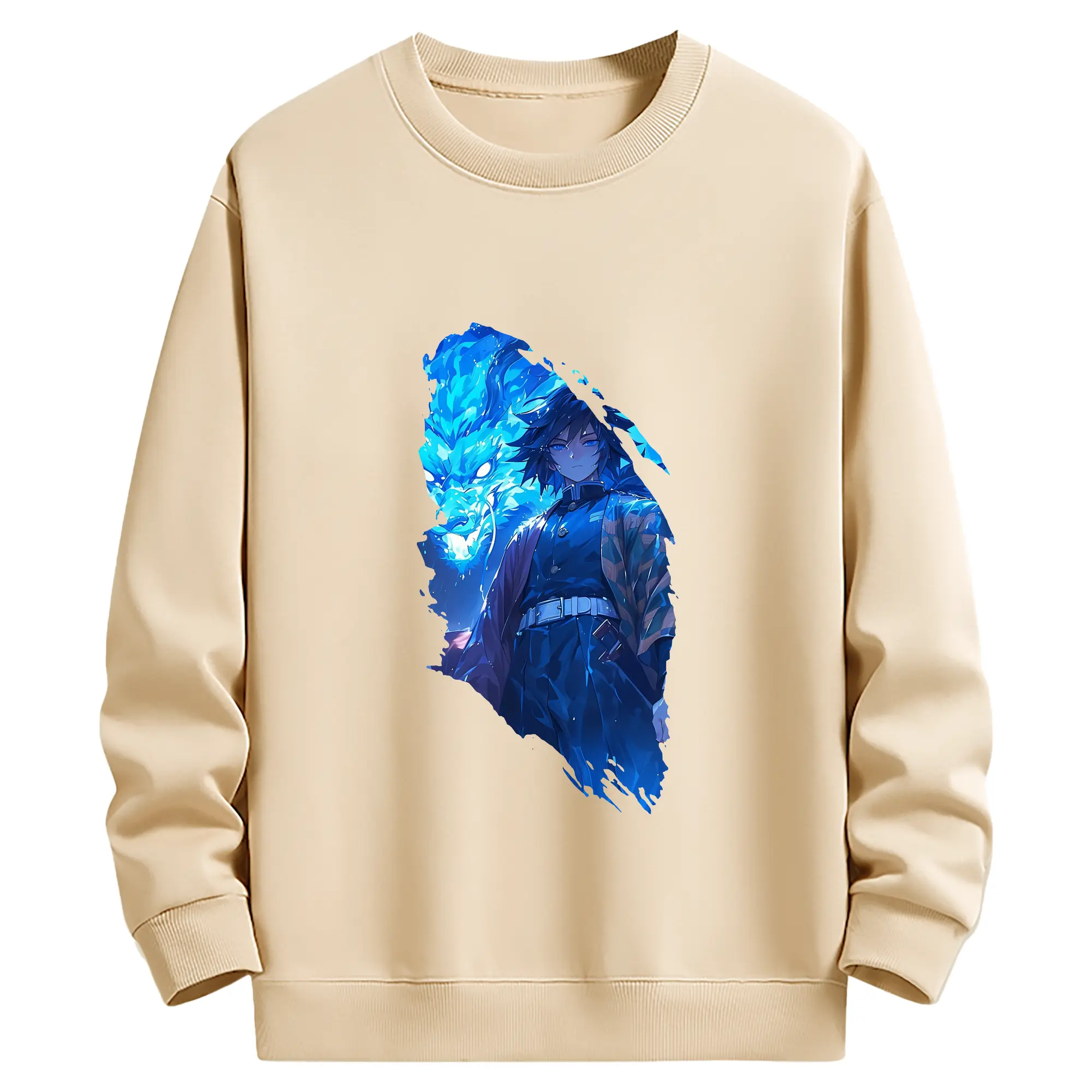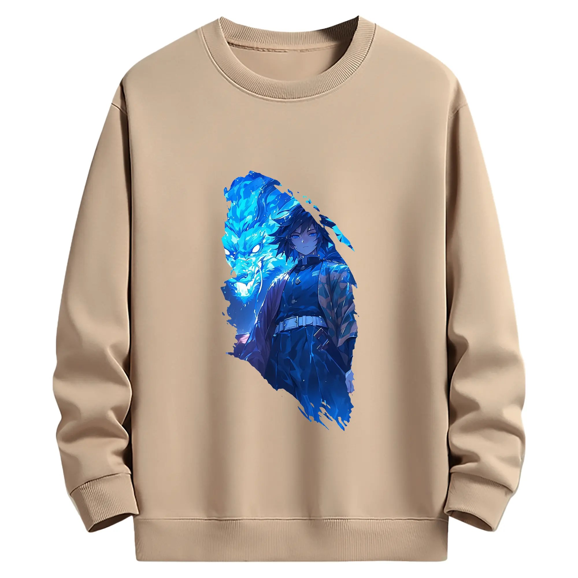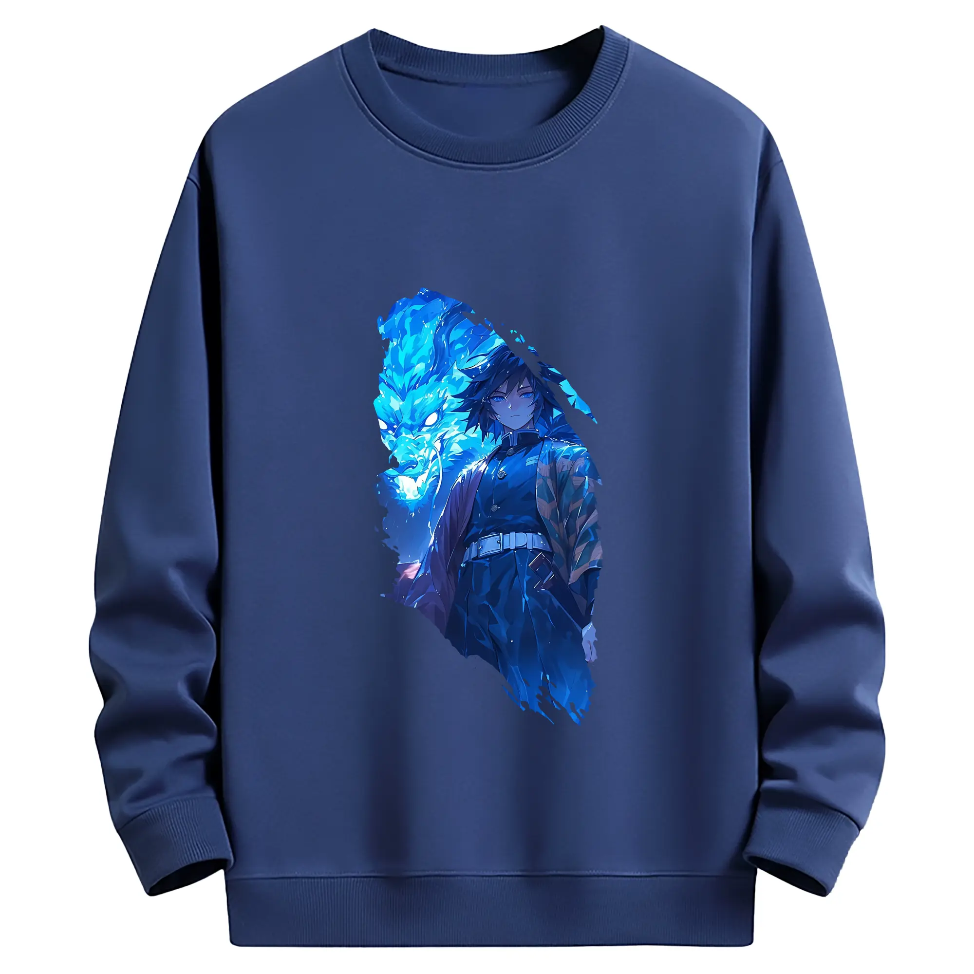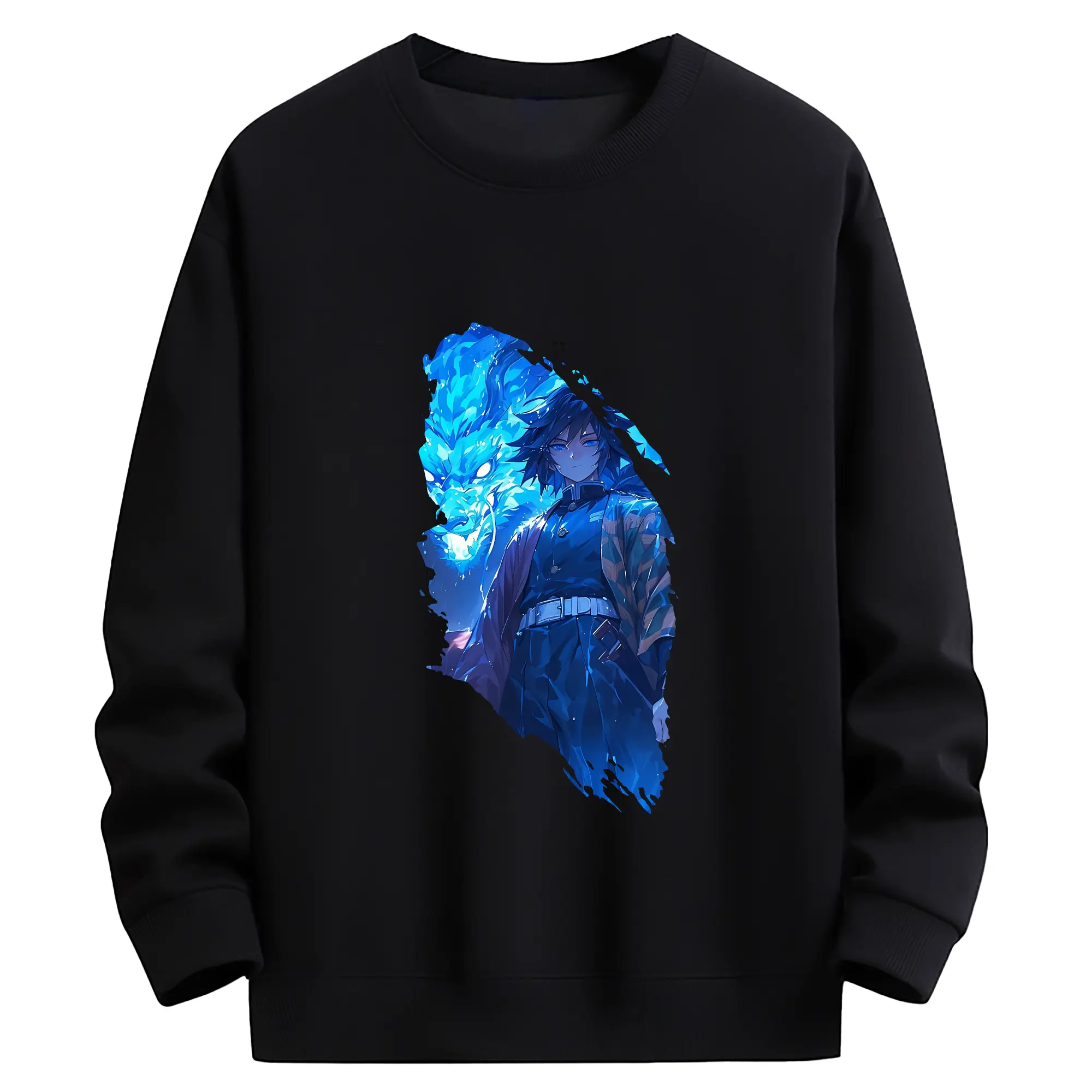 鬼滅の刃 グッズ,冨岡 義勇 - 薄手 クルーネック スウェット 裏毛260g · ポリエステル 春秋向け カジュアル 男女兼用 · トレーナー デイリー スポーツ 散歩に最適