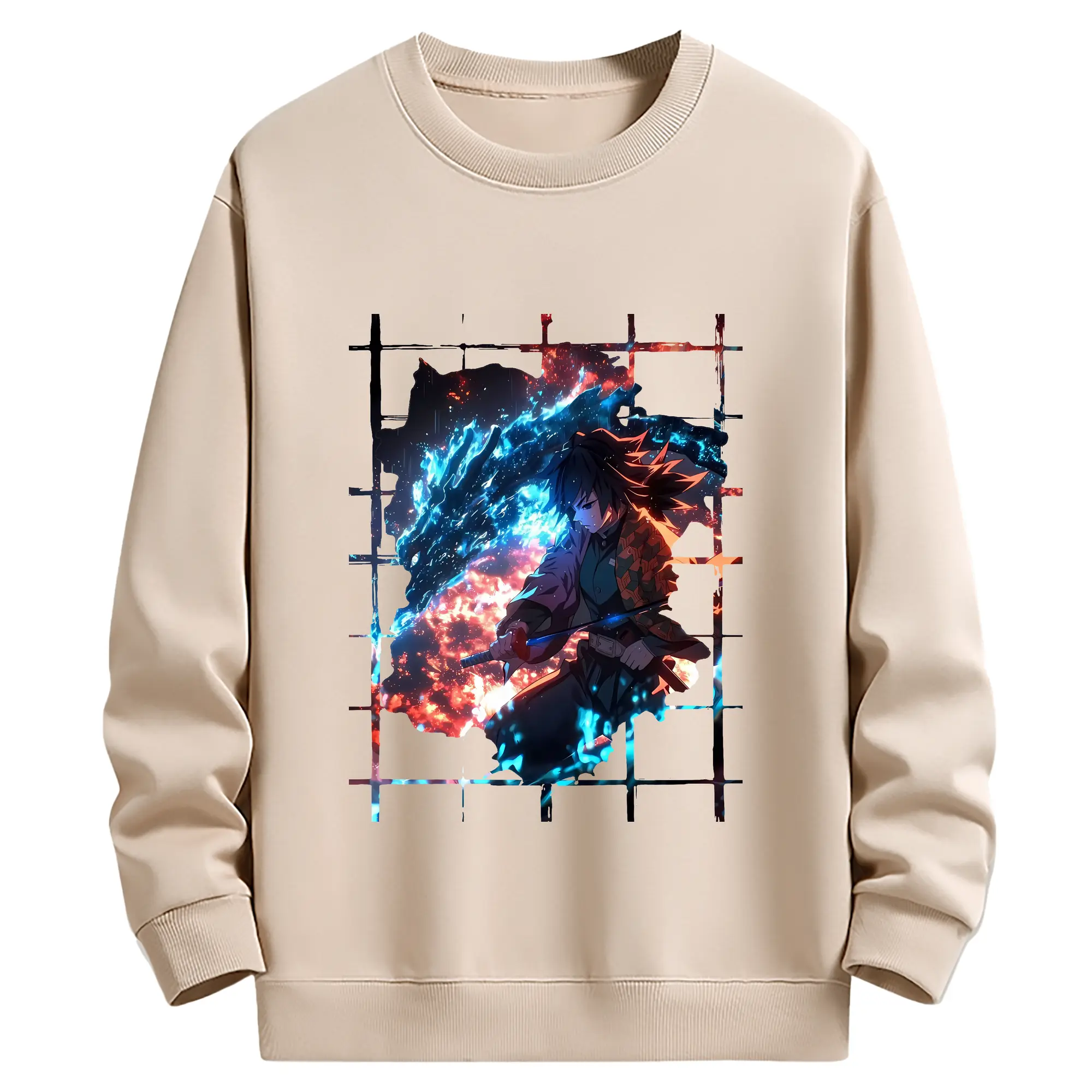 鬼滅の刃 グッズ,冨岡 義勇 - 薄手 クルーネック スウェット 裏毛260g · ポリエステル 春秋向け カジュアル 男女兼用 · トレーナー デイリー スポーツ 散歩に最適