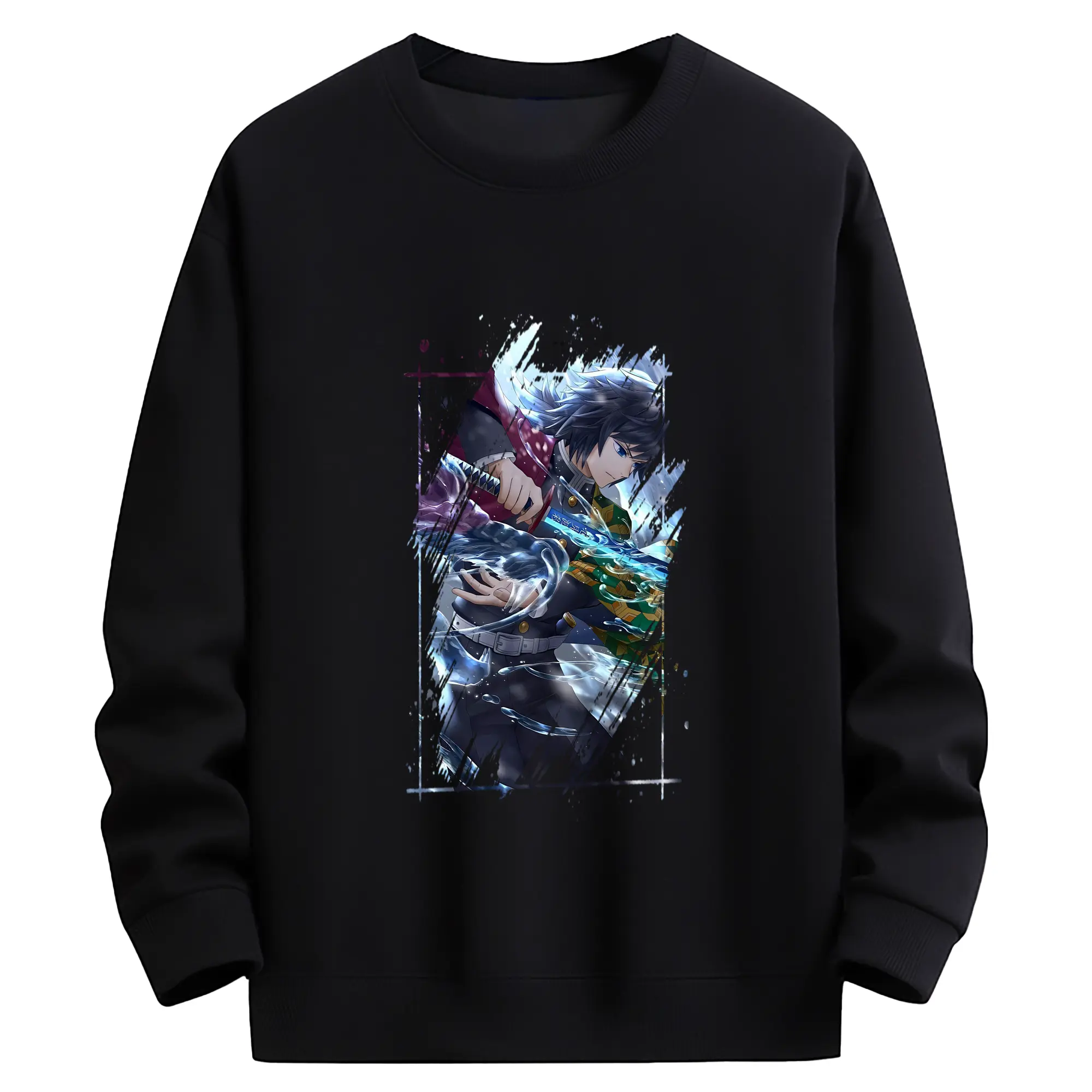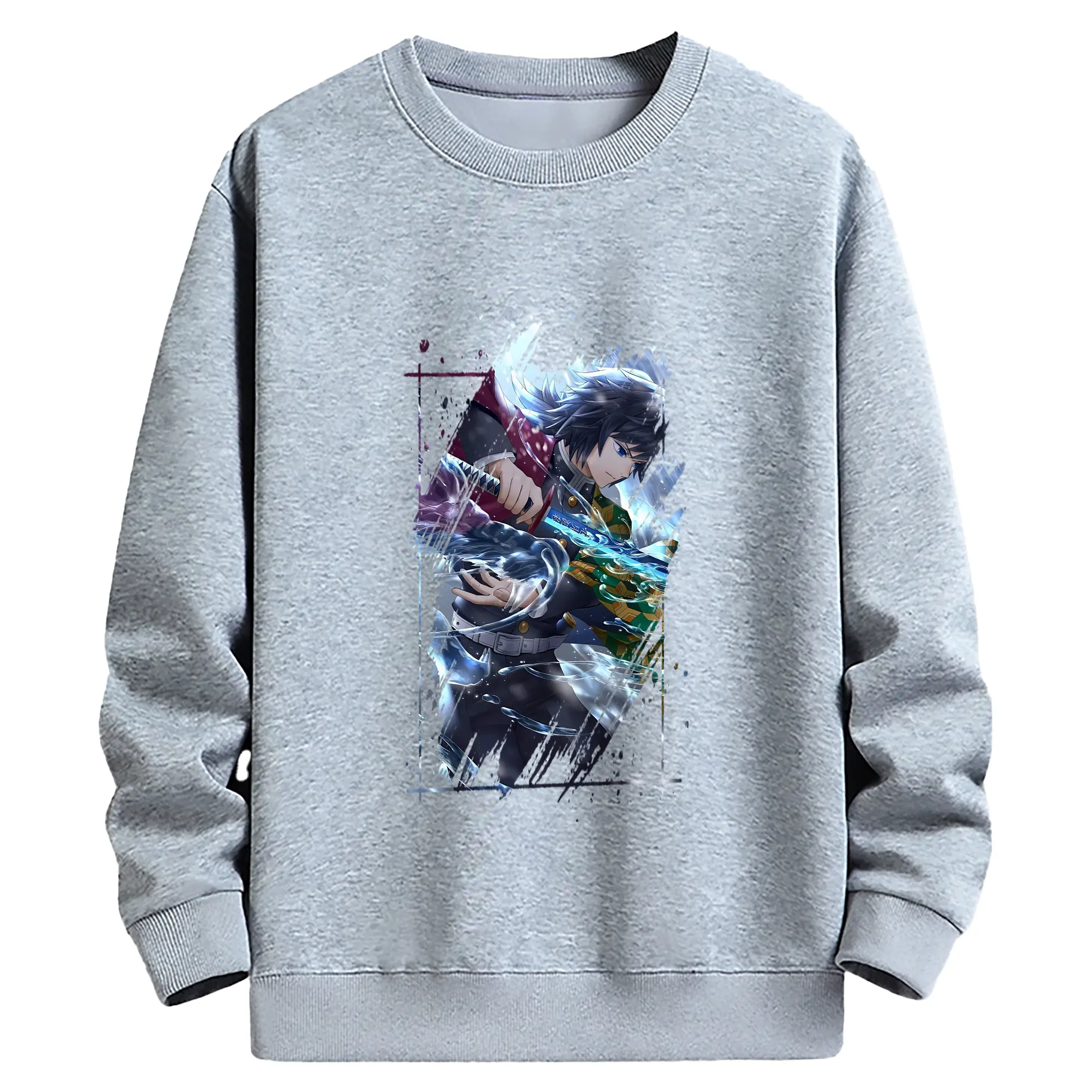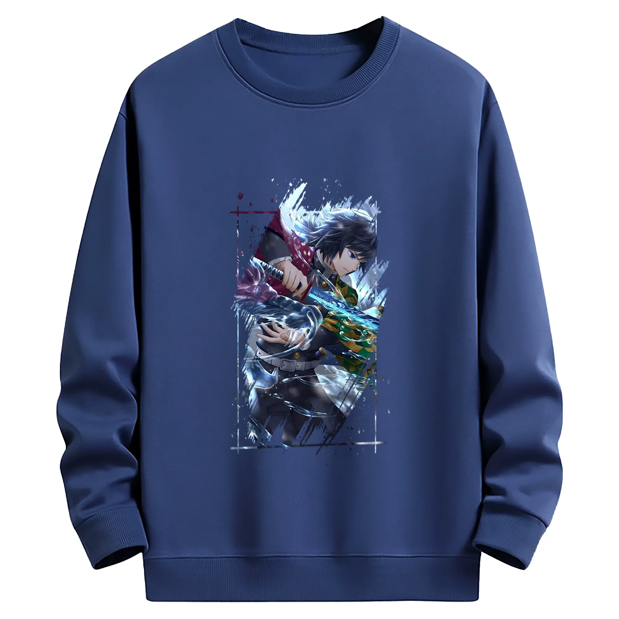 鬼滅の刃 グッズ,冨岡 義勇 - 薄手 クルーネック スウェット 裏毛260g · ポリエステル 春秋向け カジュアル 男女兼用 · トレーナー デイリー スポーツ 散歩に最適
