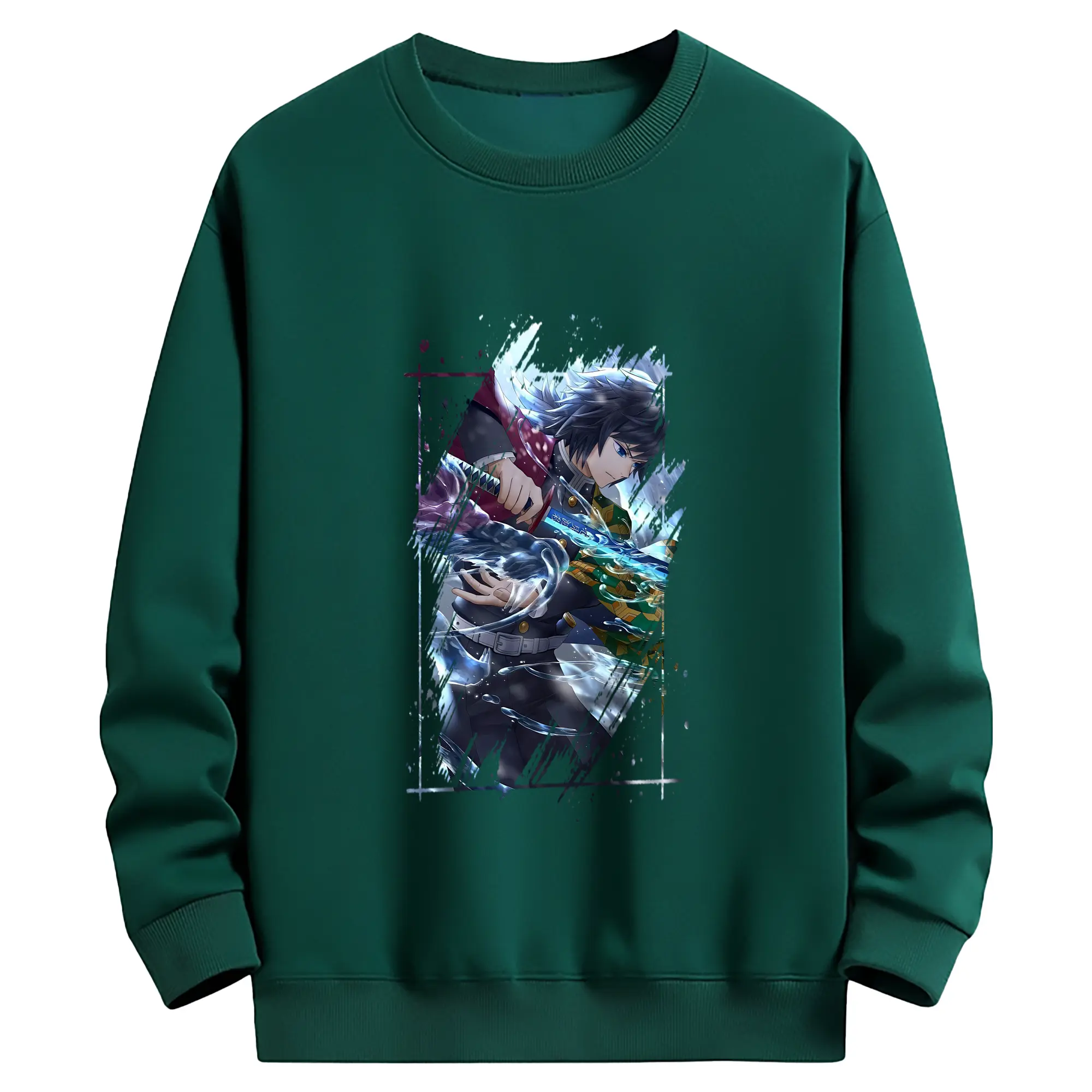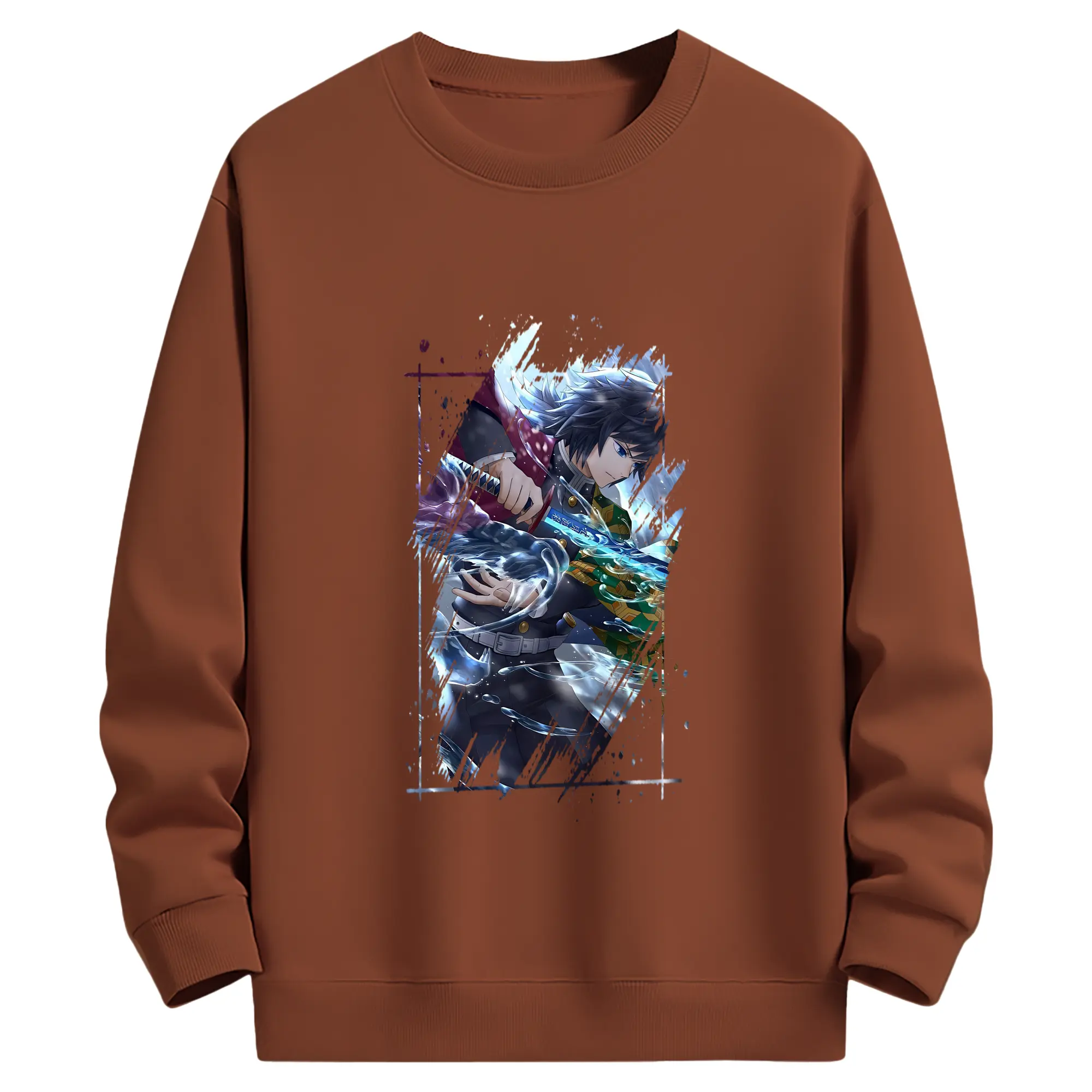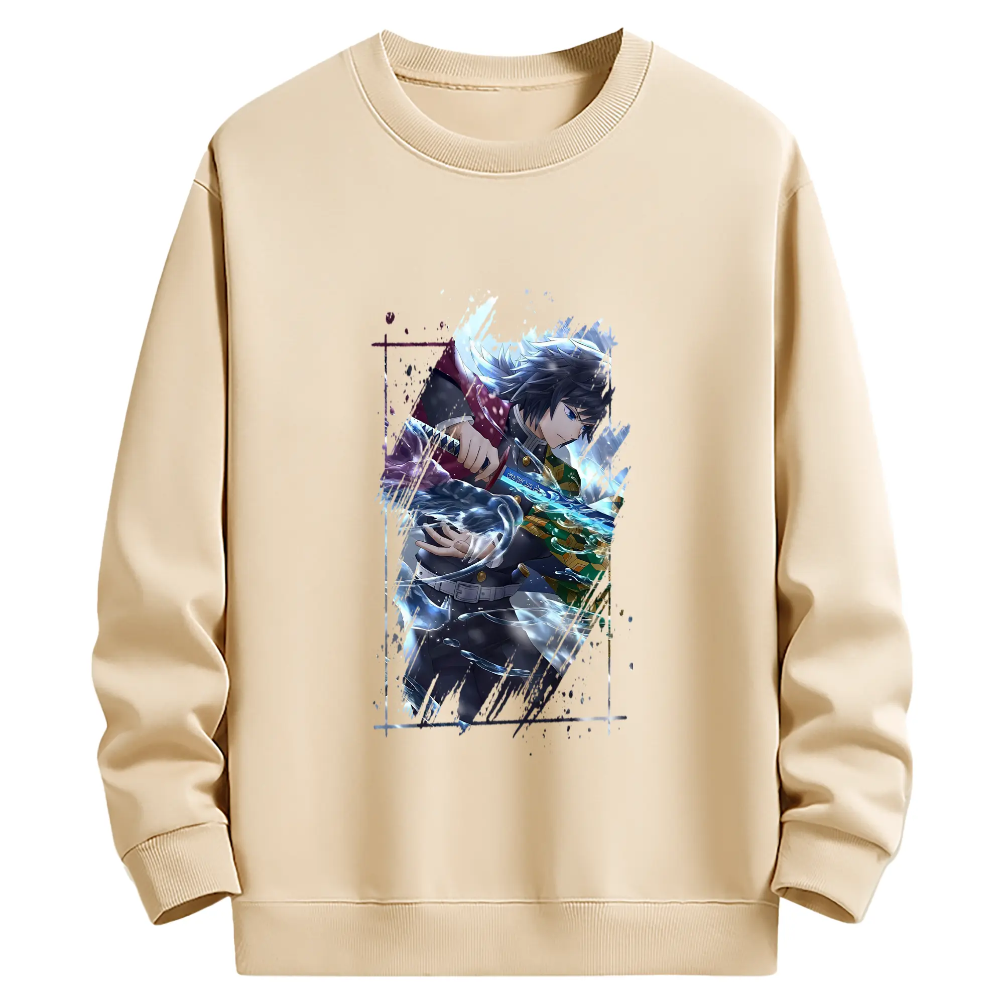 鬼滅の刃 グッズ,冨岡 義勇 - 薄手 クルーネック スウェット 裏毛260g · ポリエステル 春秋向け カジュアル 男女兼用 · トレーナー デイリー スポーツ 散歩に最適