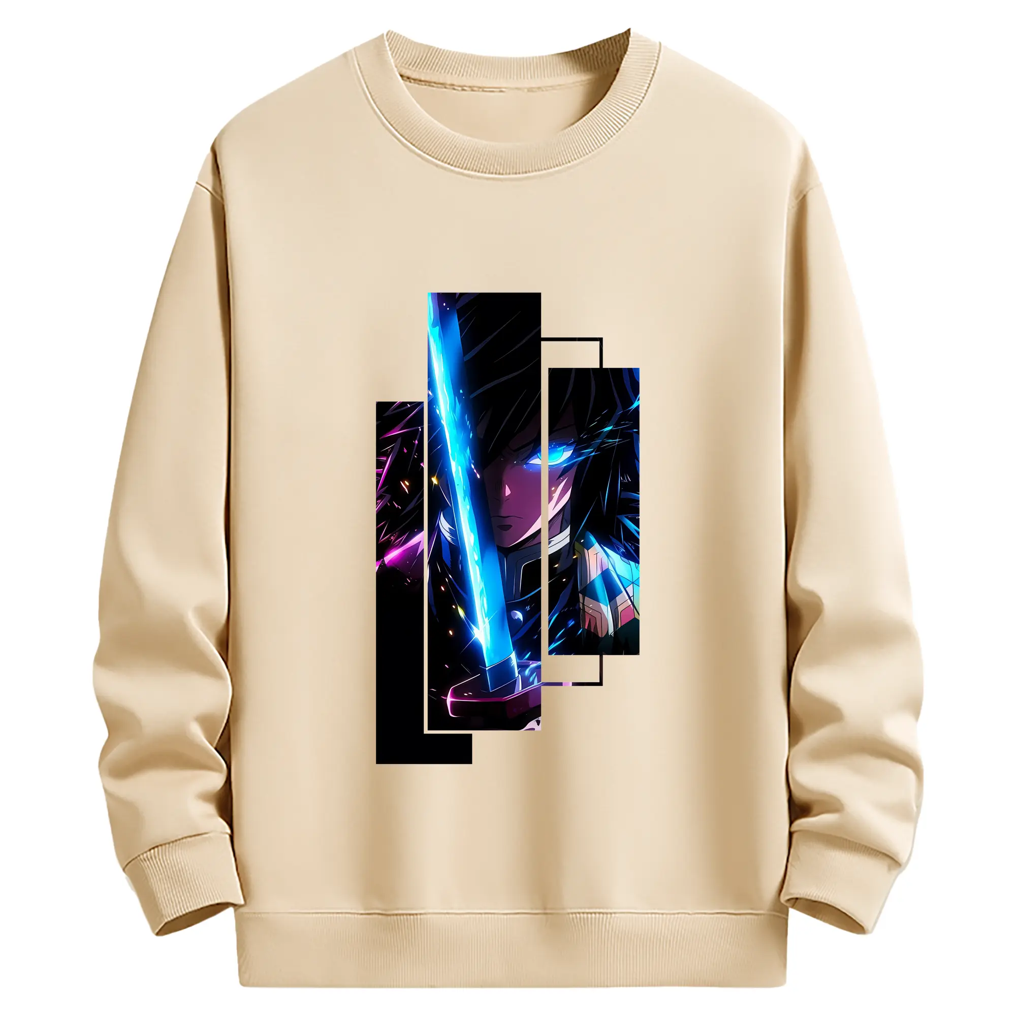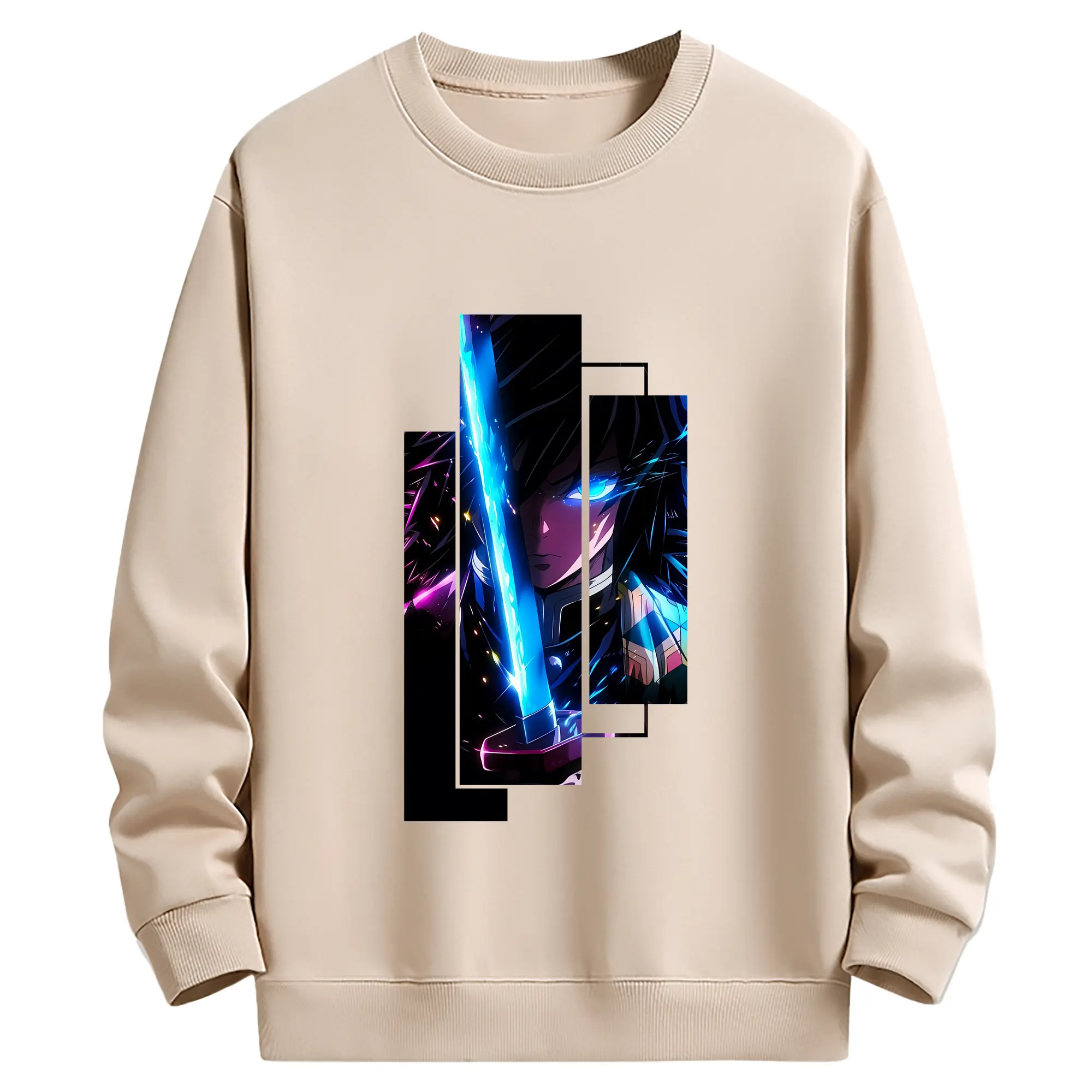 鬼滅の刃 グッズ,冨岡 義勇 - 薄手 クルーネック スウェット 裏毛260g · ポリエステル 春秋向け カジュアル 男女兼用 · トレーナー デイリー スポーツ 散歩に最適