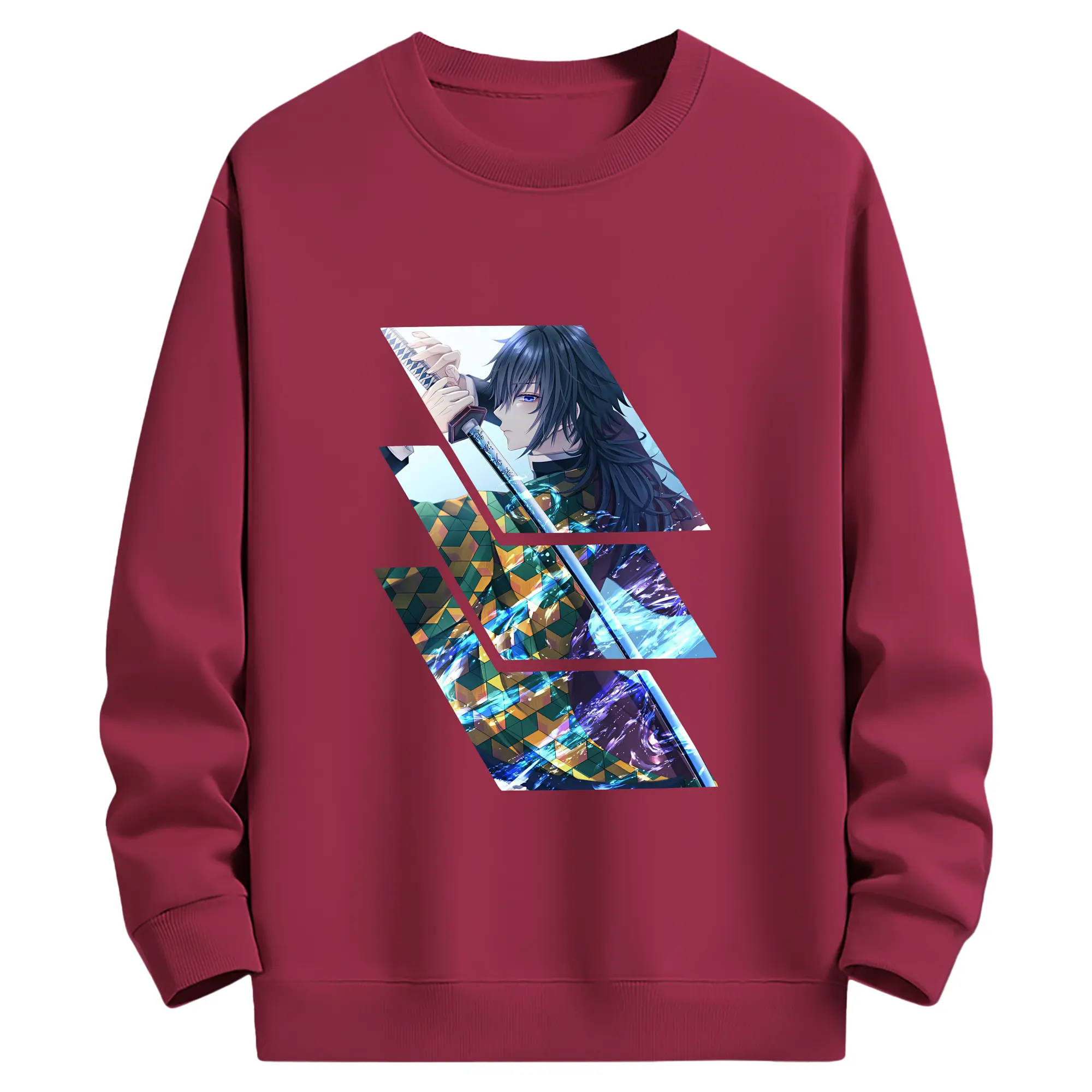 鬼滅の刃 グッズ,冨岡 義勇 - 薄手 クルーネック スウェット 裏毛260g · ポリエステル 春秋向け カジュアル 男女兼用 · トレーナー デイリー スポーツ 散歩に最適