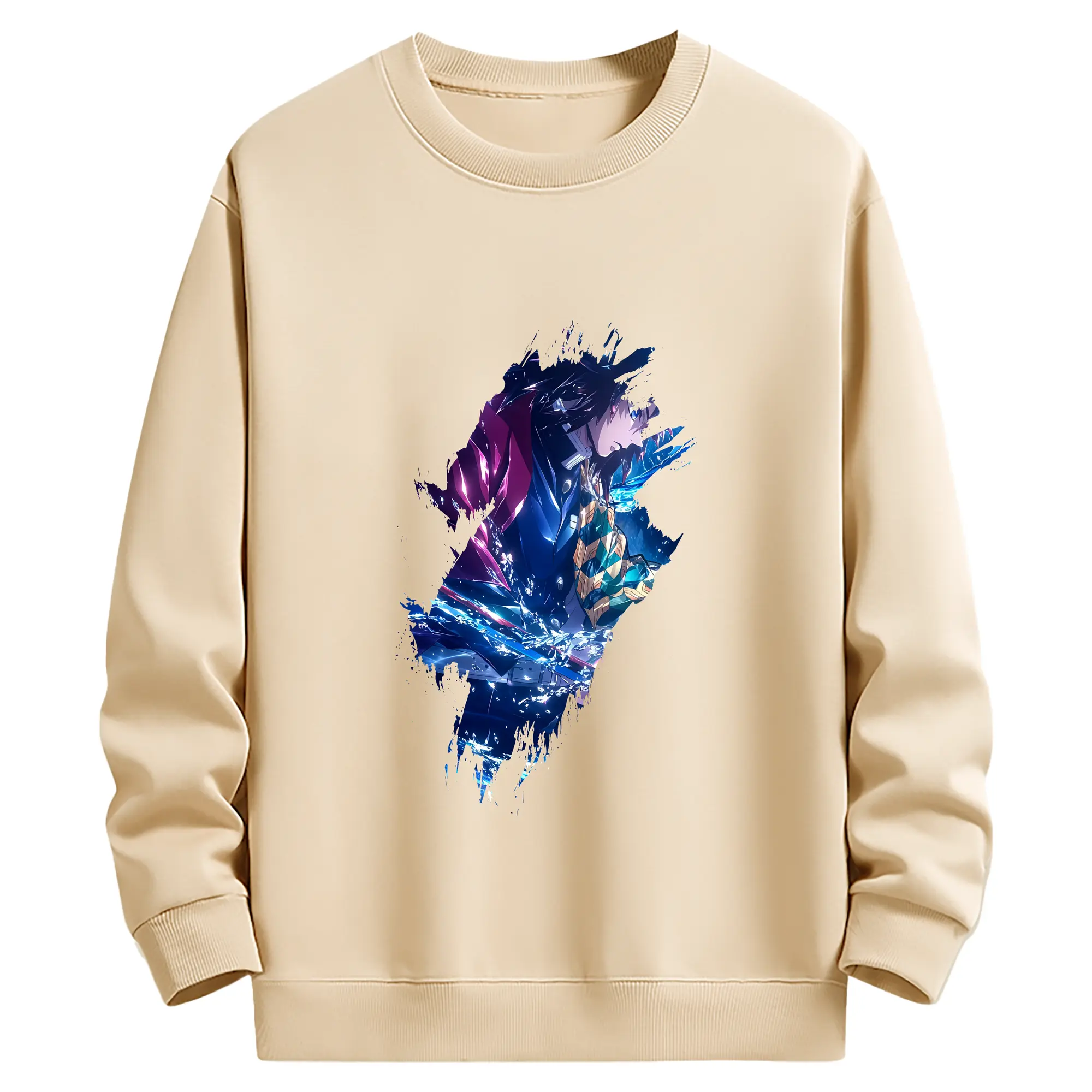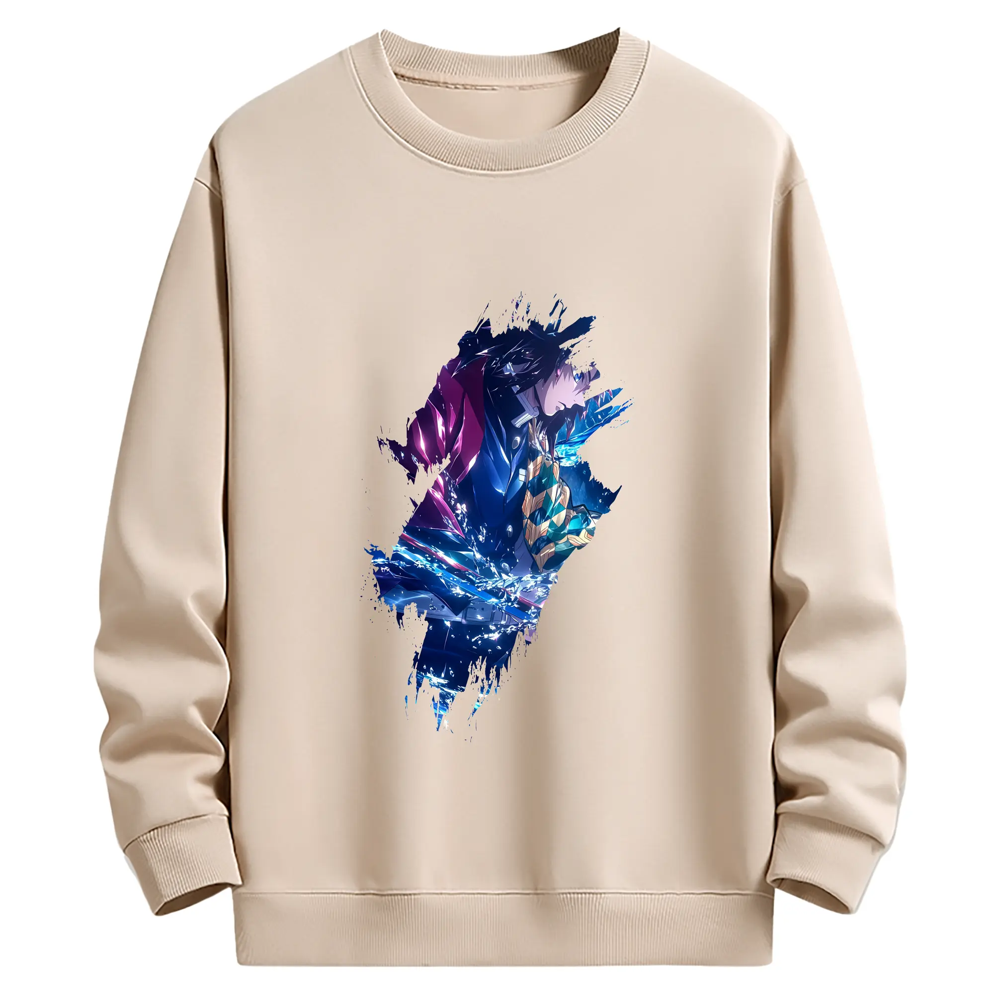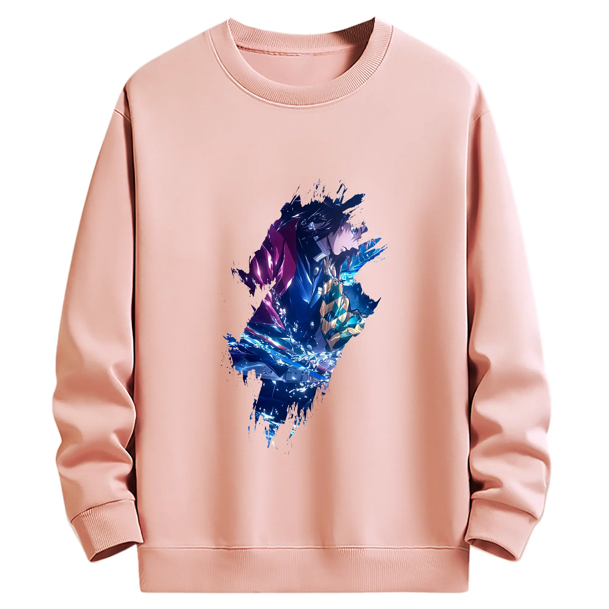 鬼滅の刃 グッズ,冨岡 義勇 - 薄手 クルーネック スウェット 裏毛260g · ポリエステル 春秋向け カジュアル 男女兼用 · トレーナー デイリー スポーツ 散歩に最適