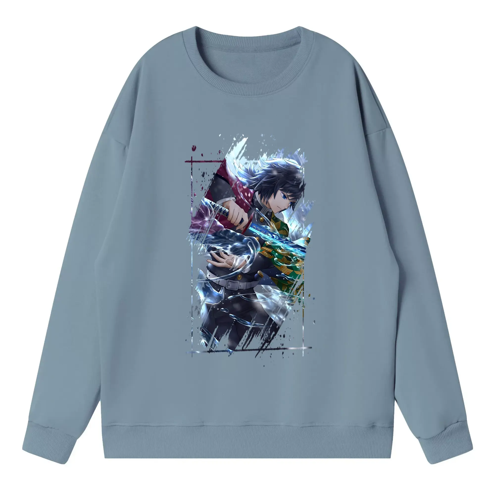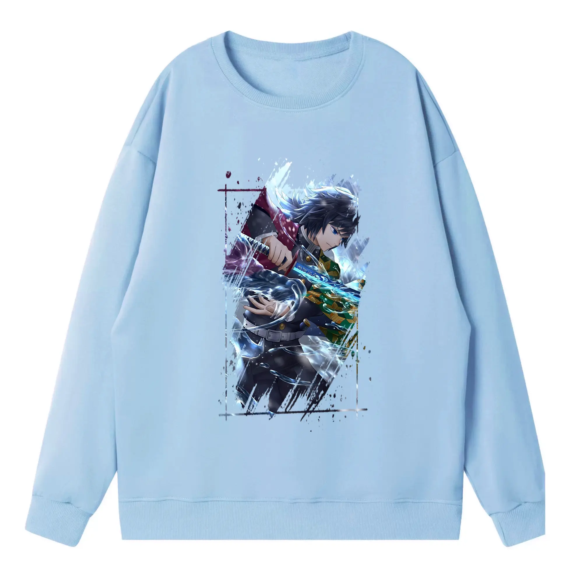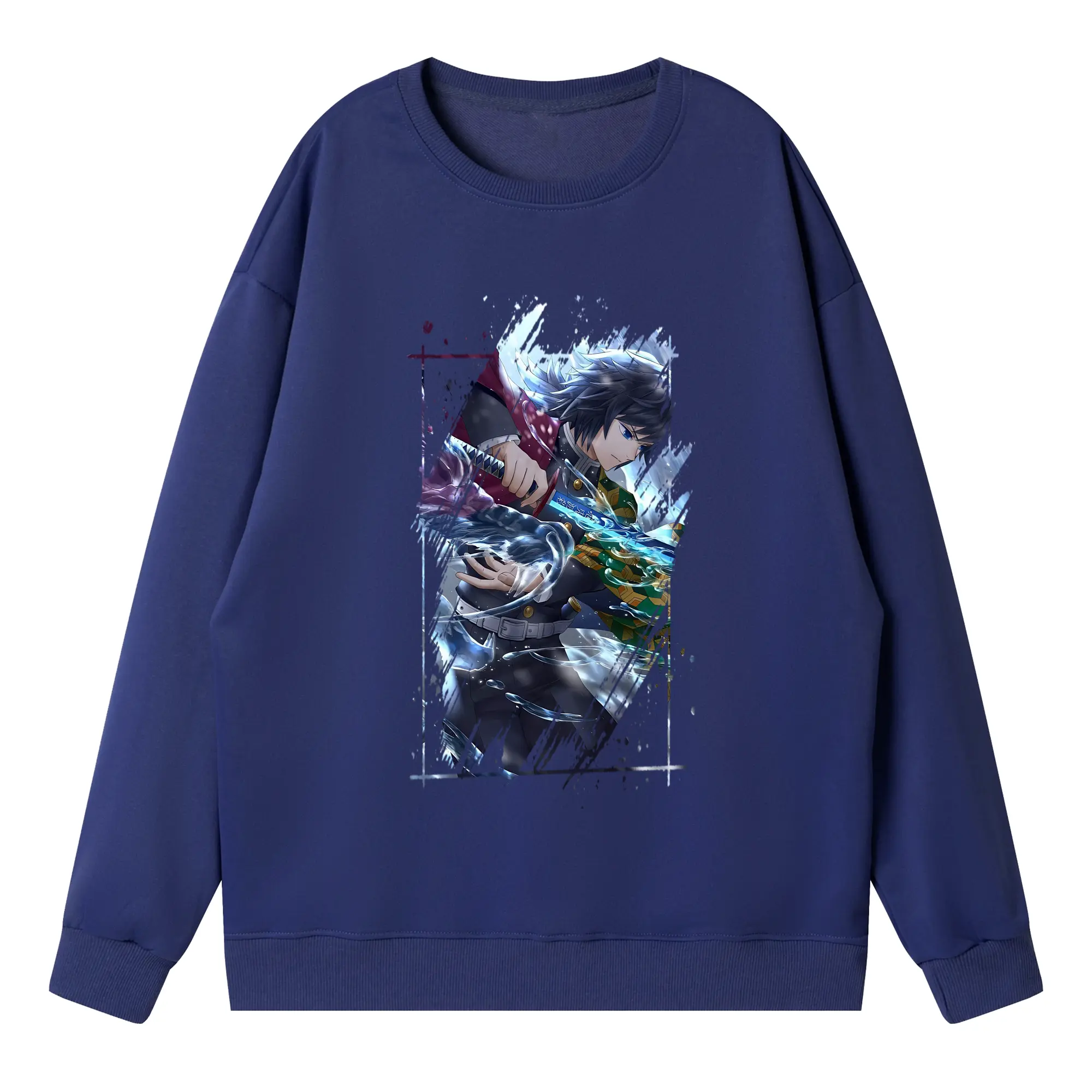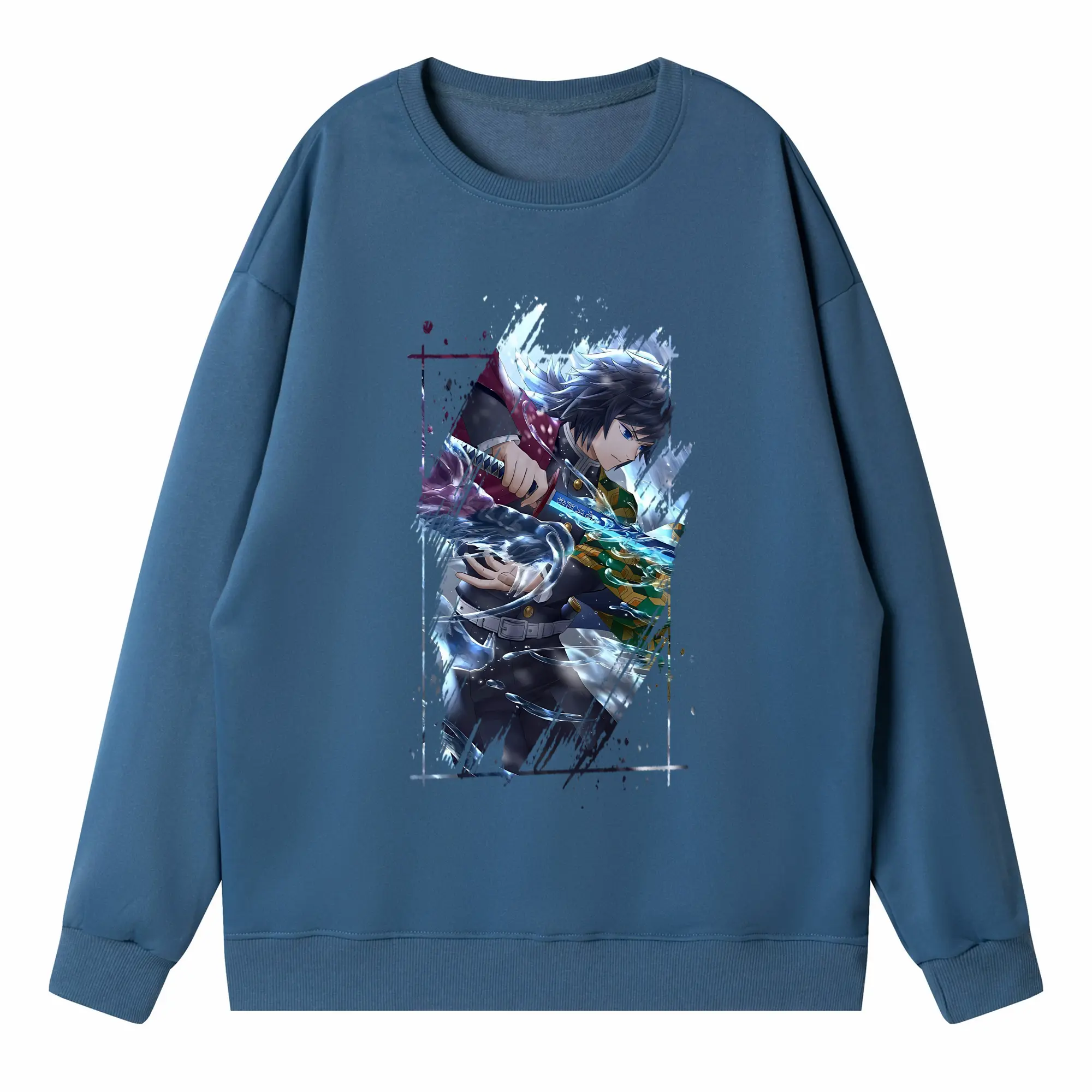 鬼滅の刃 グッズ,冨岡 義勇 - 高品質 クルーネック スウェット ・ コットン59% ポリエステル41% ・ ユニセックス 長袖 トレーナー ・ カジュアル デイリー スポーツ 散歩用