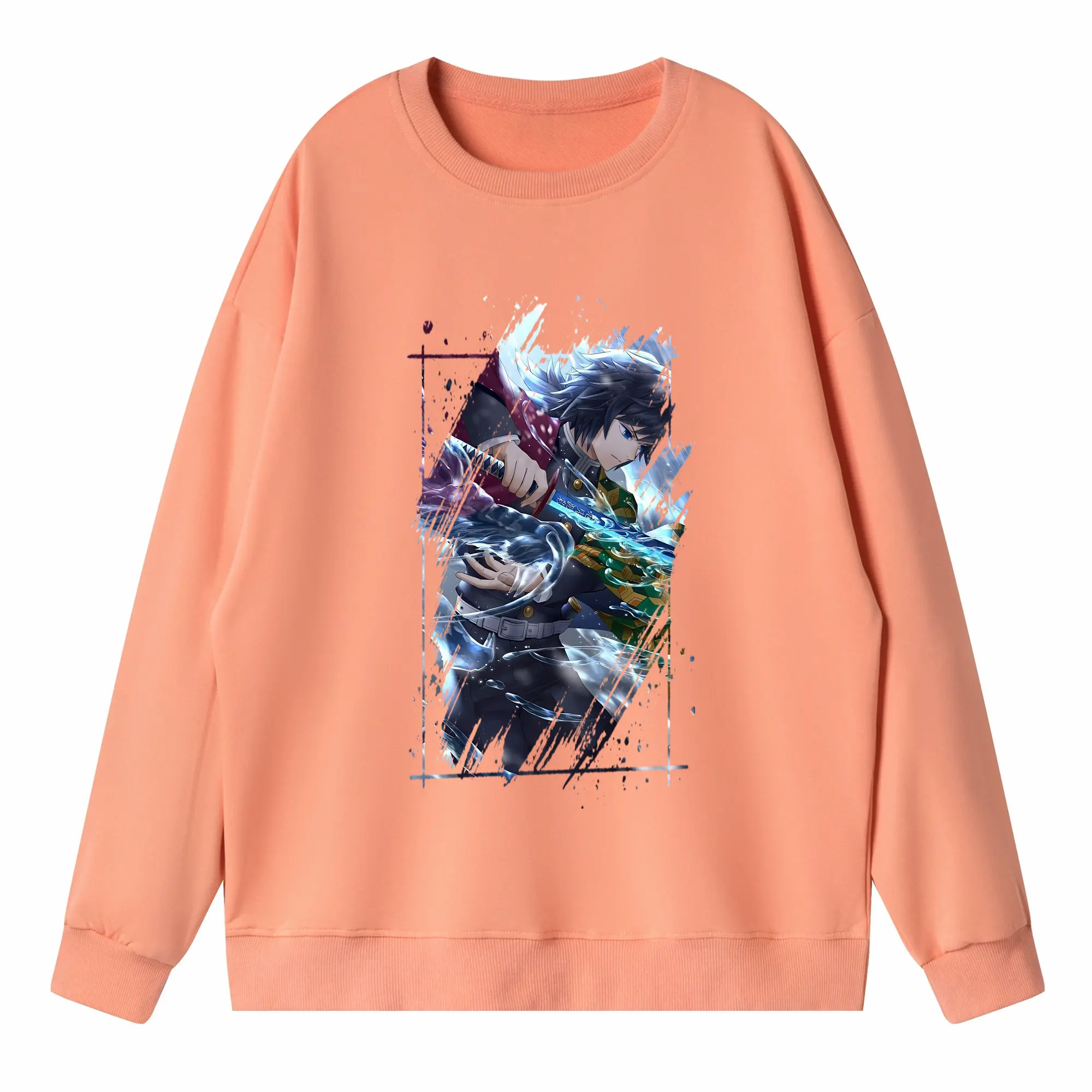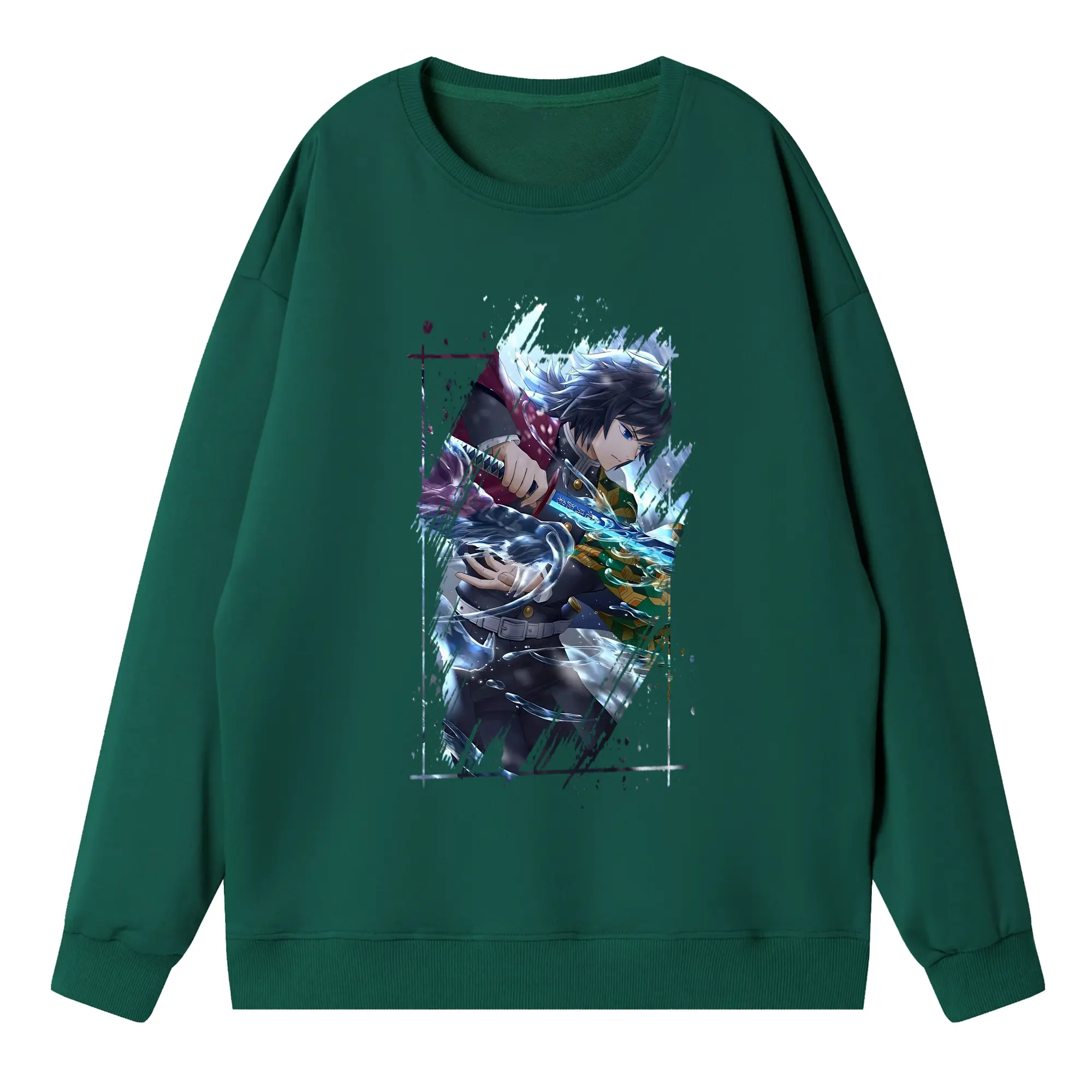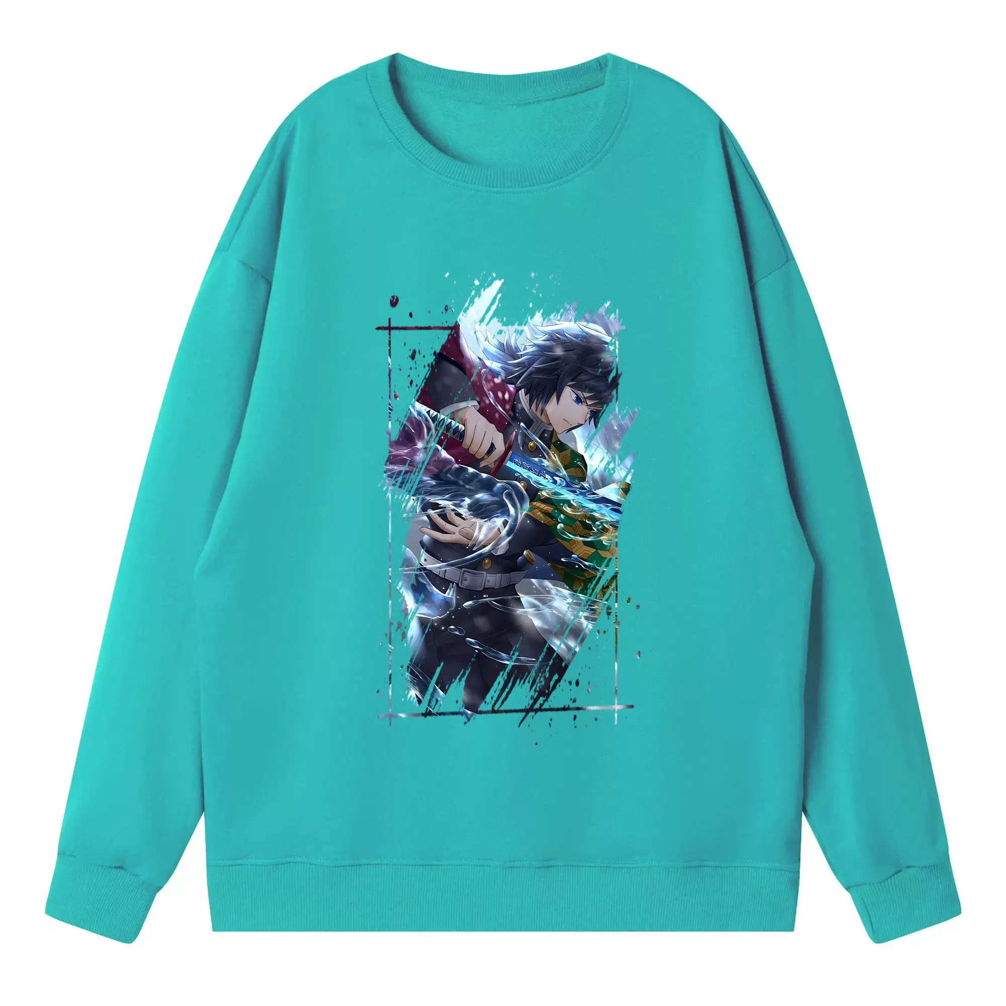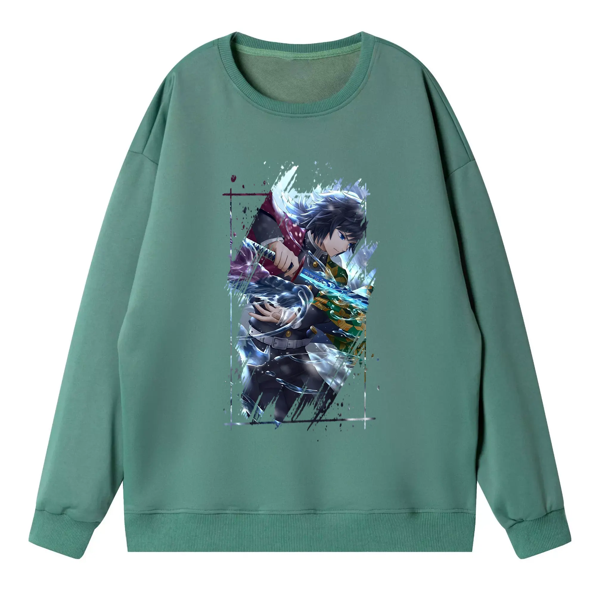 鬼滅の刃 グッズ,冨岡 義勇 - 高品質 クルーネック スウェット ・ コットン59% ポリエステル41% ・ ユニセックス 長袖 トレーナー ・ カジュアル デイリー スポーツ 散歩用