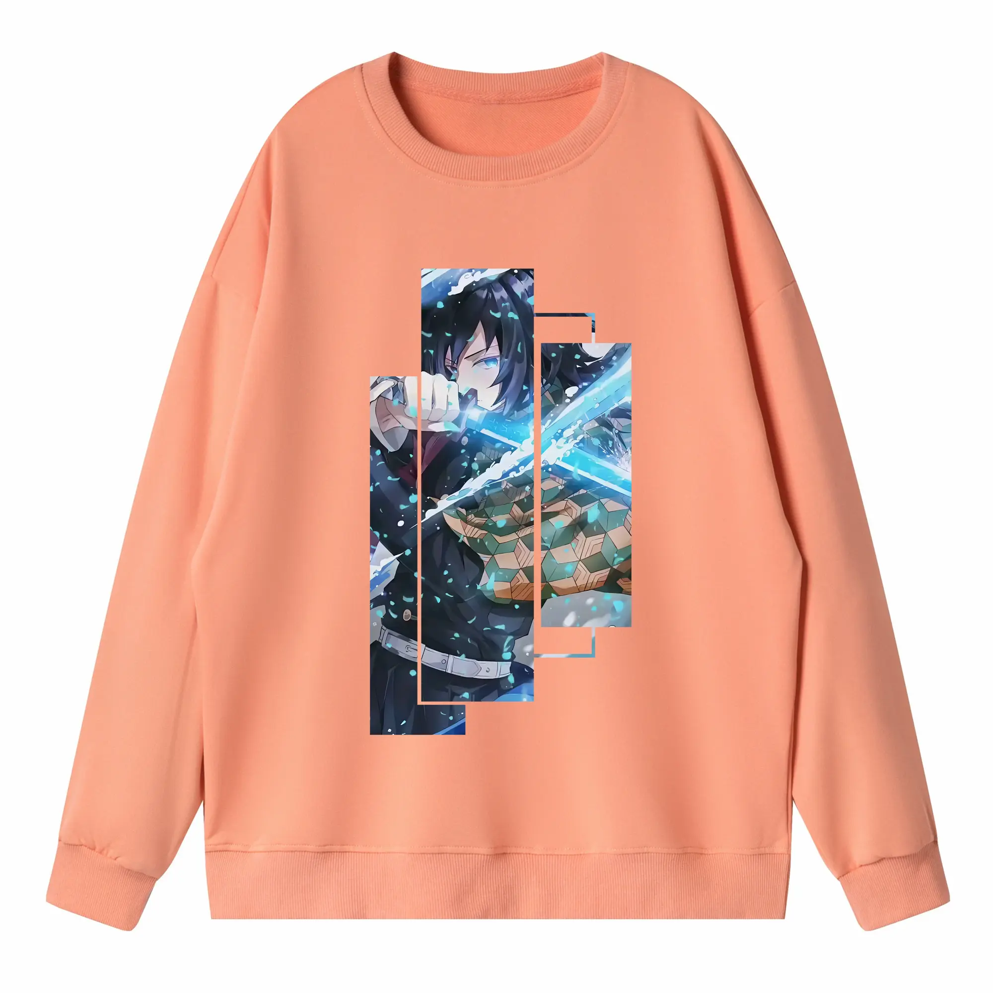 鬼滅の刃 グッズ,冨岡 義勇 - 高品質 クルーネック スウェット ・ コットン59% ポリエステル41% ・ ユニセックス 長袖 トレーナー ・ カジュアル デイリー スポーツ 散歩用