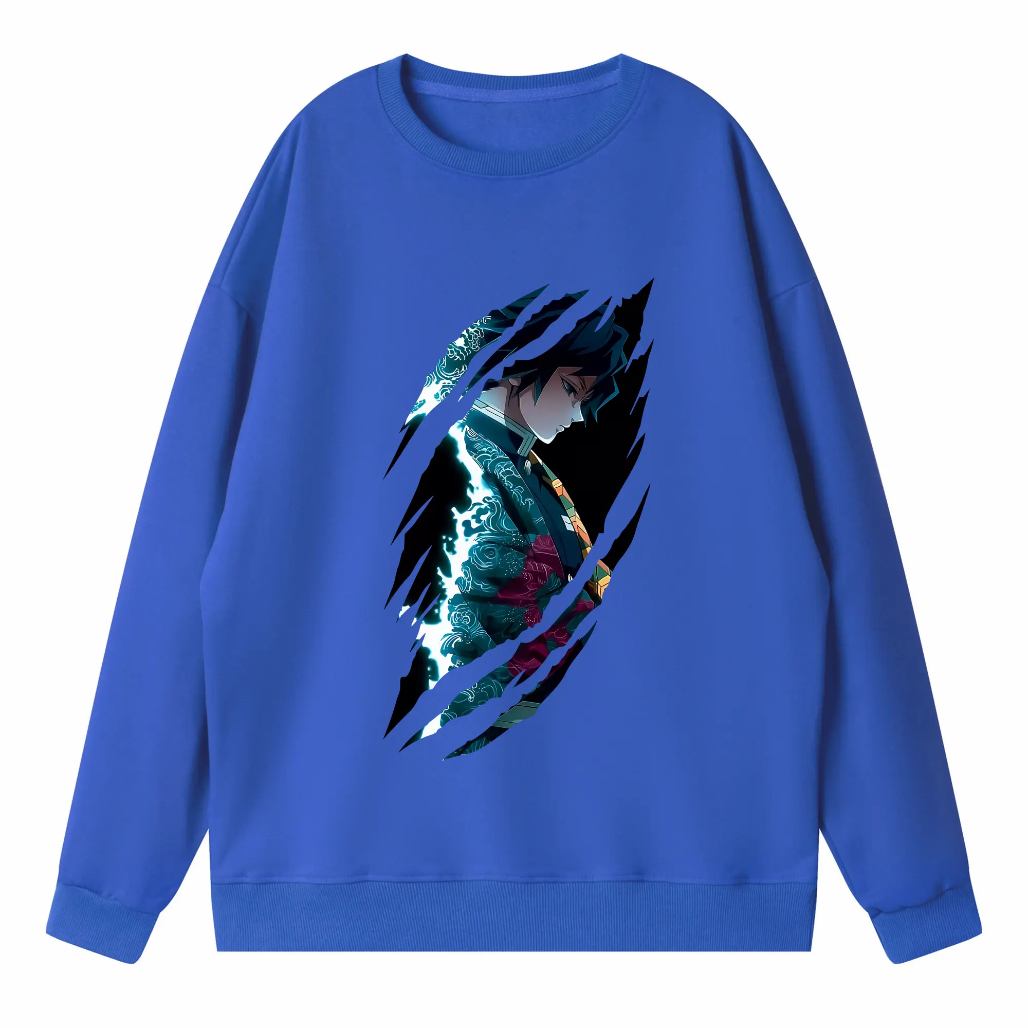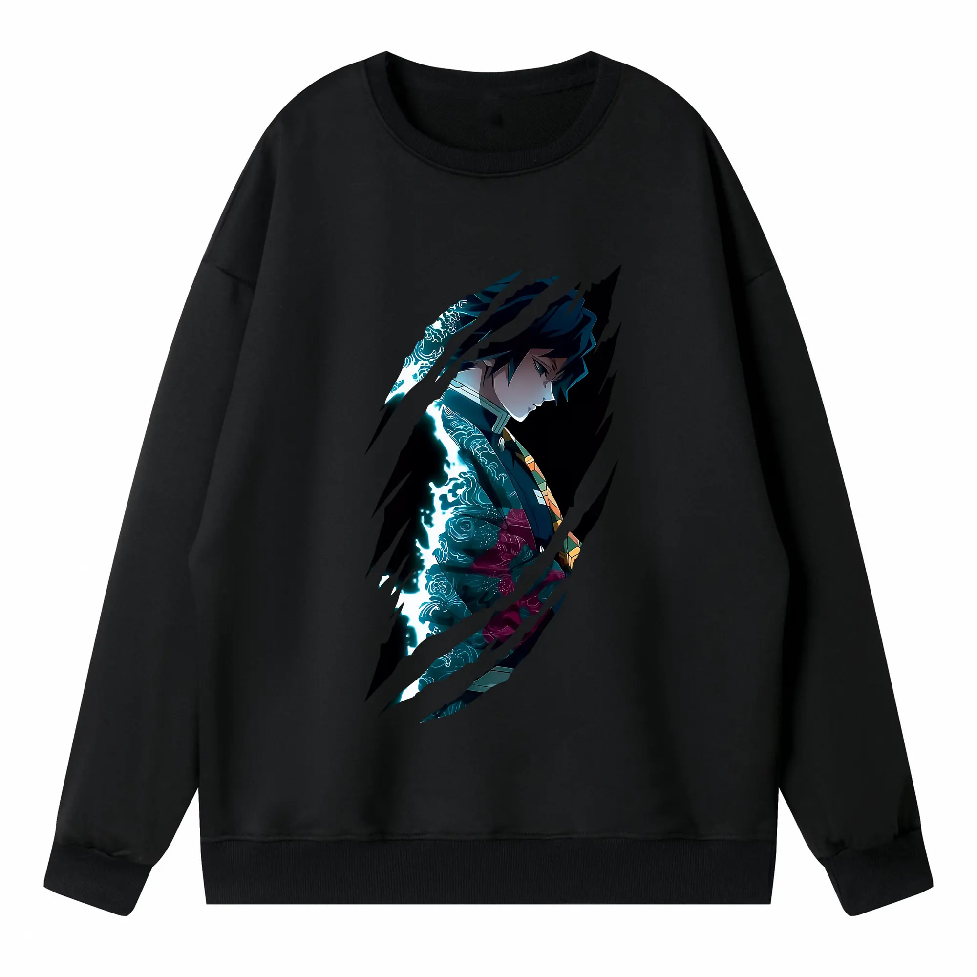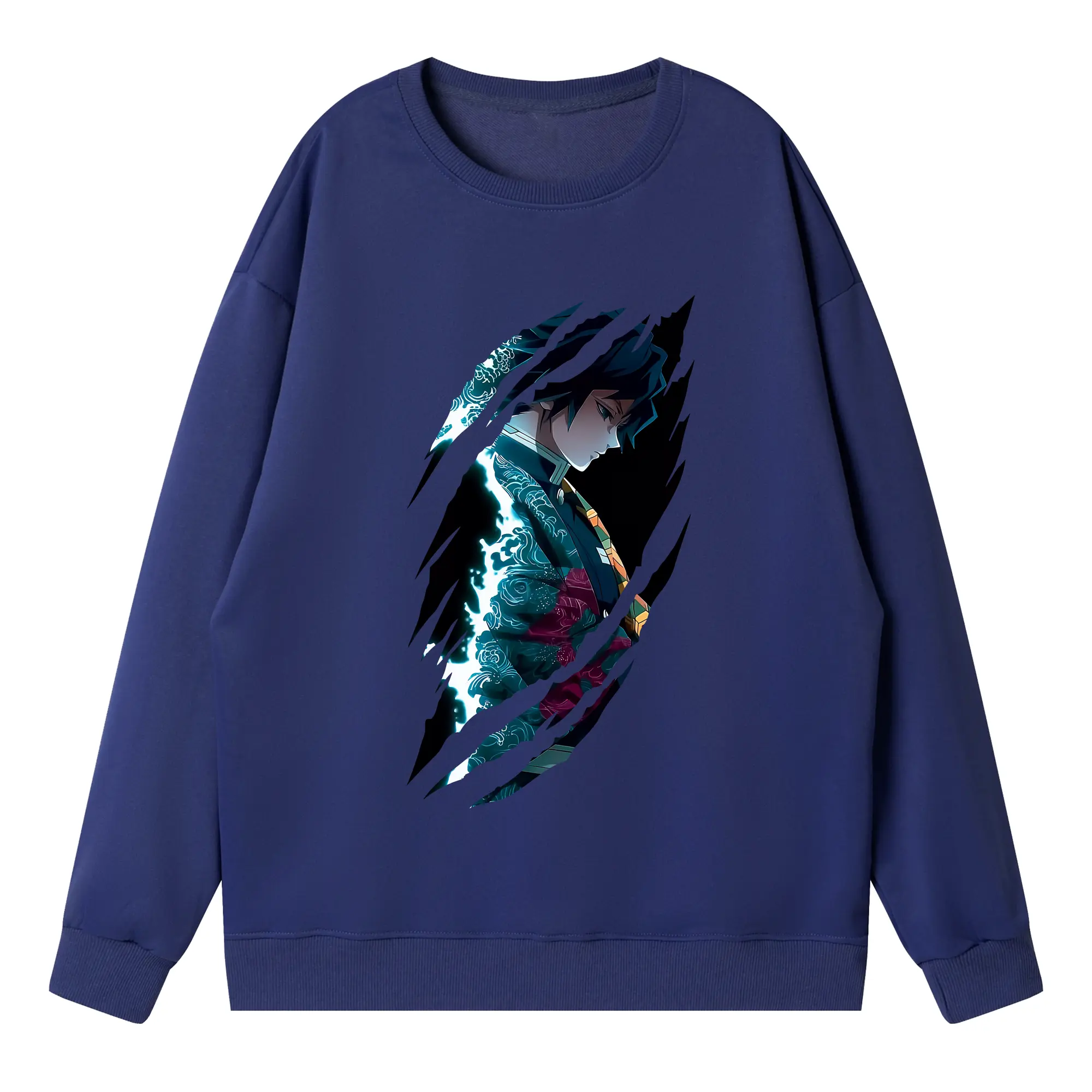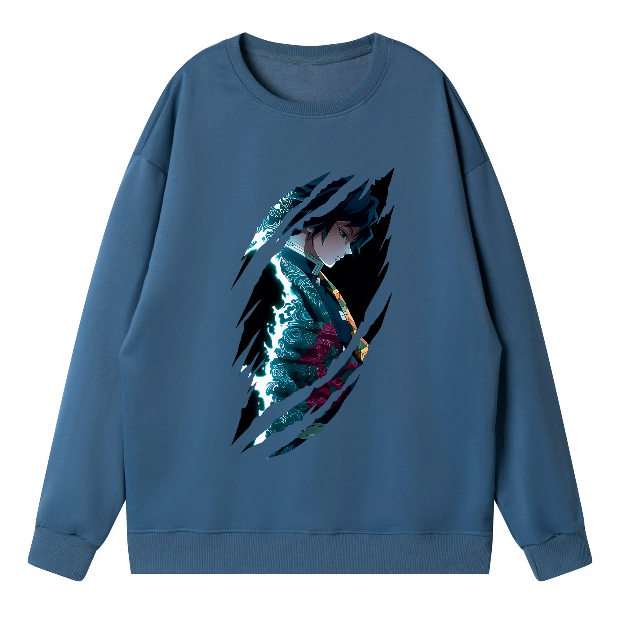 鬼滅の刃 グッズ,冨岡 義勇 - 高品質 クルーネック スウェット ・ コットン59% ポリエステル41% ・ ユニセックス 長袖 トレーナー ・ カジュアル デイリー スポーツ 散歩用
