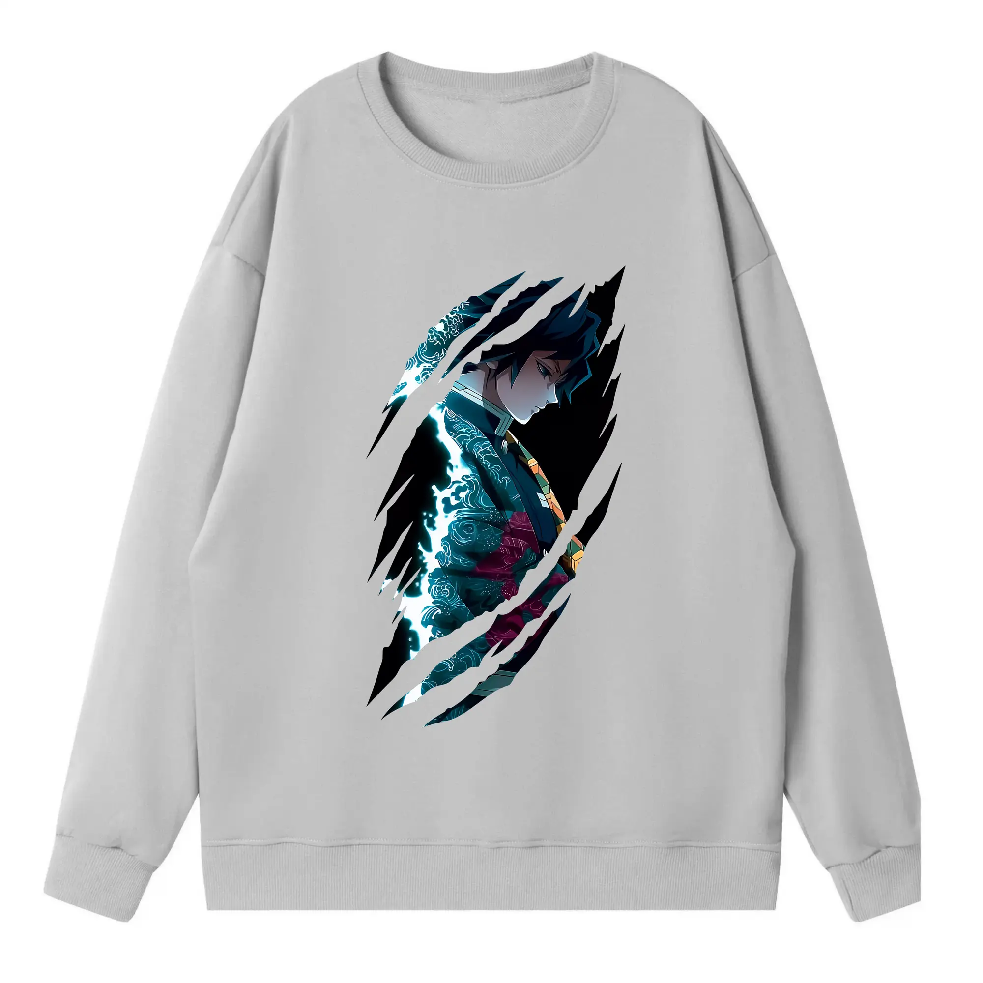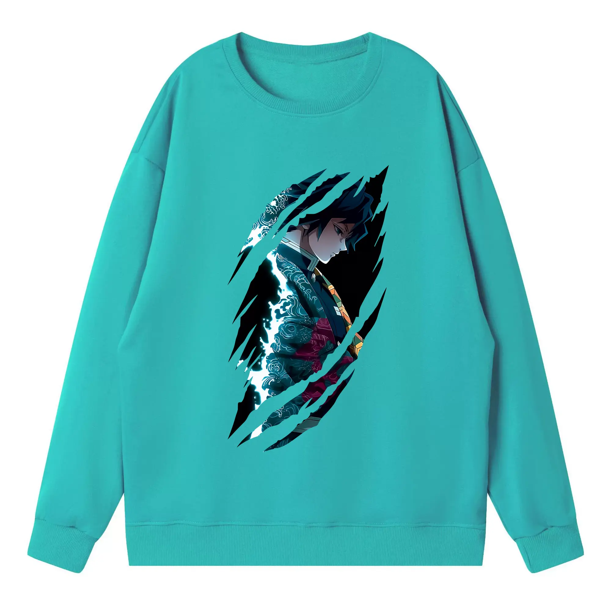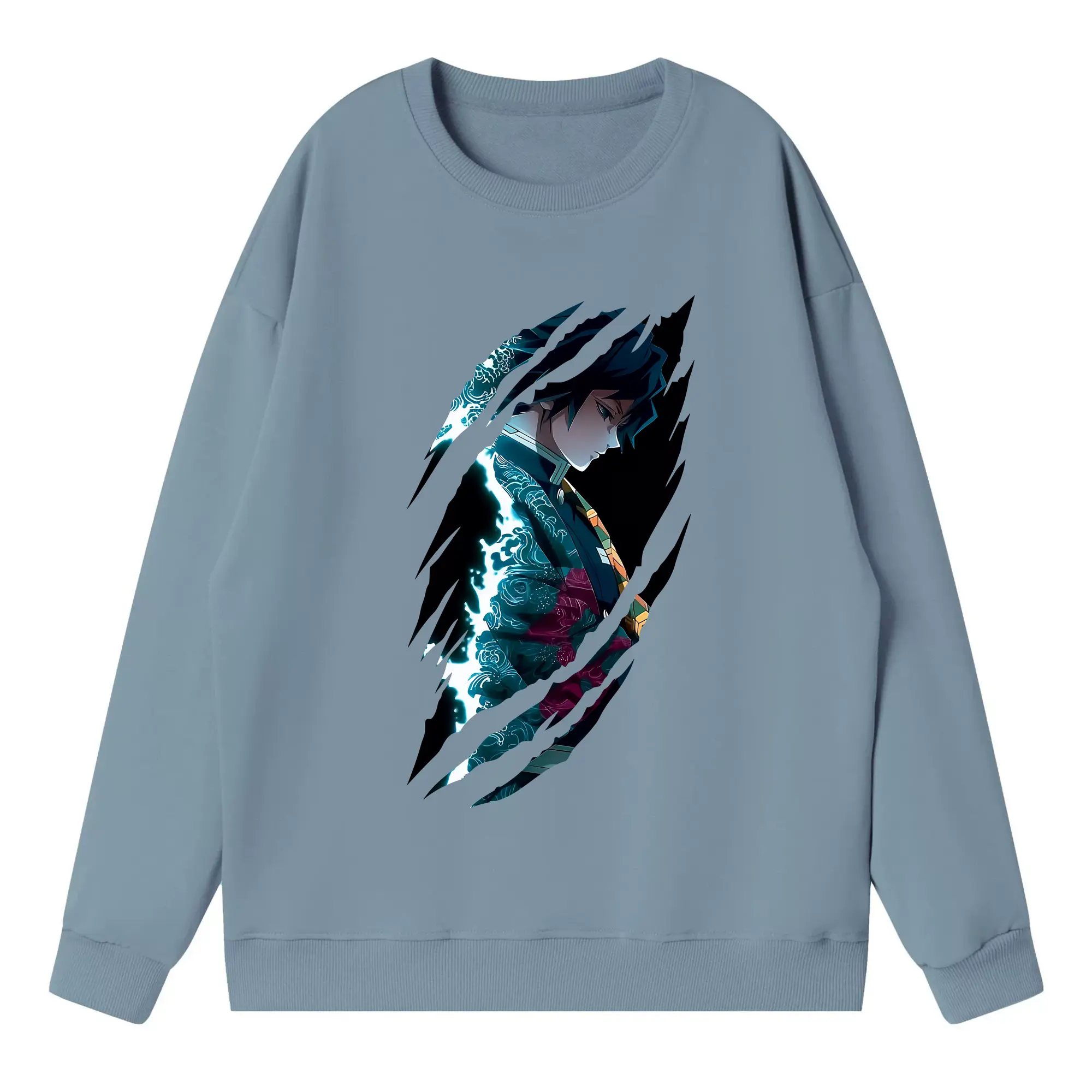 鬼滅の刃 グッズ,冨岡 義勇 - 高品質 クルーネック スウェット ・ コットン59% ポリエステル41% ・ ユニセックス 長袖 トレーナー ・ カジュアル デイリー スポーツ 散歩用