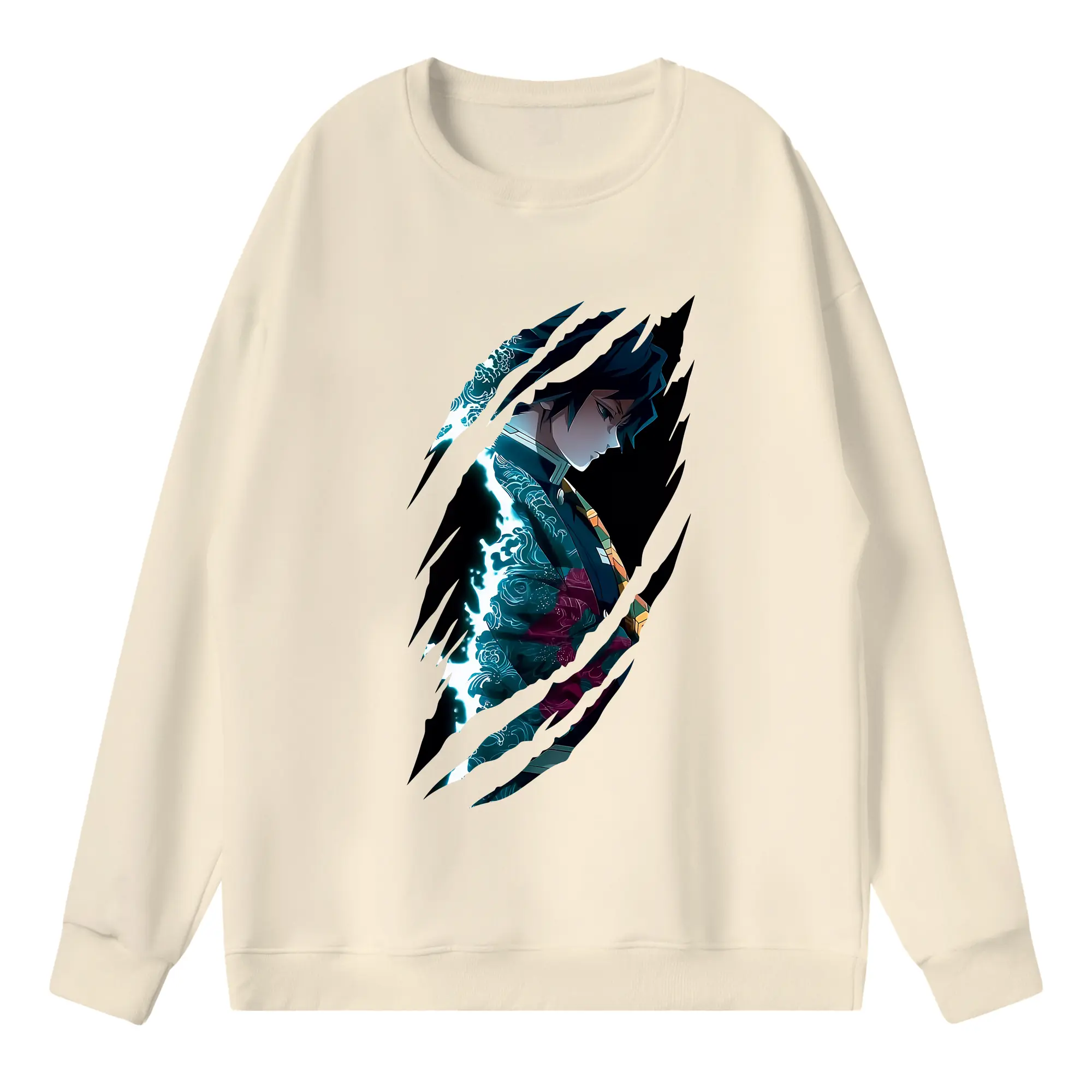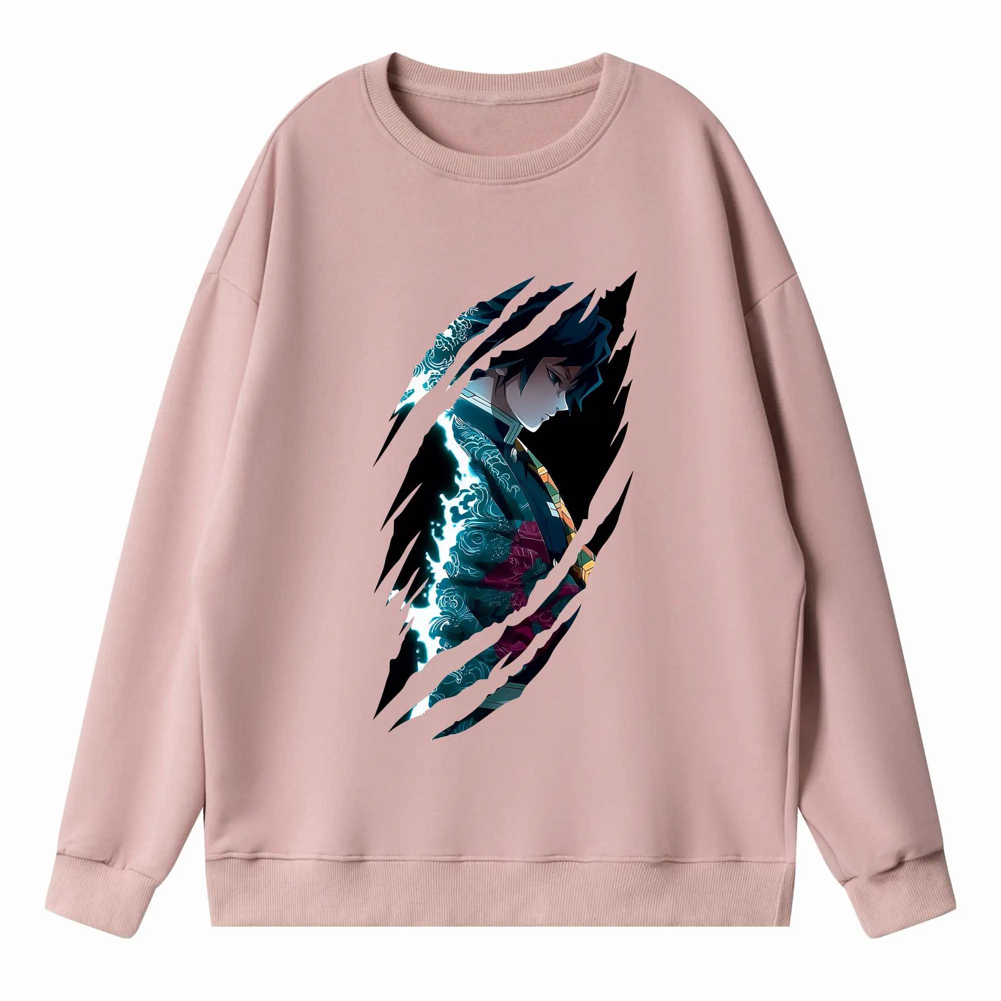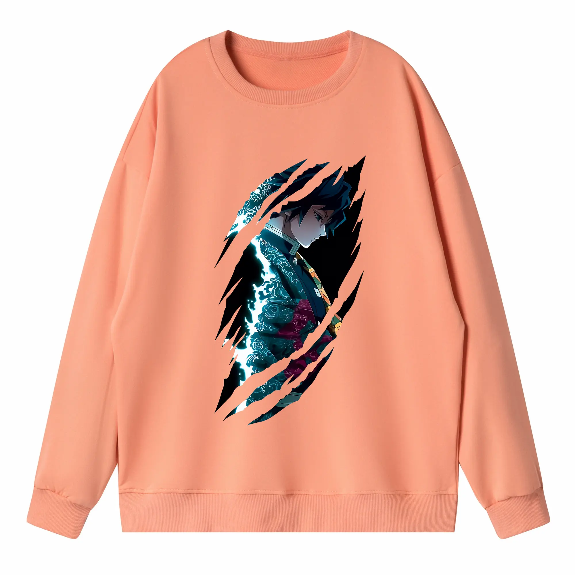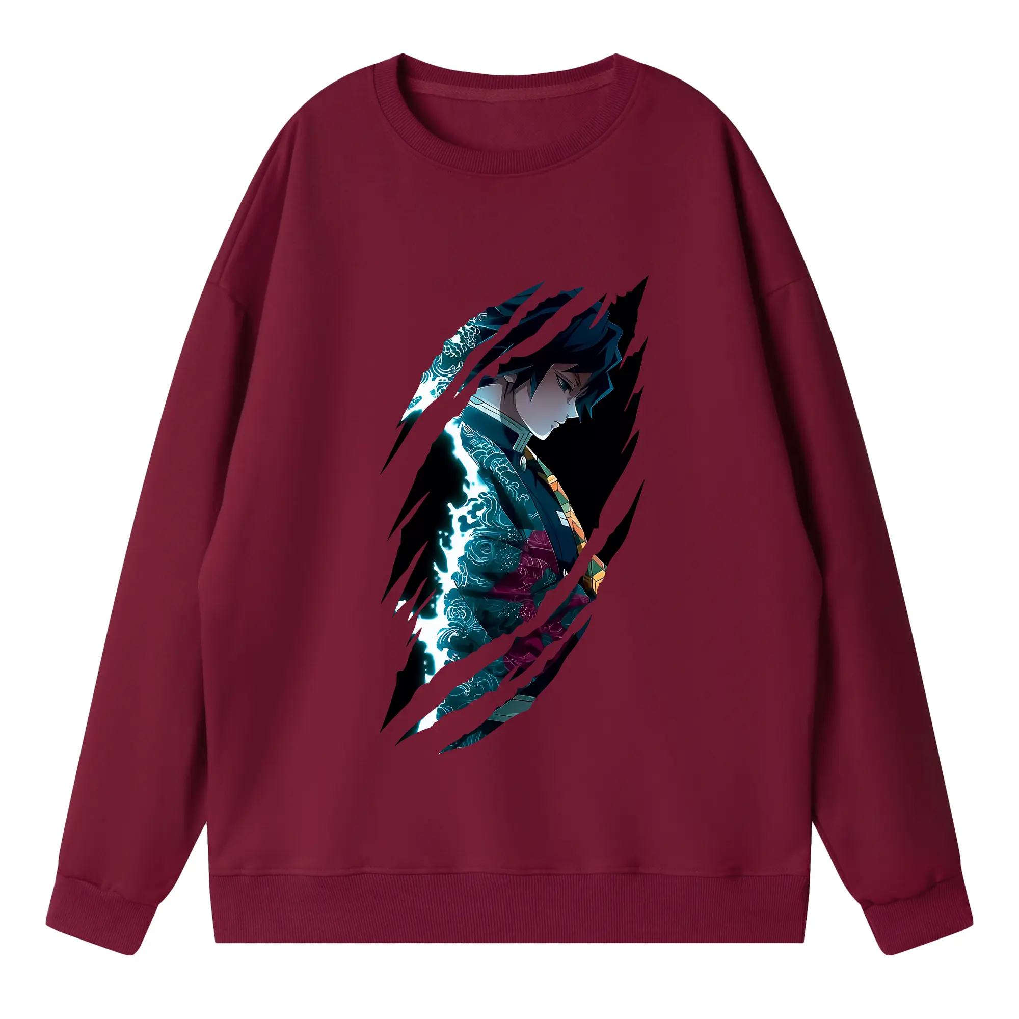 鬼滅の刃 グッズ,冨岡 義勇 - 高品質 クルーネック スウェット ・ コットン59% ポリエステル41% ・ ユニセックス 長袖 トレーナー ・ カジュアル デイリー スポーツ 散歩用