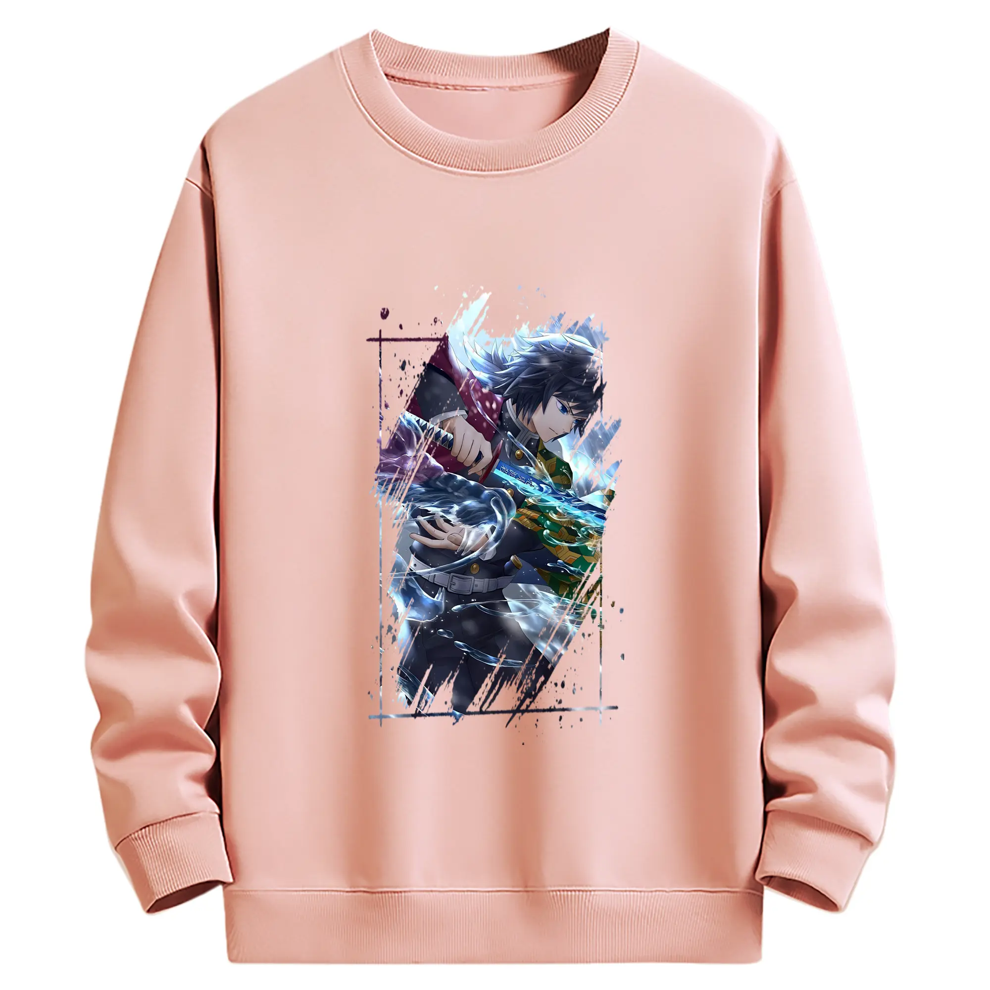 鬼滅の刃 グッズ,冨岡 義勇 - 薄手 クルーネック スウェット 裏毛260g · ポリエステル 春秋向け カジュアル 男女兼用 · トレーナー デイリー スポーツ 散歩に最適