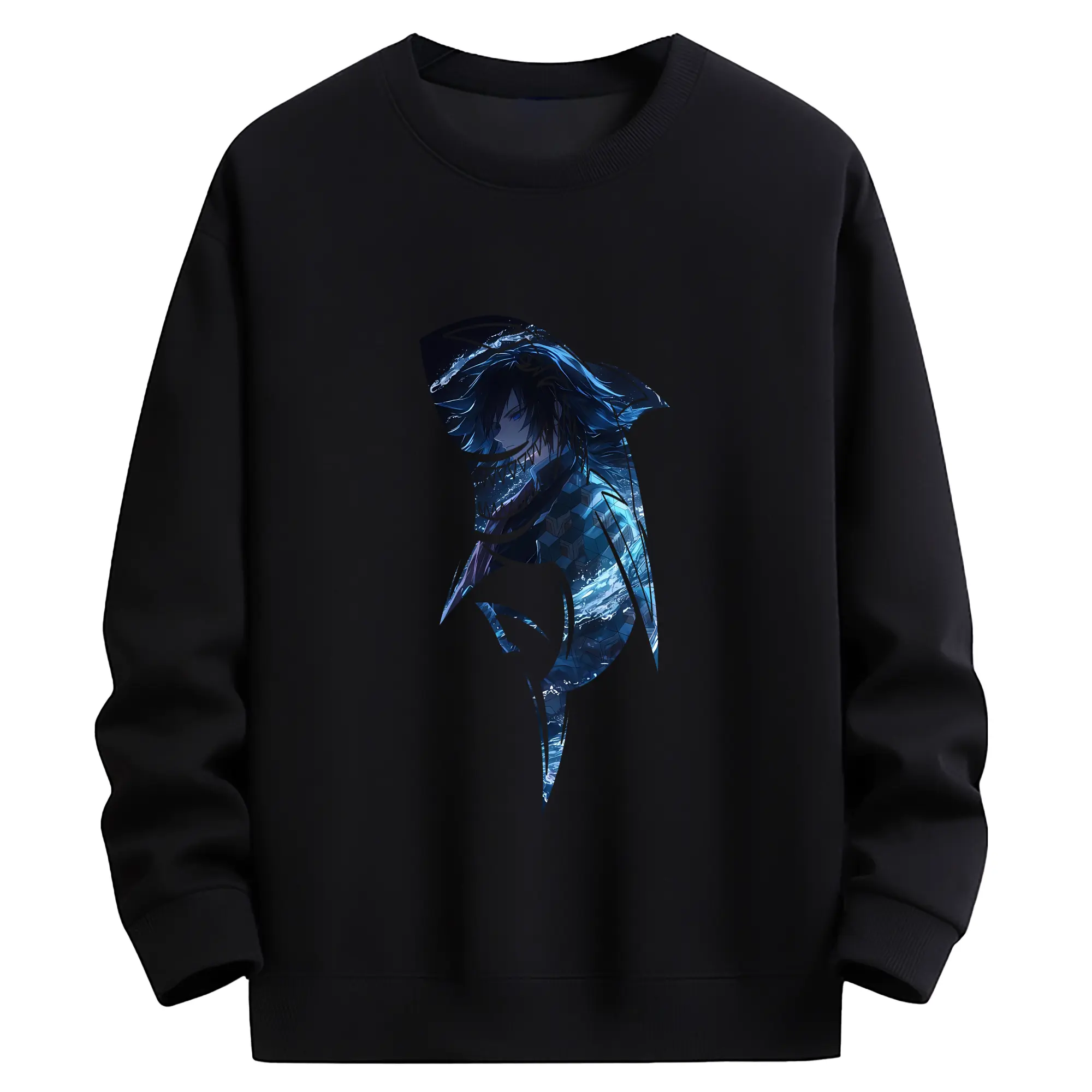 鬼滅の刃 グッズ,冨岡 義勇 - 薄手 クルーネック スウェット 裏毛260g · ポリエステル 春秋向け カジュアル 男女兼用 · トレーナー デイリー スポーツ 散歩に最適