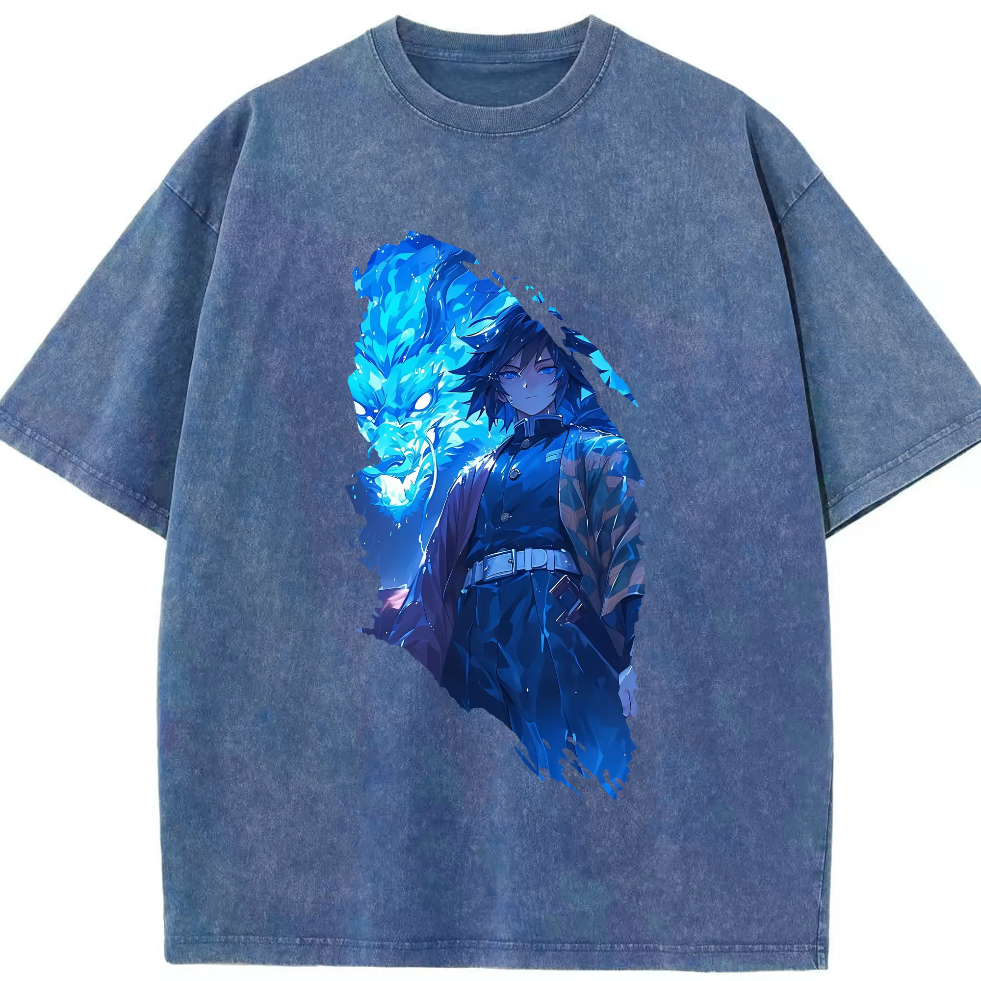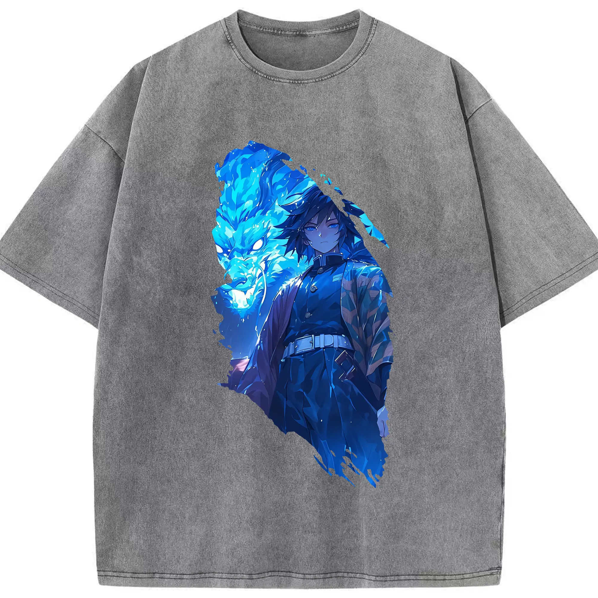 鬼滅の刃 グッズ,冨岡 義勇 - 綿100% 半袖Tシャツ ・ フロントプリント ・ 快適 通気性 ・ 日常使い 散歩 スポーツ用