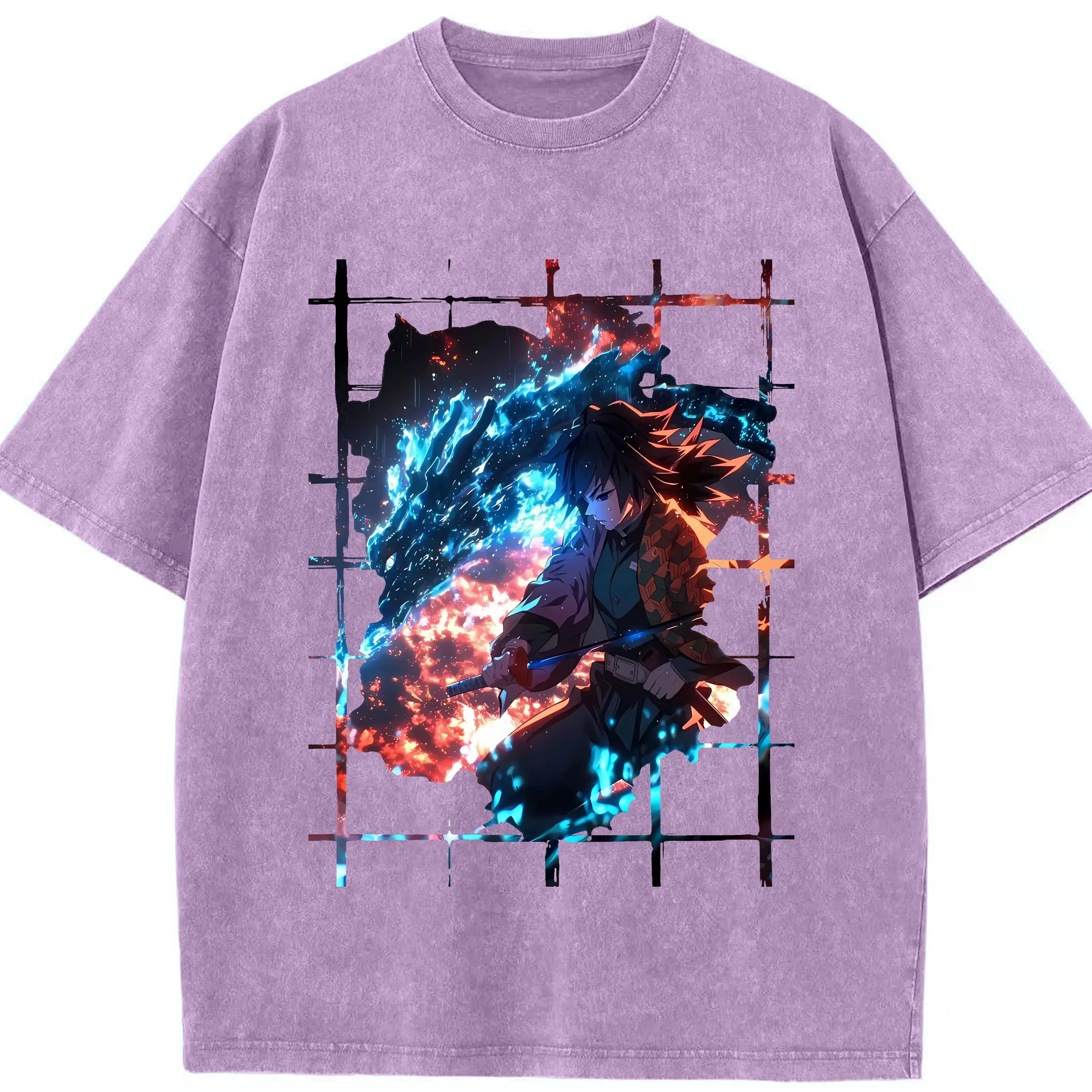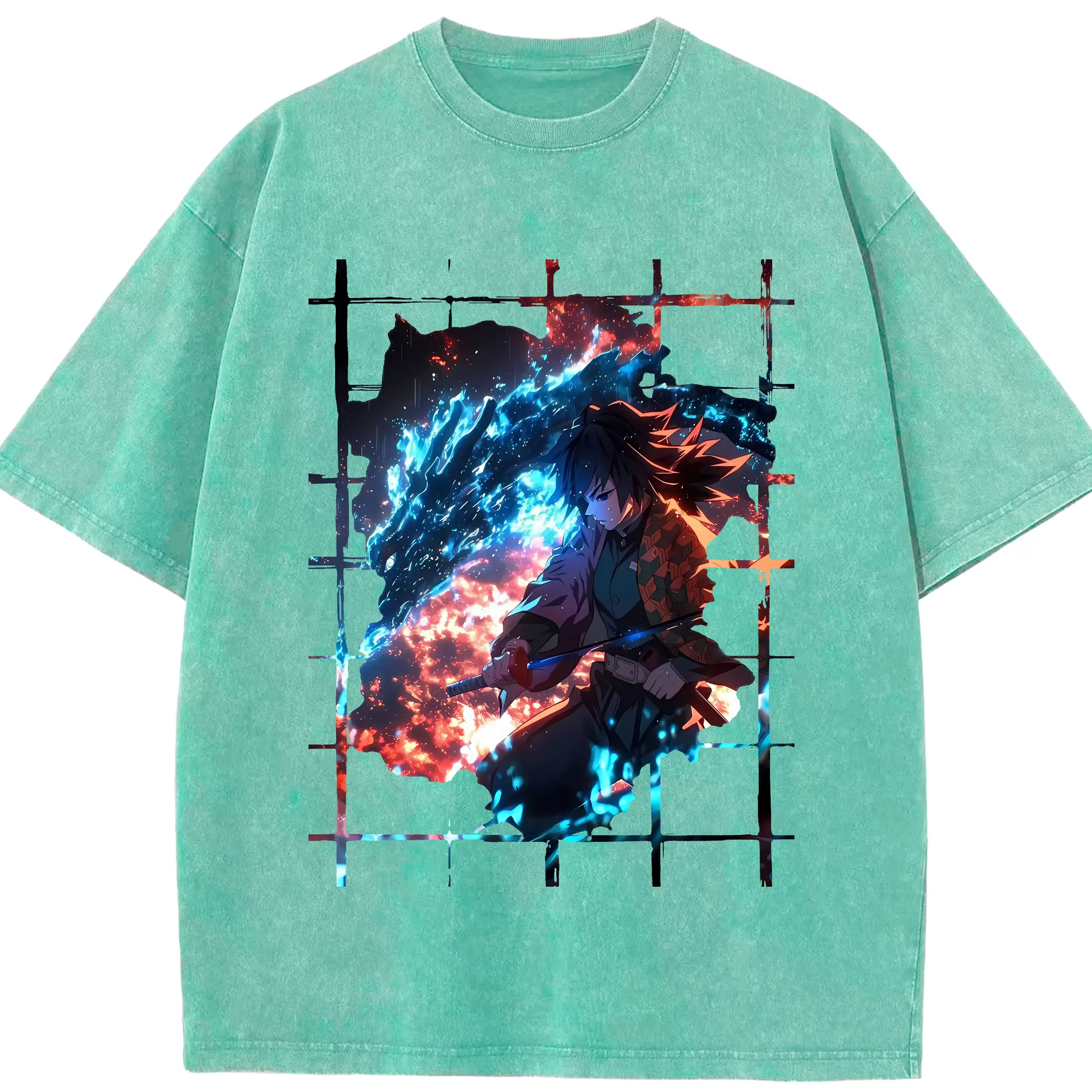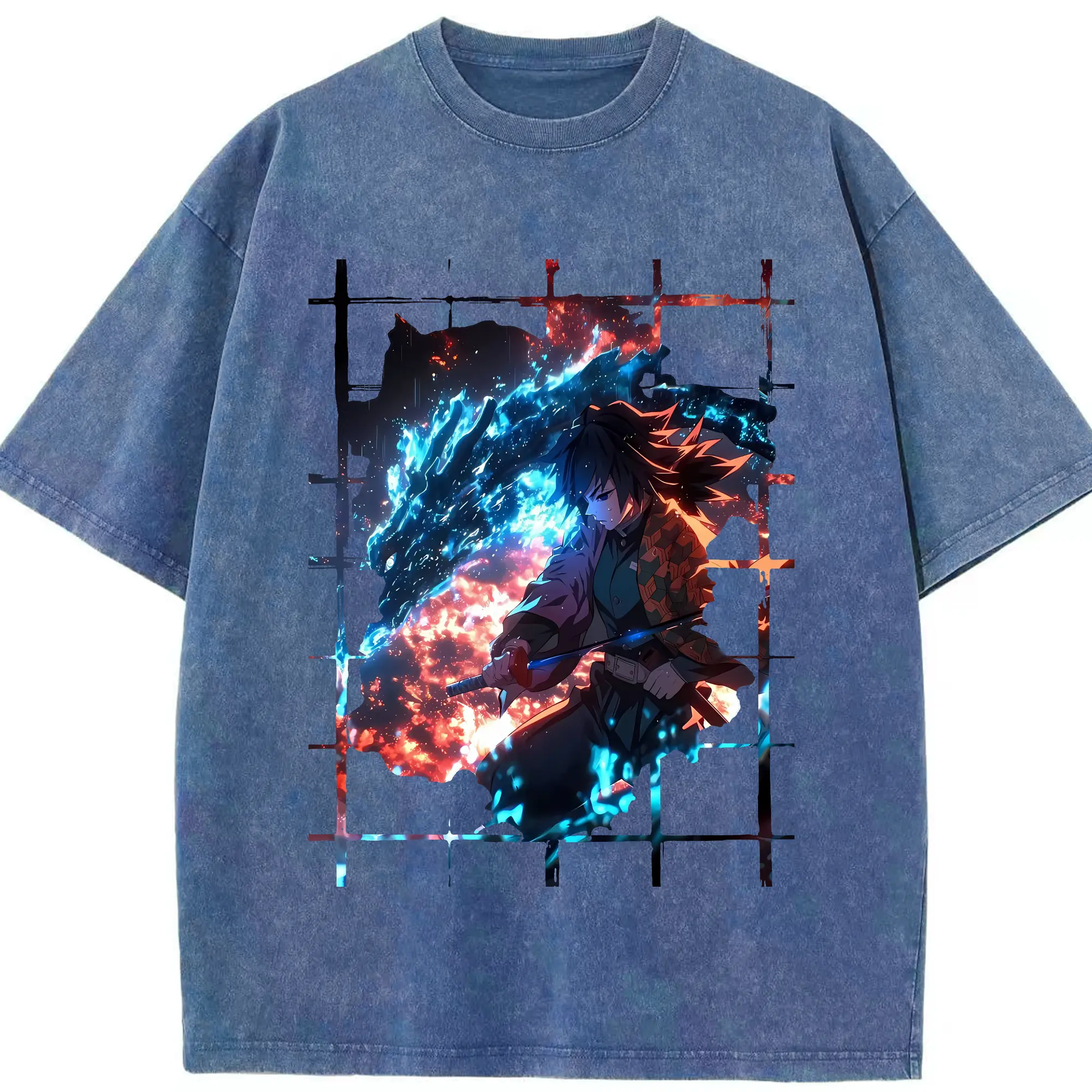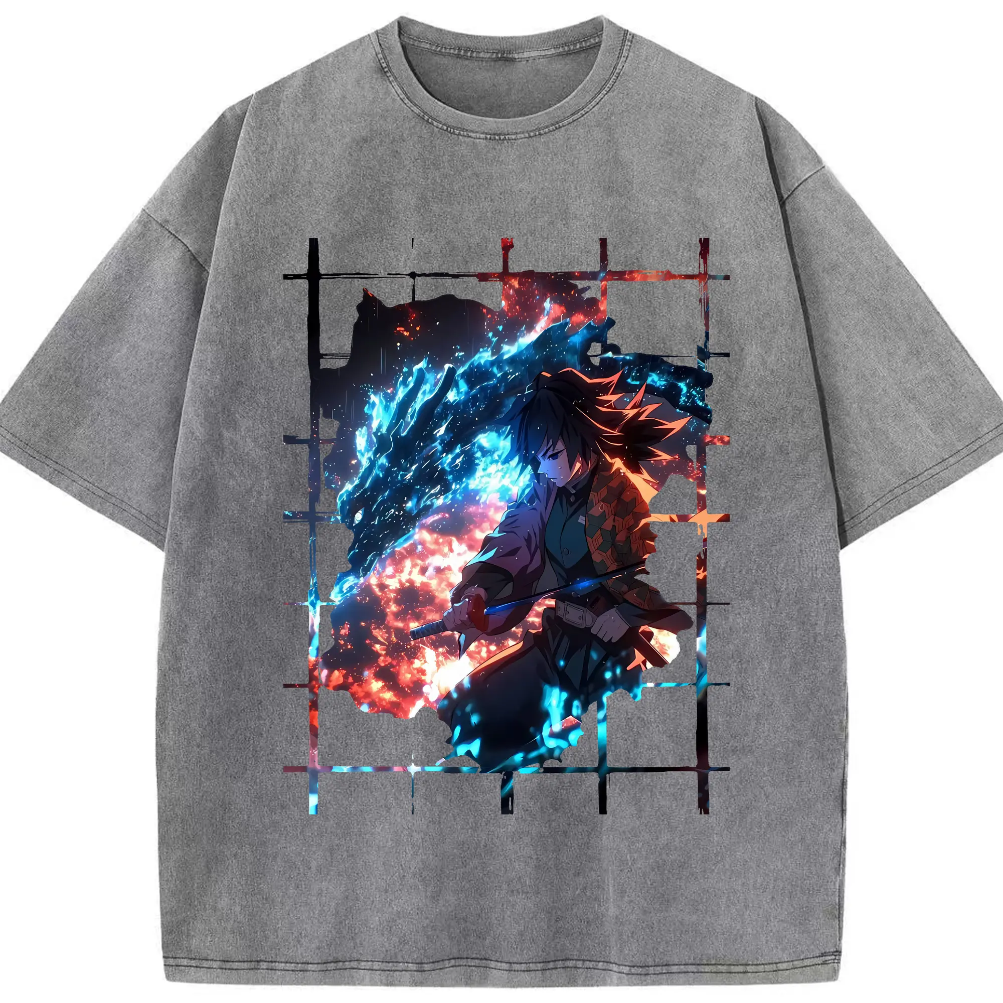 鬼滅の刃 グッズ,冨岡 義勇 - 綿100% ヴィンテージ風 半袖Tシャツ ・ フロントプリント ・ 柔らか肌触り ・ 通気性 快適 ・ スポーツ カジュアル 外出用