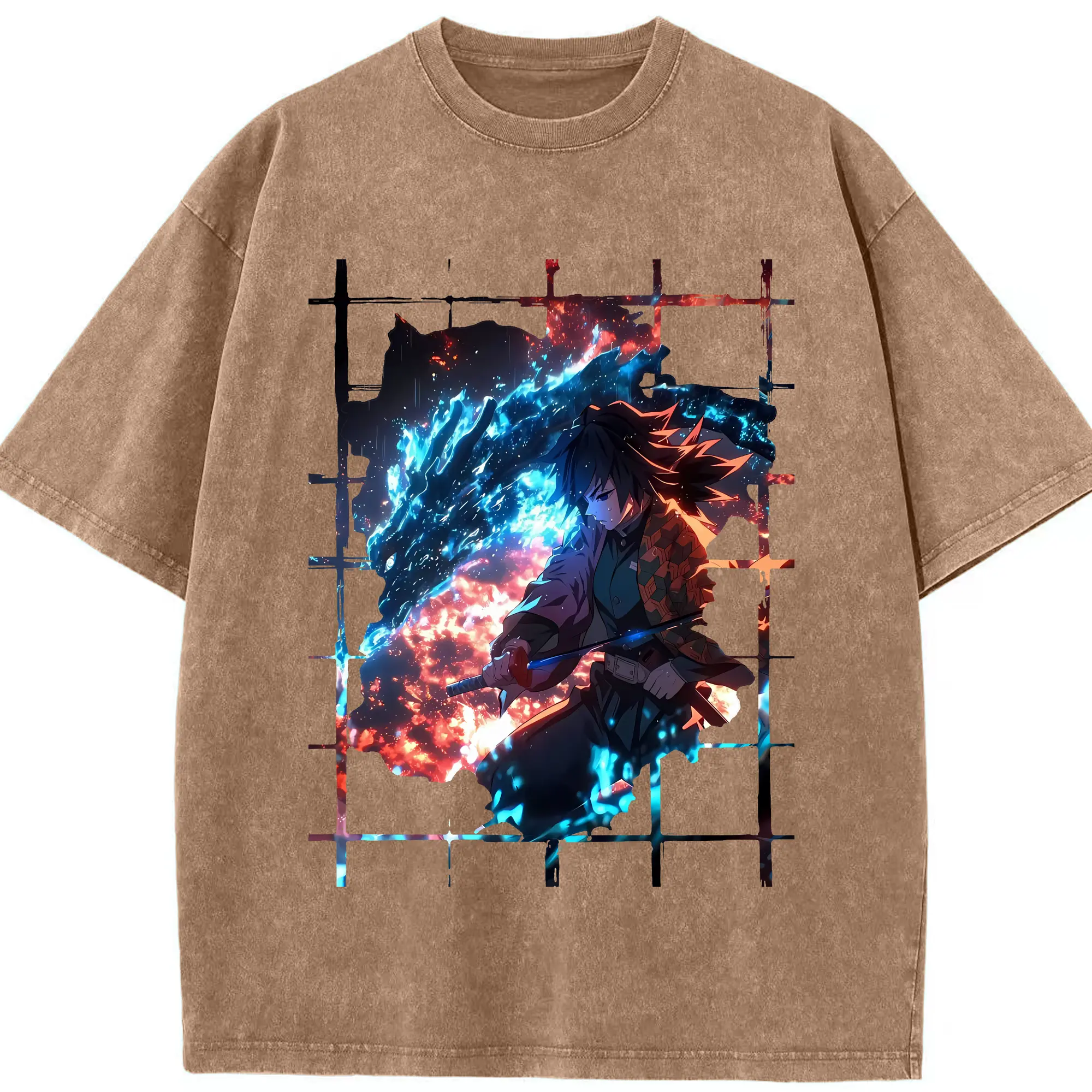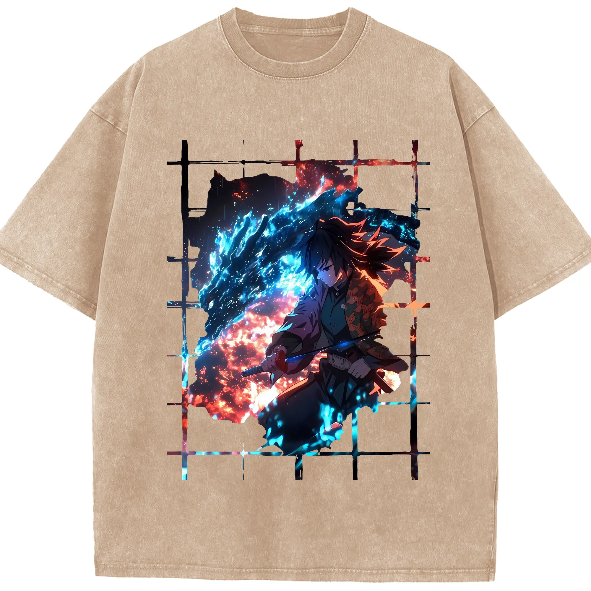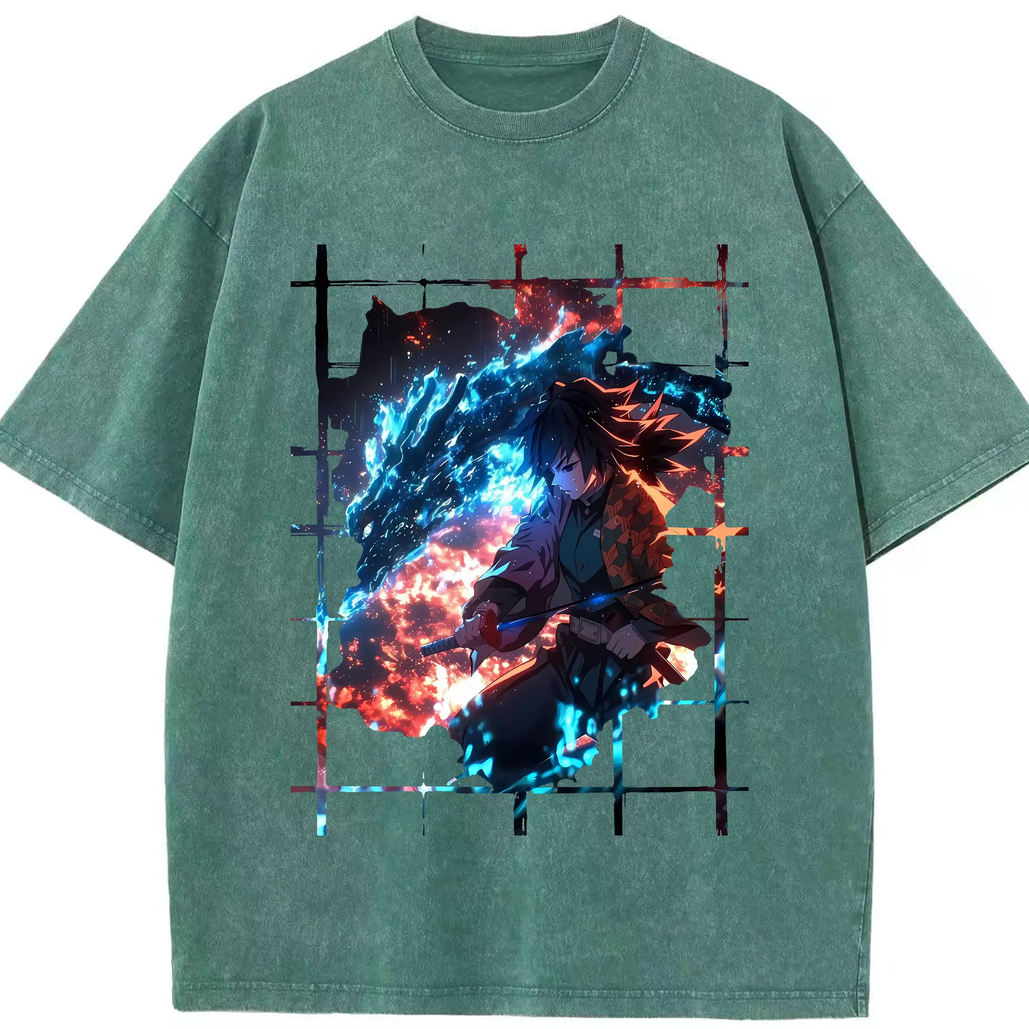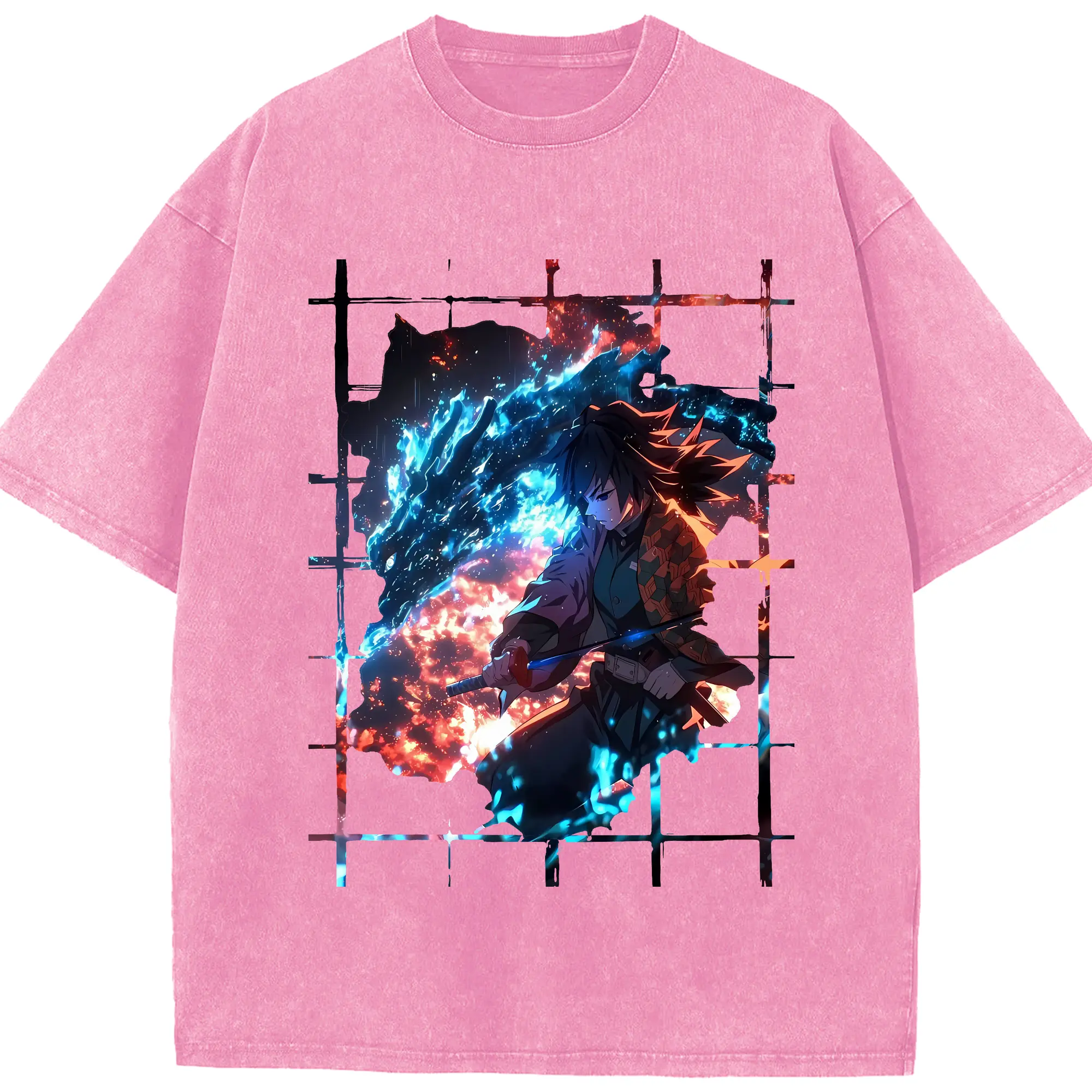 鬼滅の刃 グッズ,冨岡 義勇 - 綿100% ヴィンテージ風 半袖Tシャツ ・ フロントプリント ・ 柔らか肌触り ・ 通気性 快適 ・ スポーツ カジュアル 外出用