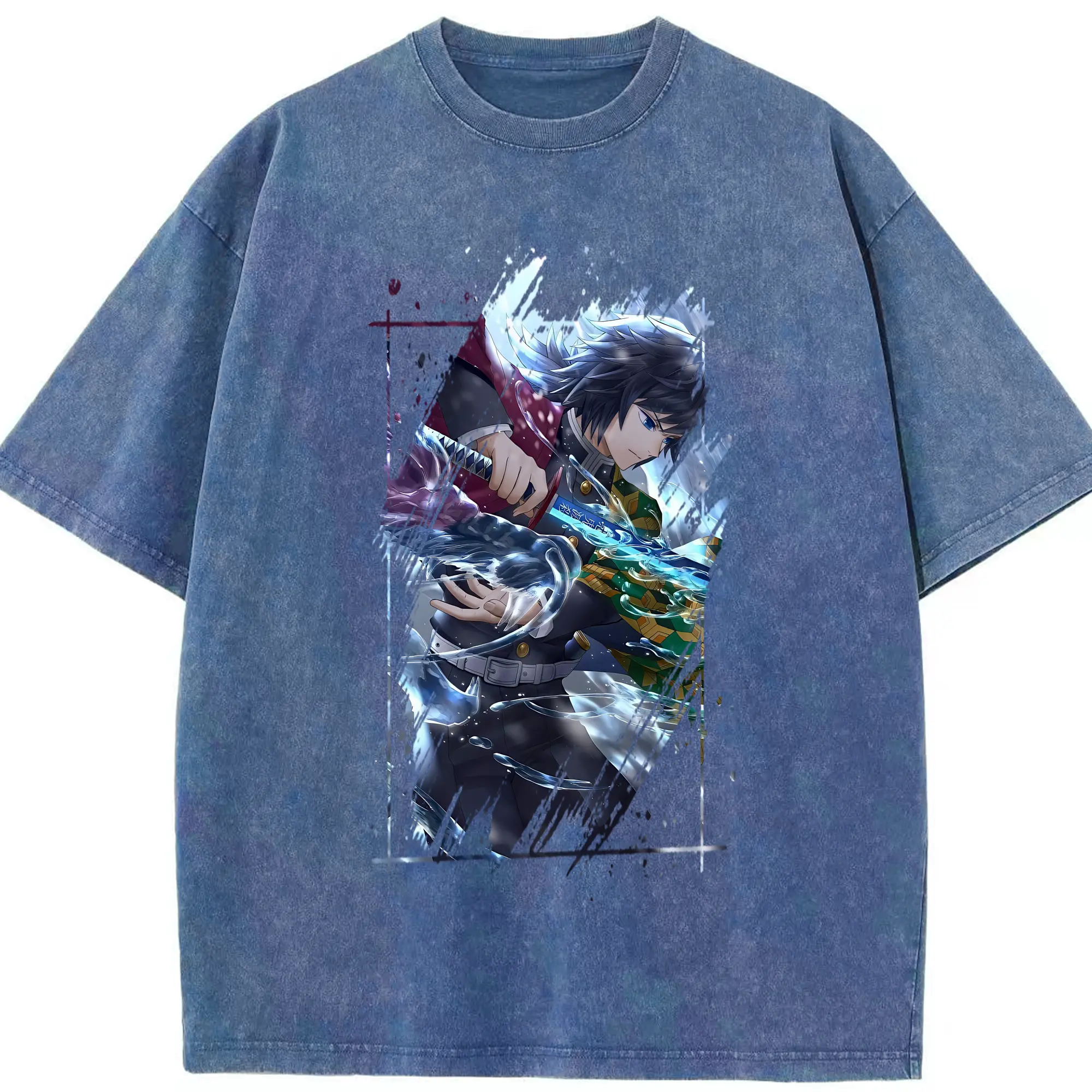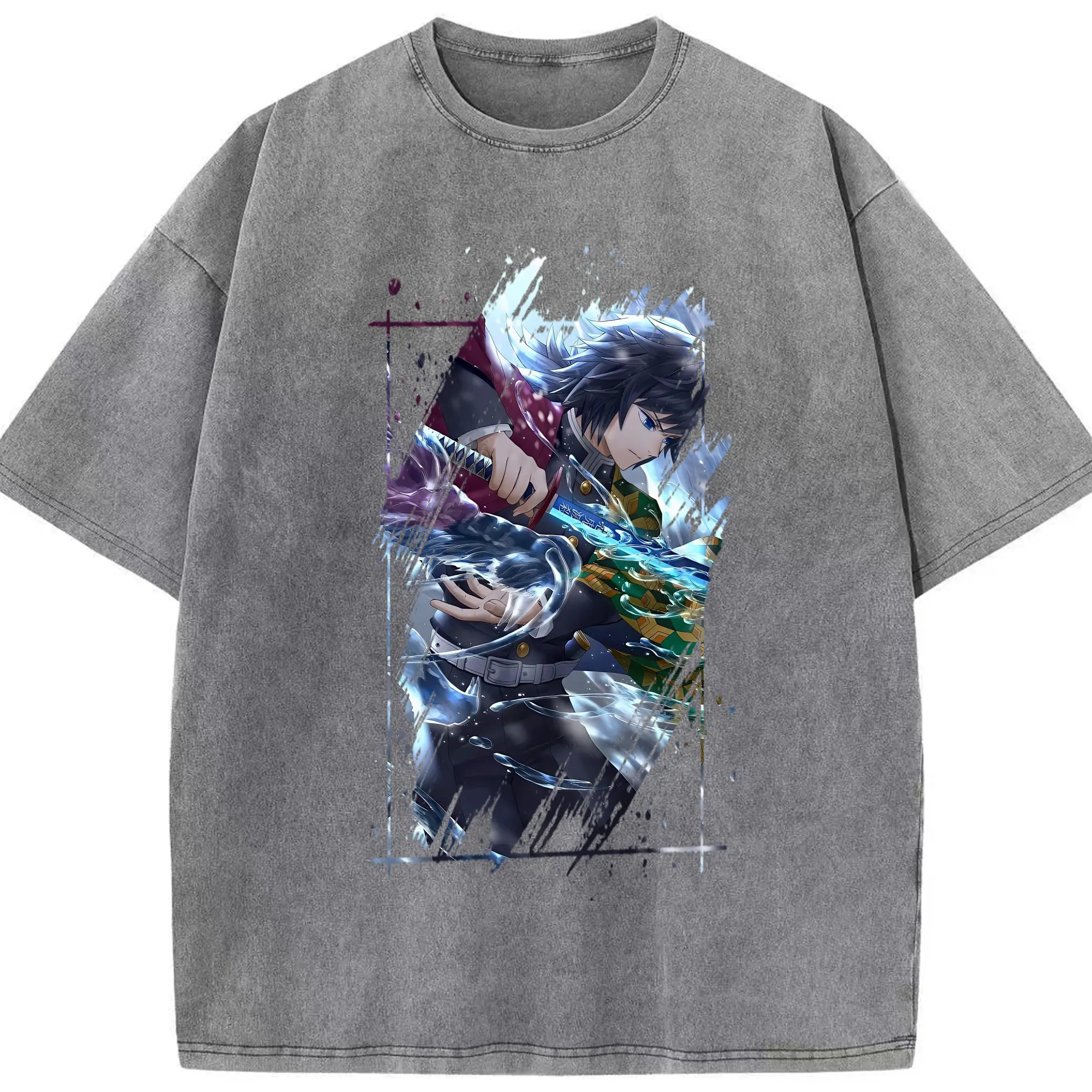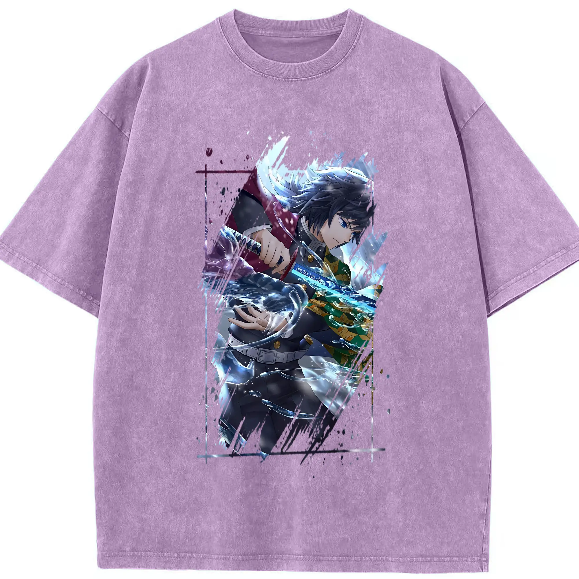 鬼滅の刃 グッズ,冨岡 義勇 - 綿100% 半袖Tシャツ ・ フロントプリント ・ 快適 通気性 ・ 日常使い 散歩 スポーツ用