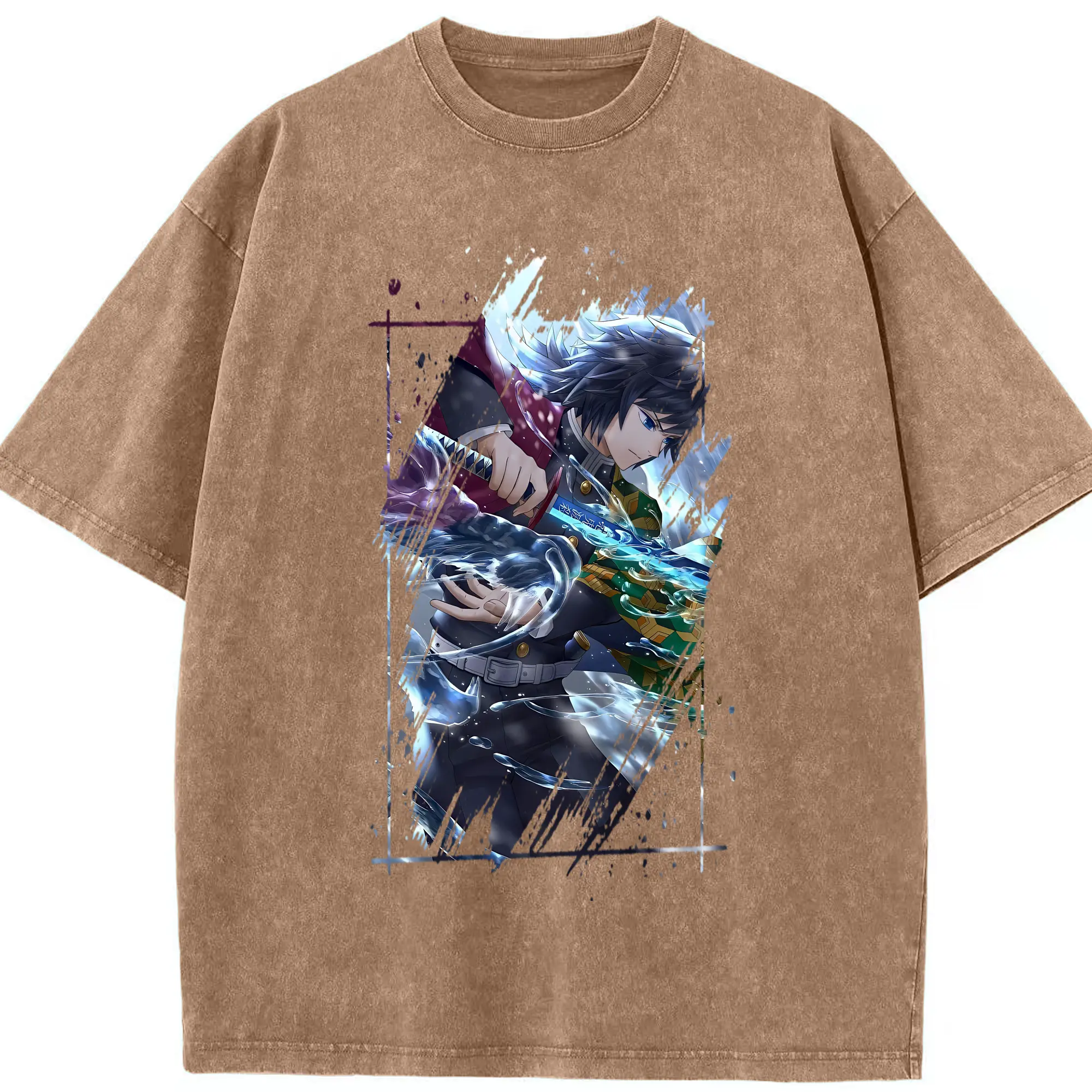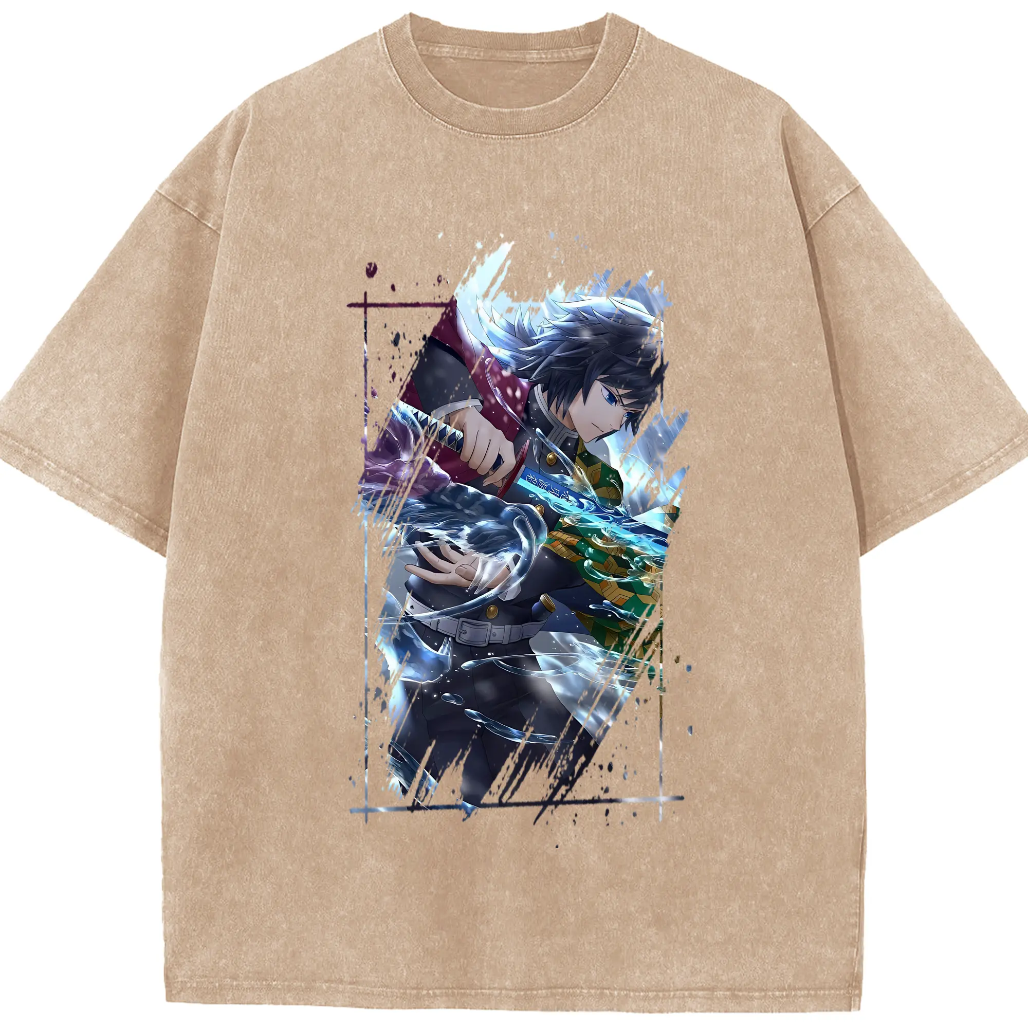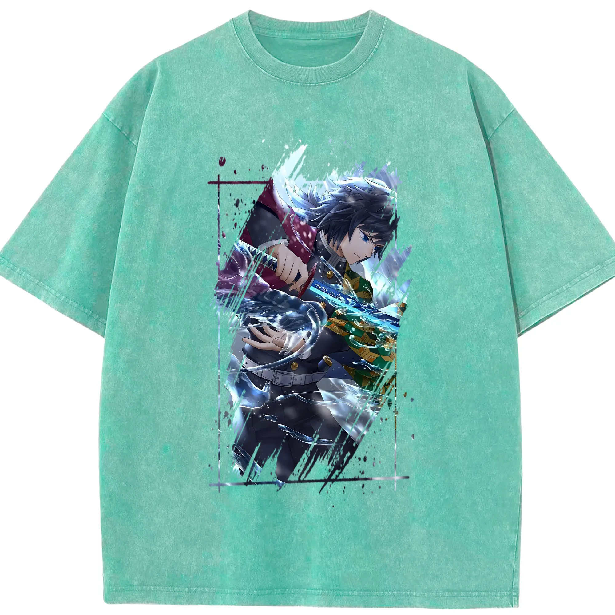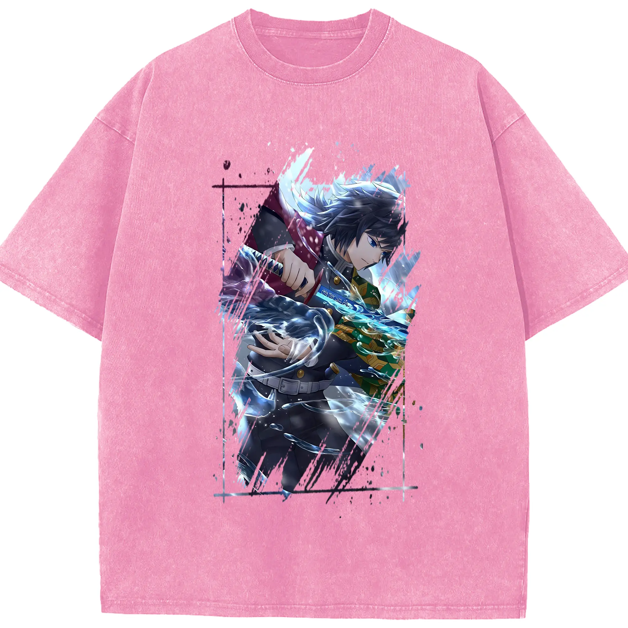 鬼滅の刃 グッズ,冨岡 義勇 - 綿100% 半袖Tシャツ ・ フロントプリント ・ 快適 通気性 ・ 日常使い 散歩 スポーツ用