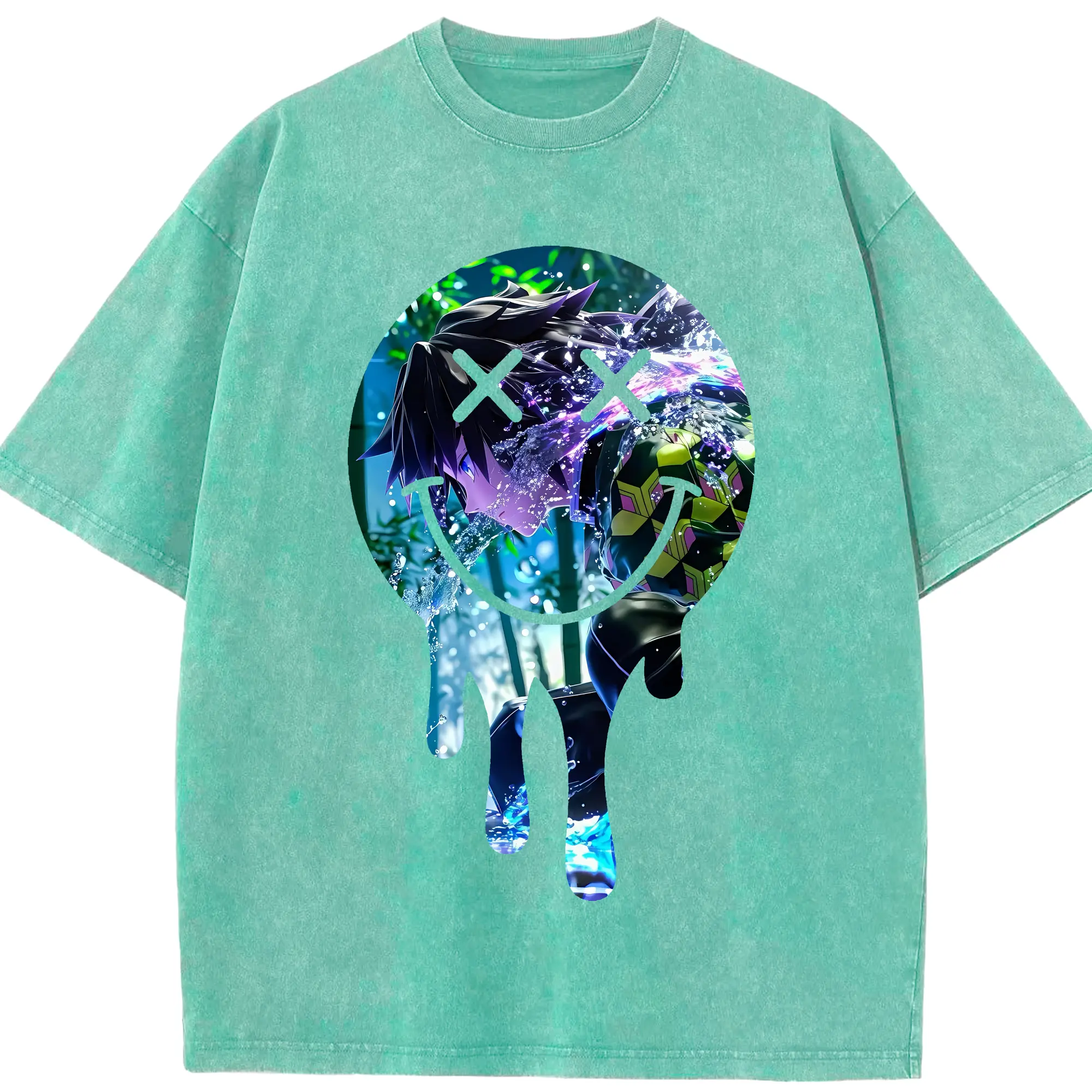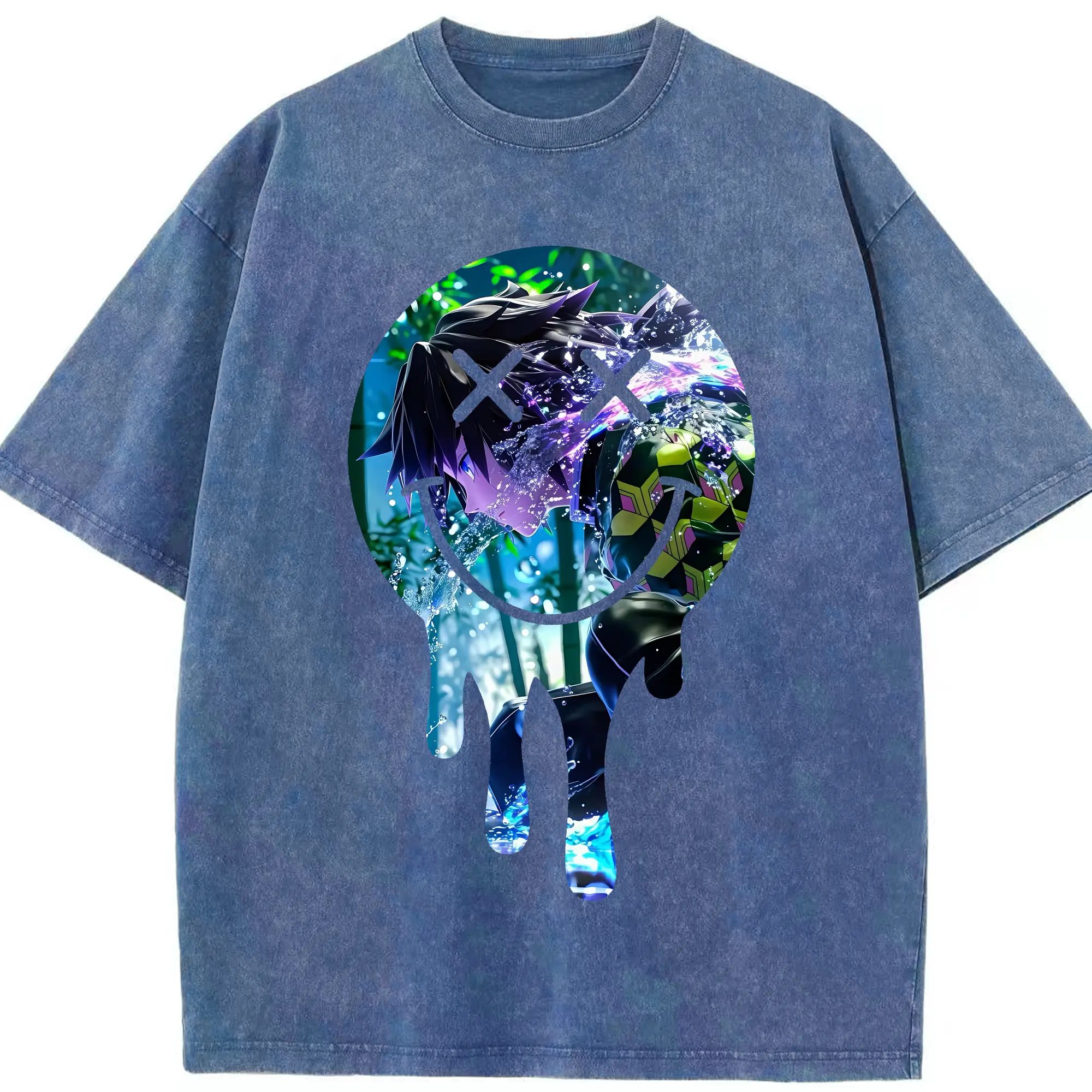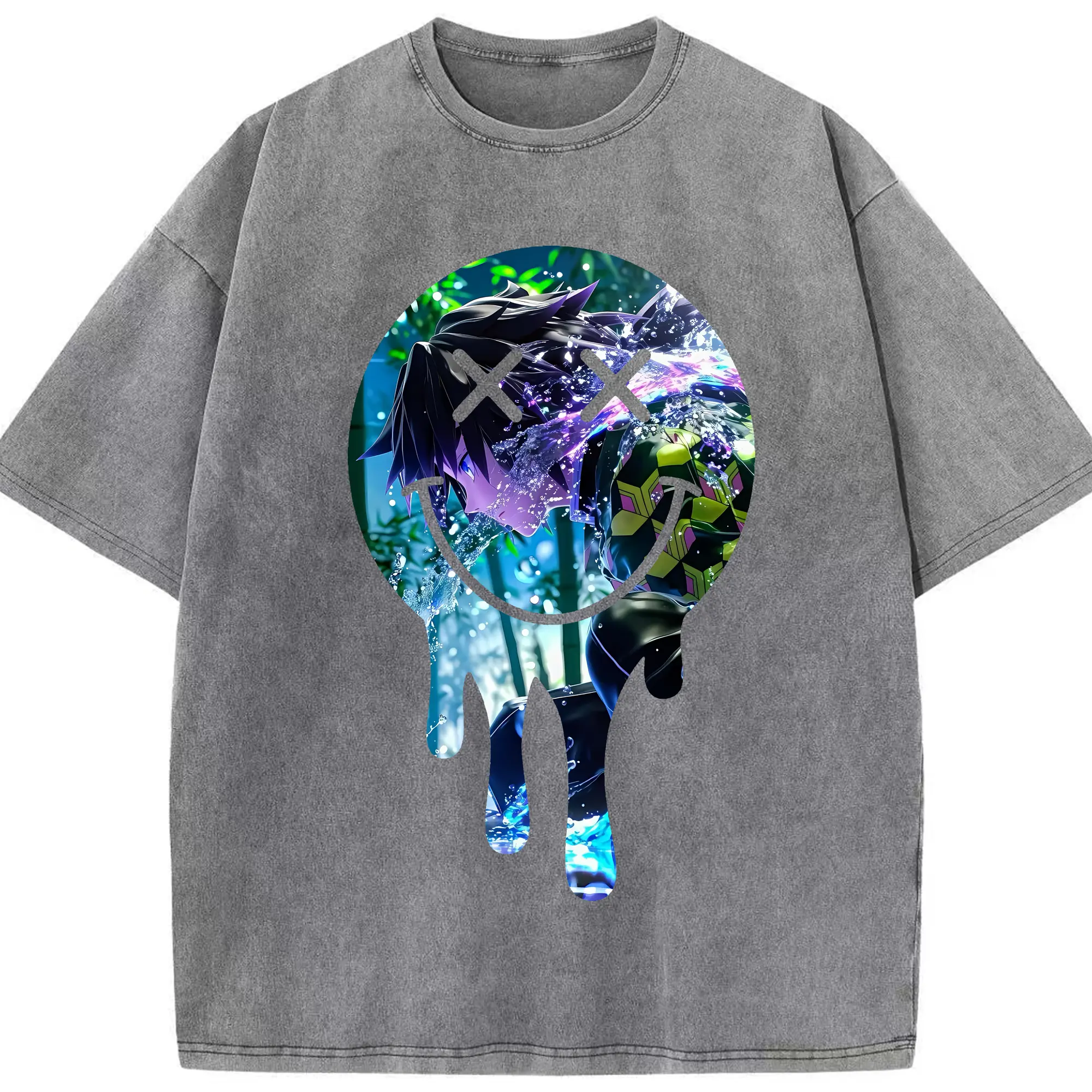 鬼滅の刃 グッズ,冨岡 義勇 - 綿100% 半袖Tシャツ ・ フロントプリント ・ 快適 通気性 ・ 日常使い 散歩 スポーツ用