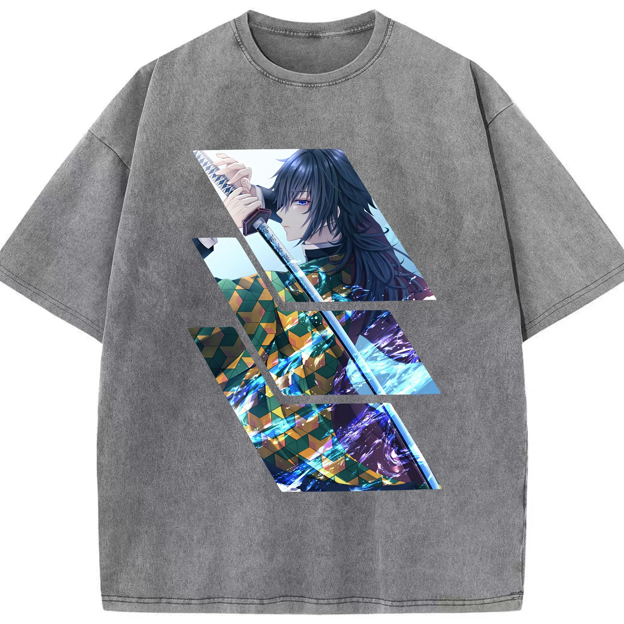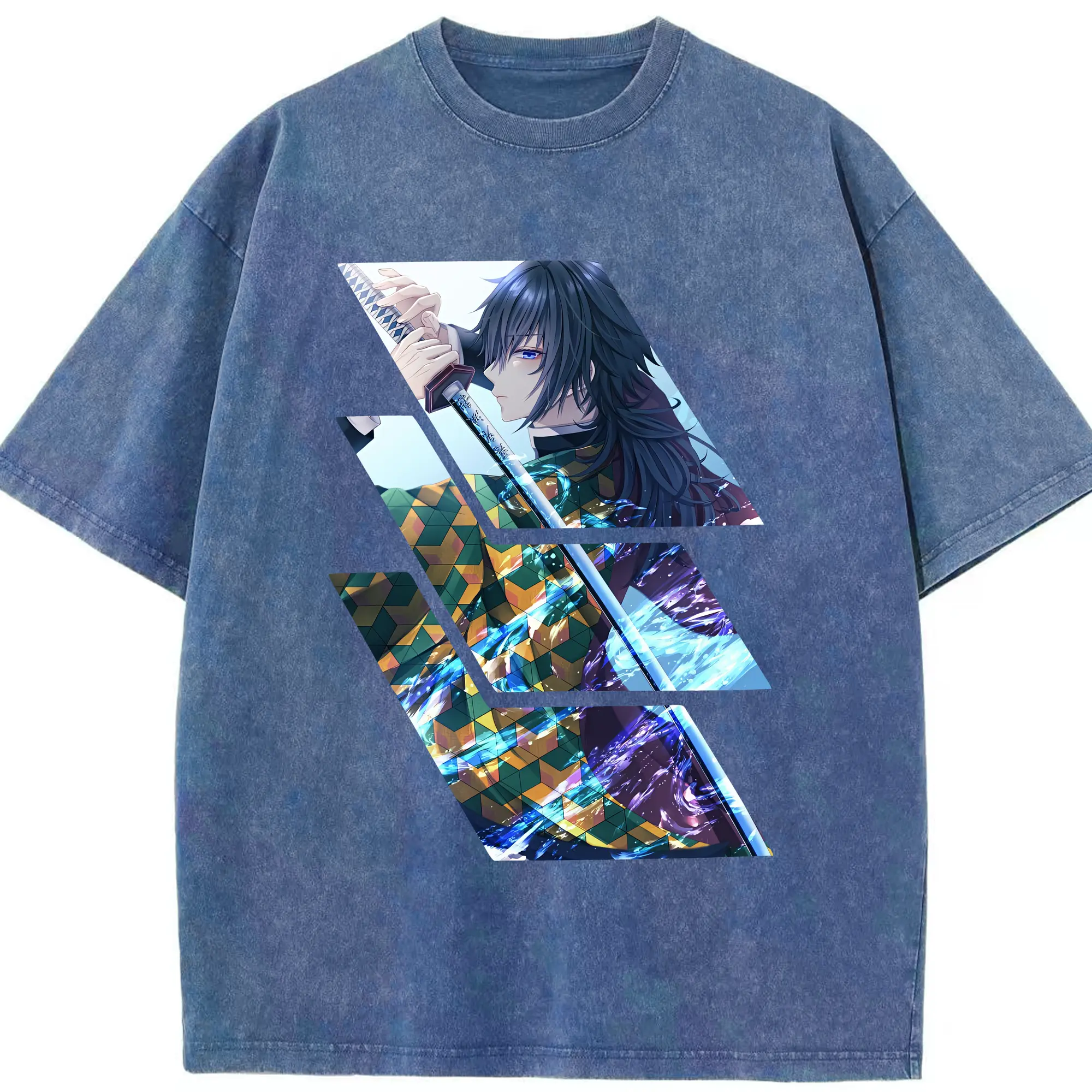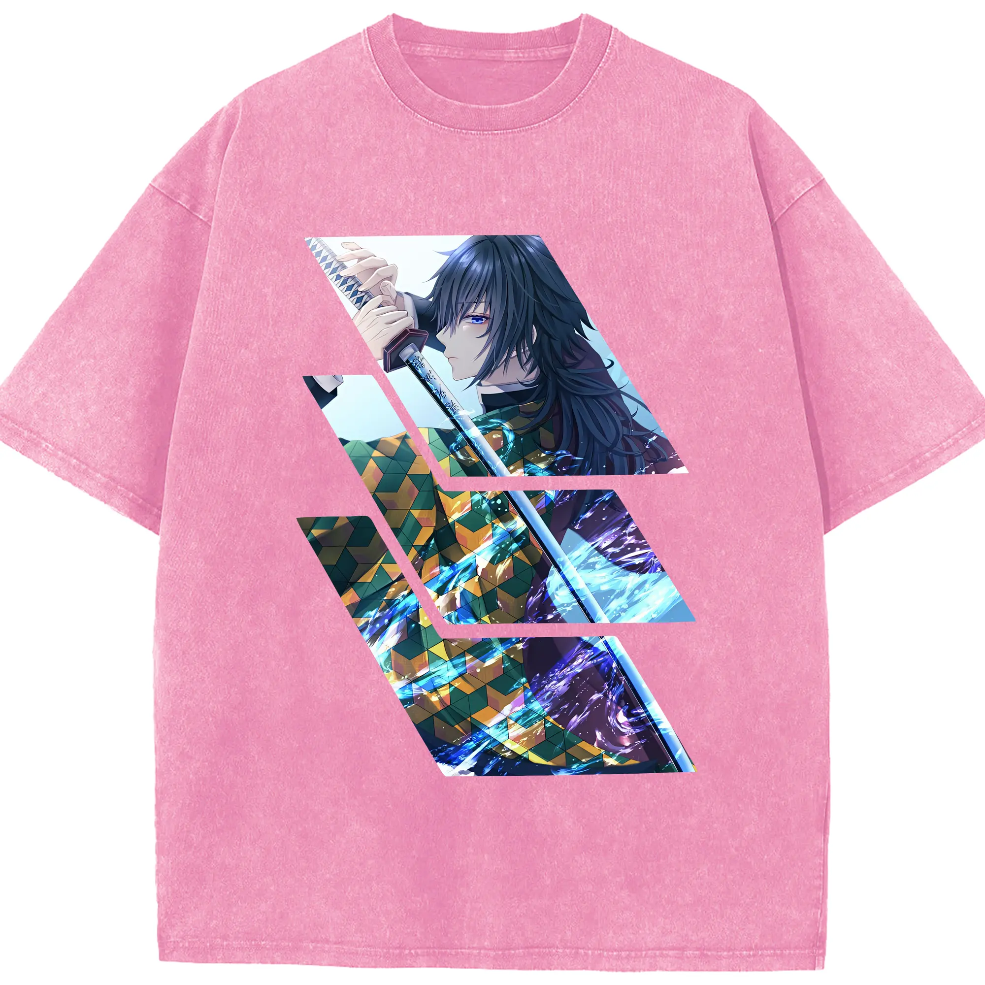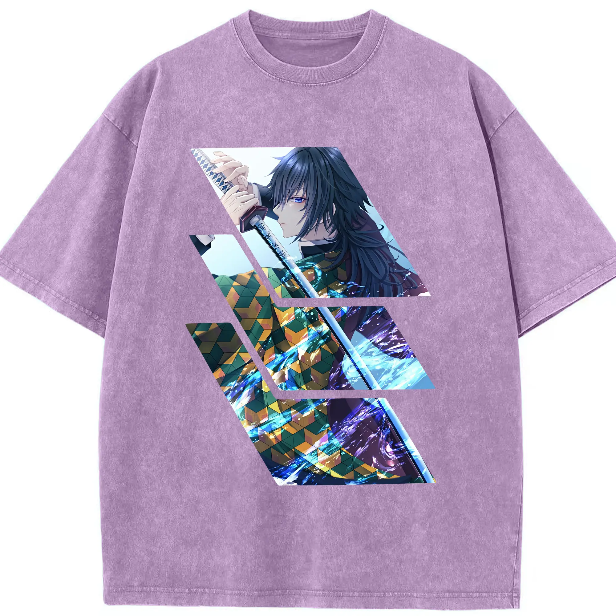 鬼滅の刃 グッズ,冨岡 義勇 - 綿100% 半袖Tシャツ ・ フロントプリント ・ 快適 通気性 ・ 日常使い 散歩 スポーツ用