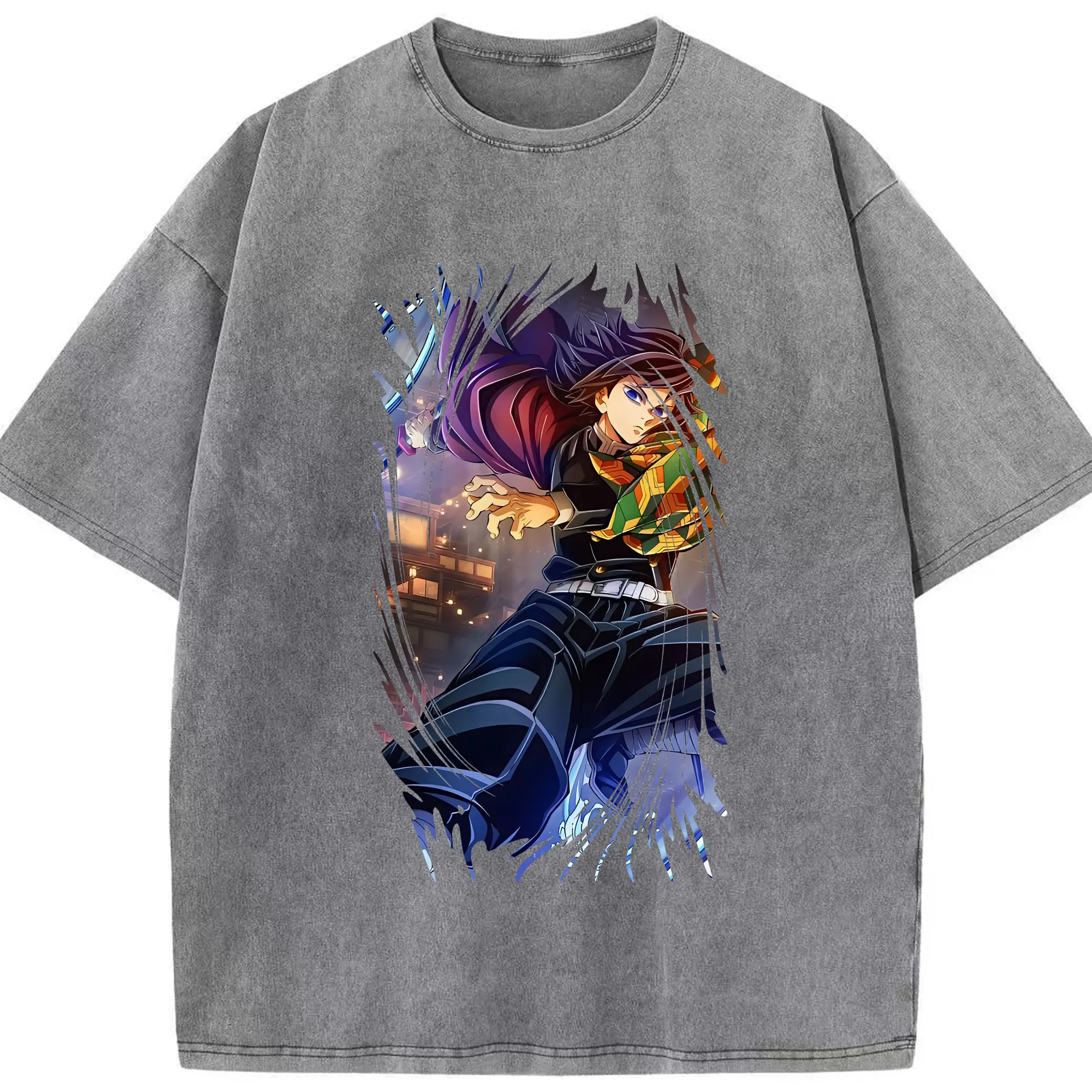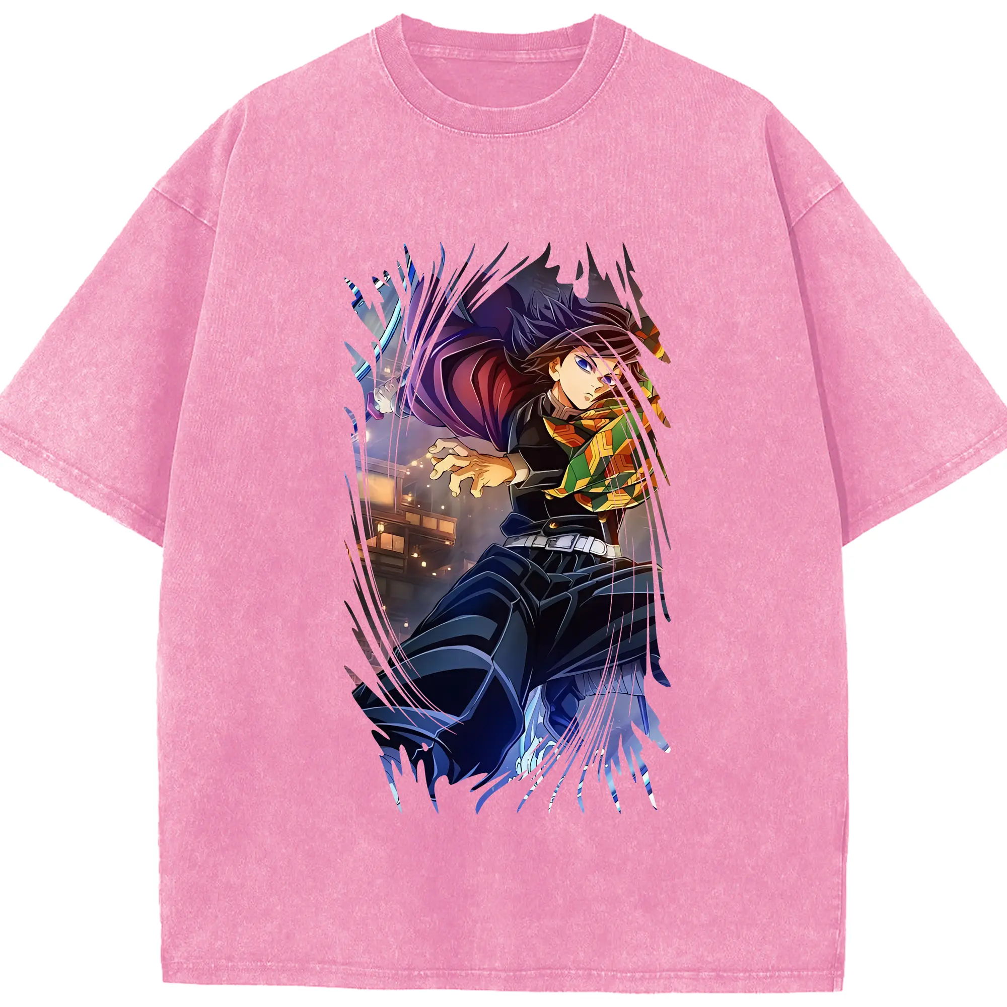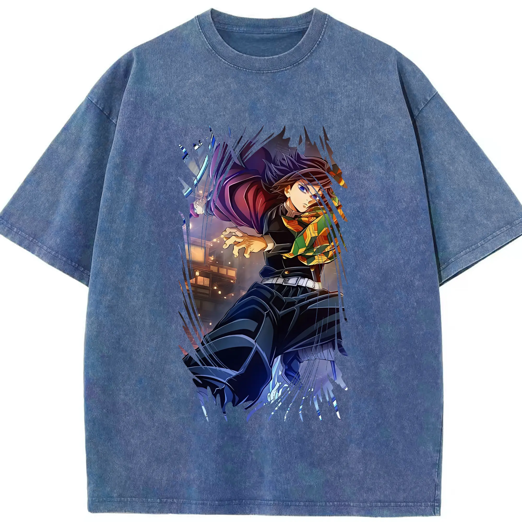 鬼滅の刃 グッズ,冨岡 義勇 - 綿100% 半袖Tシャツ ・ フロントプリント ・ 快適 通気性 ・ 日常使い 散歩 スポーツ用