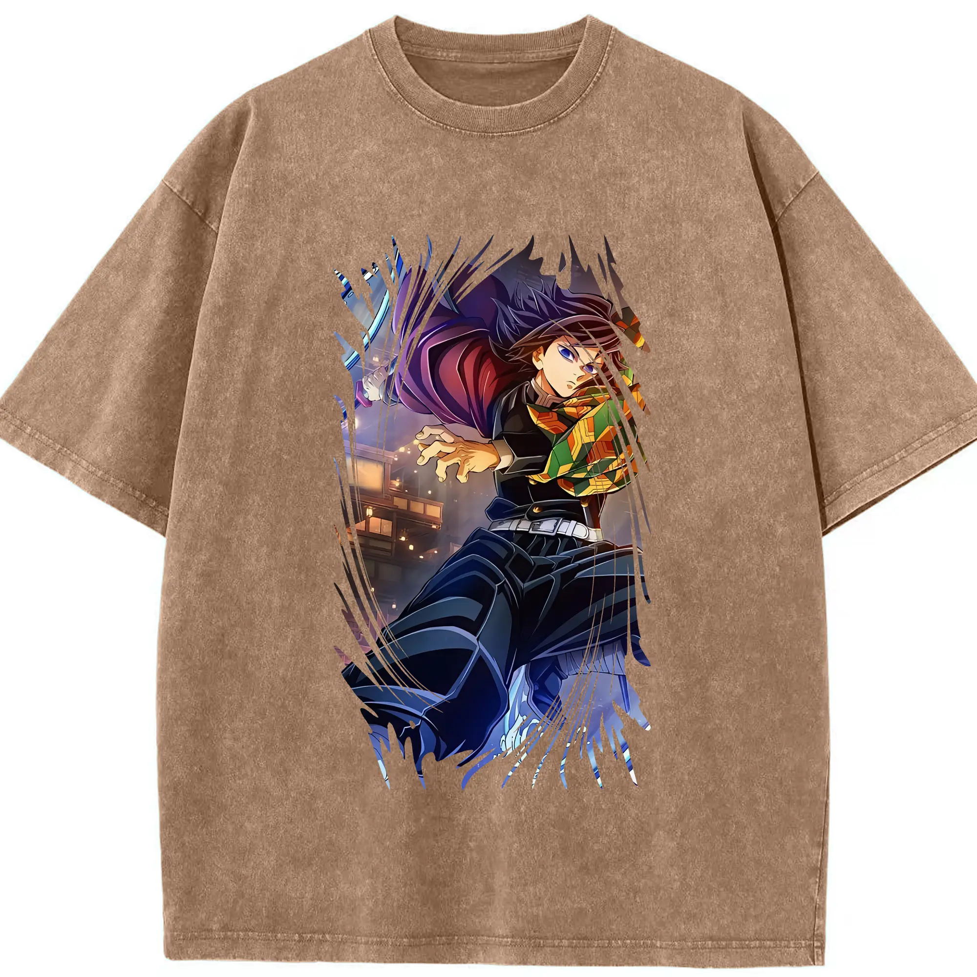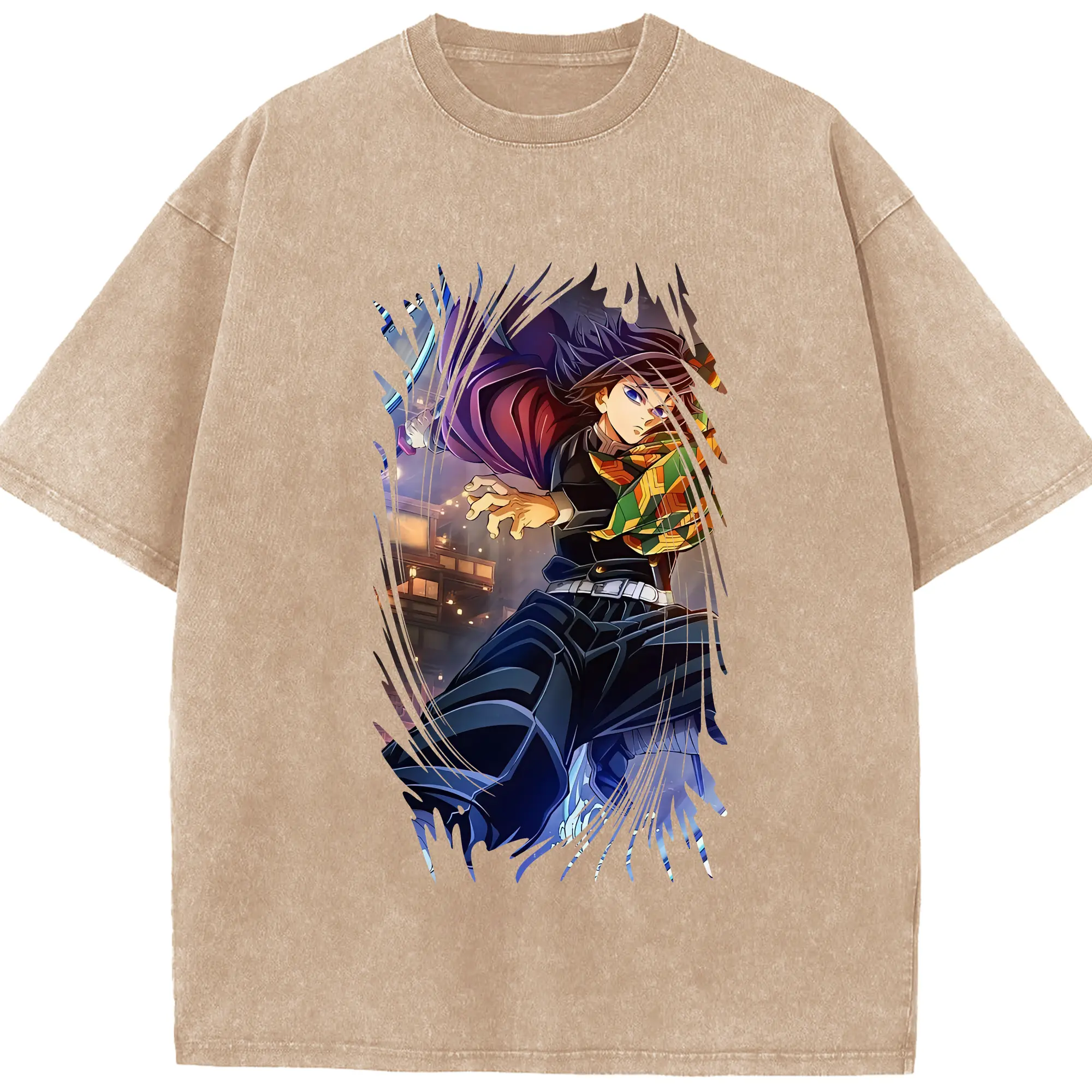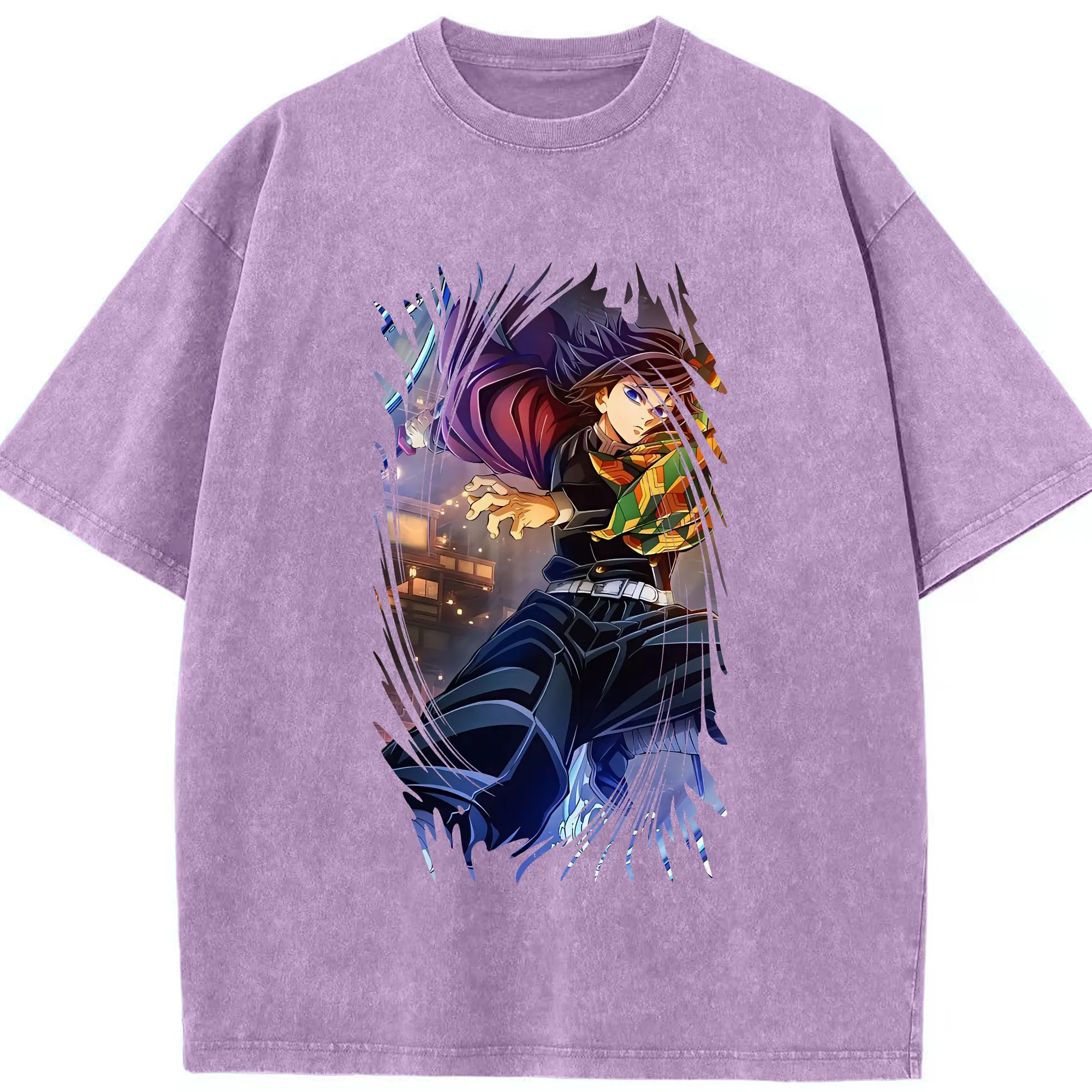 鬼滅の刃 グッズ,冨岡 義勇 - 綿100% 半袖Tシャツ ・ フロントプリント ・ 快適 通気性 ・ 日常使い 散歩 スポーツ用