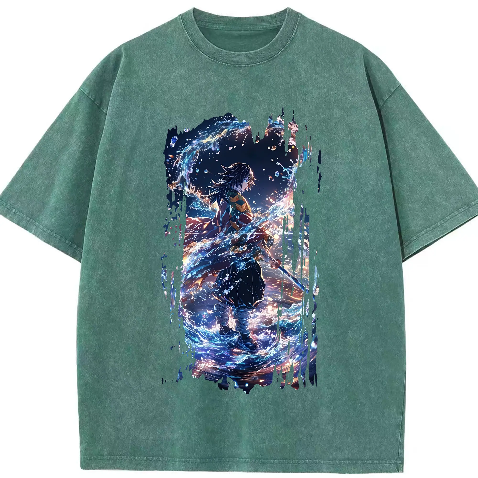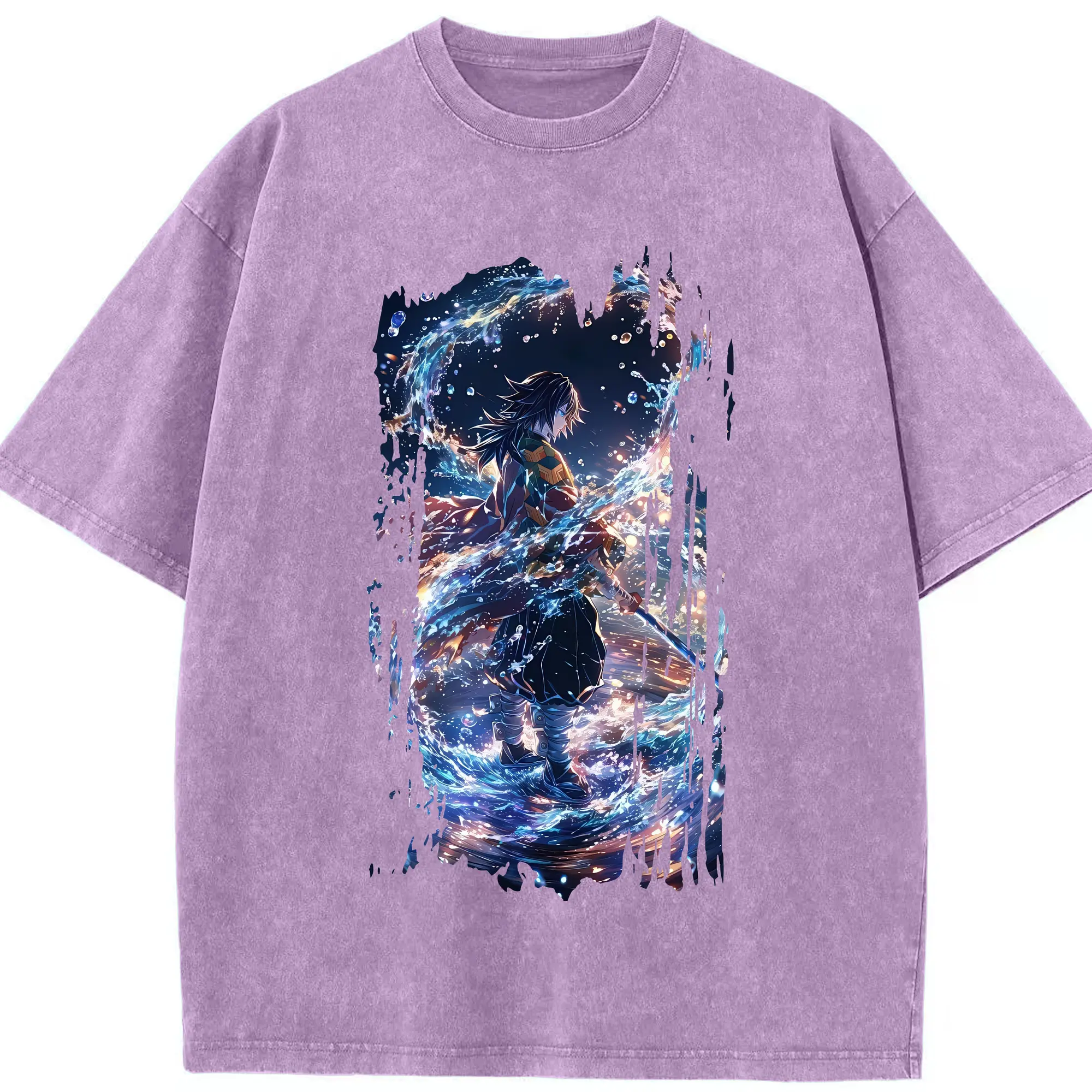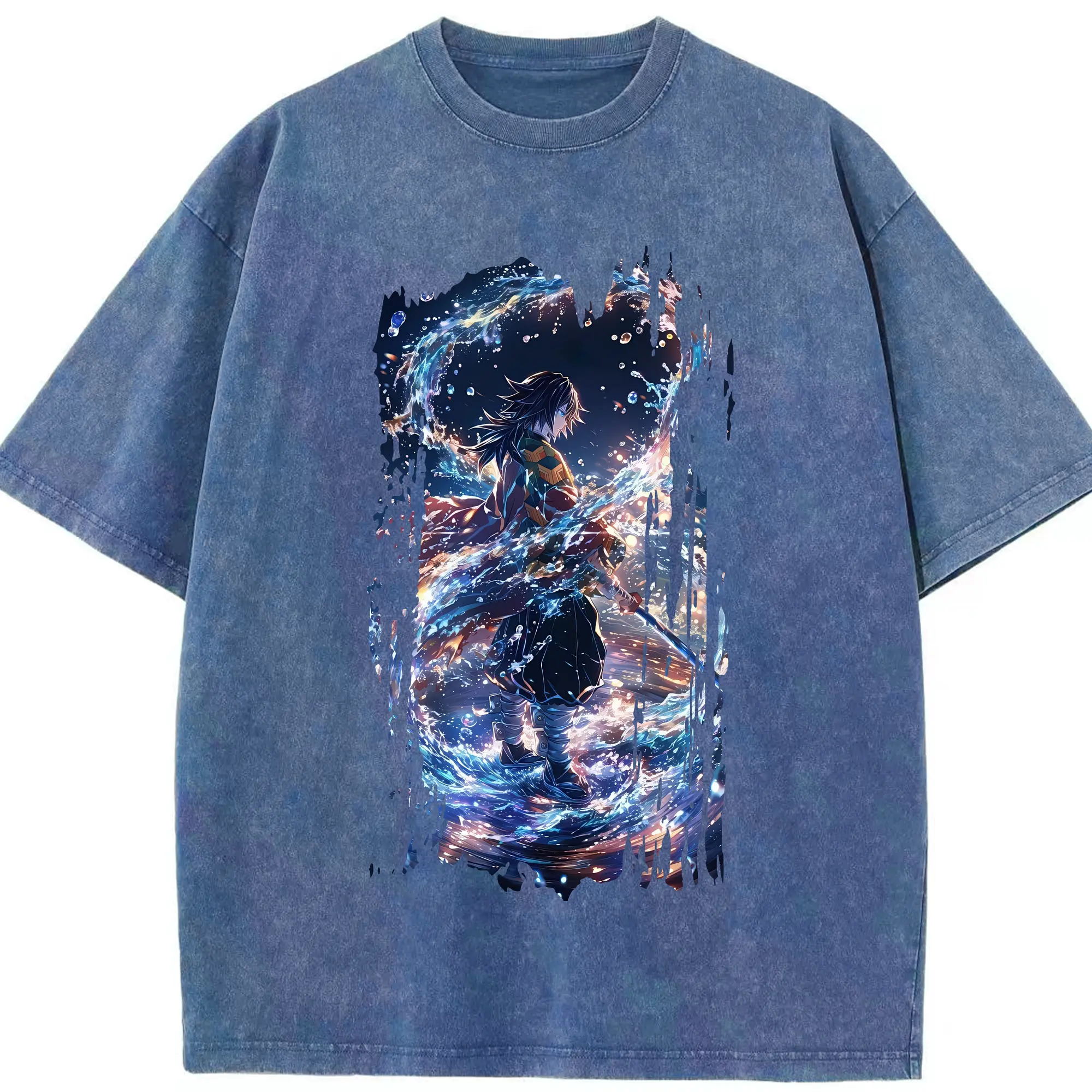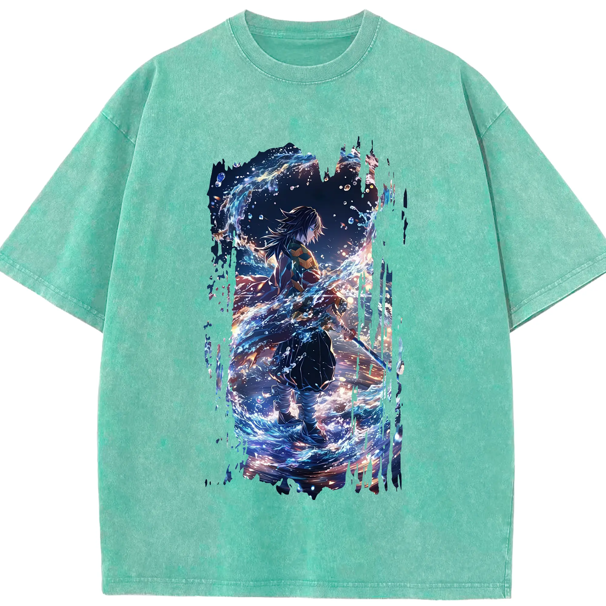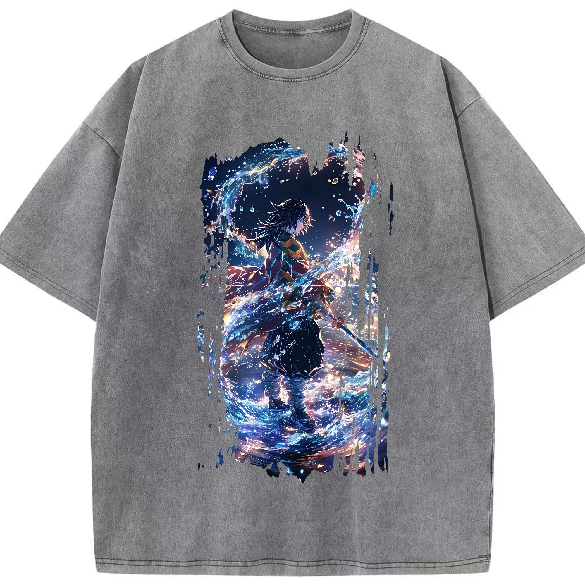 鬼滅の刃 グッズ,冨岡 義勇 - 綿100% 半袖Tシャツ ・ フロントプリント ・ 快適 通気性 ・ 日常使い 散歩 スポーツ用