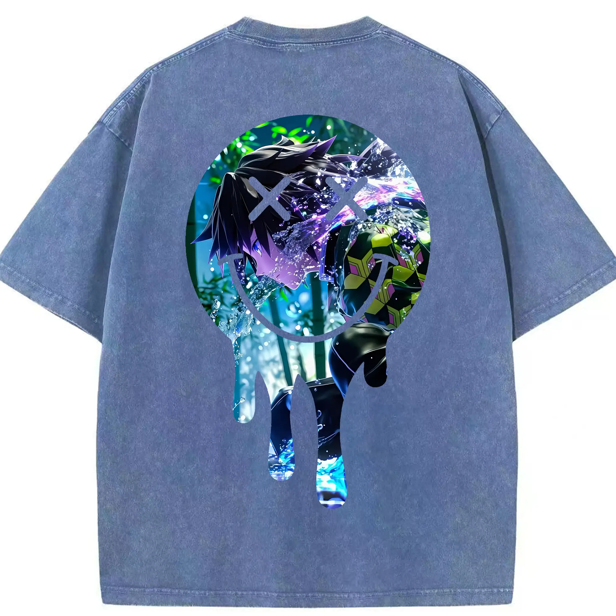 鬼滅の刃 グッズ,冨岡 義勇 - 綿100% 半袖Tシャツ ・ フロントプリント ・ 快適 通気性 ・ 日常使い 散歩 スポーツ用