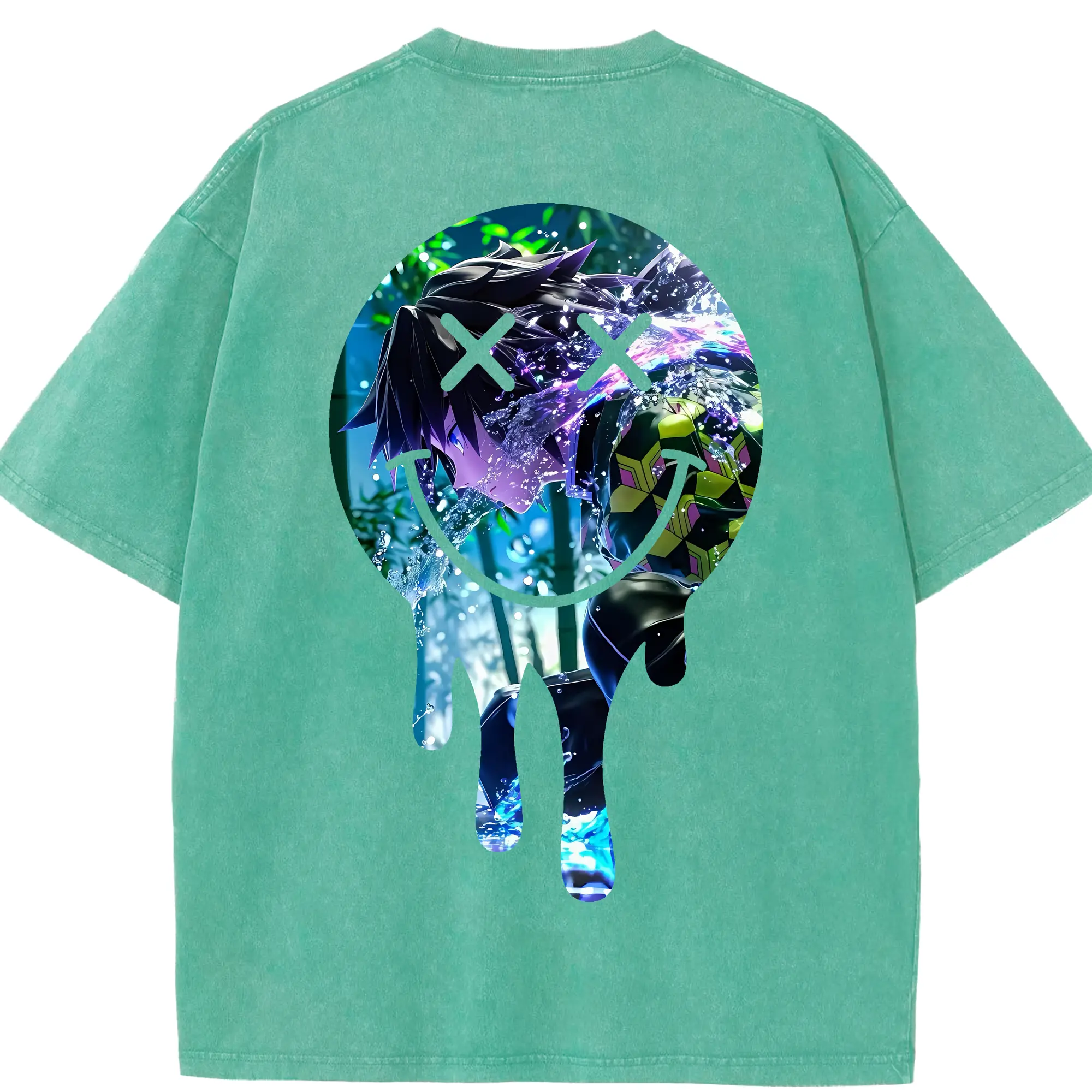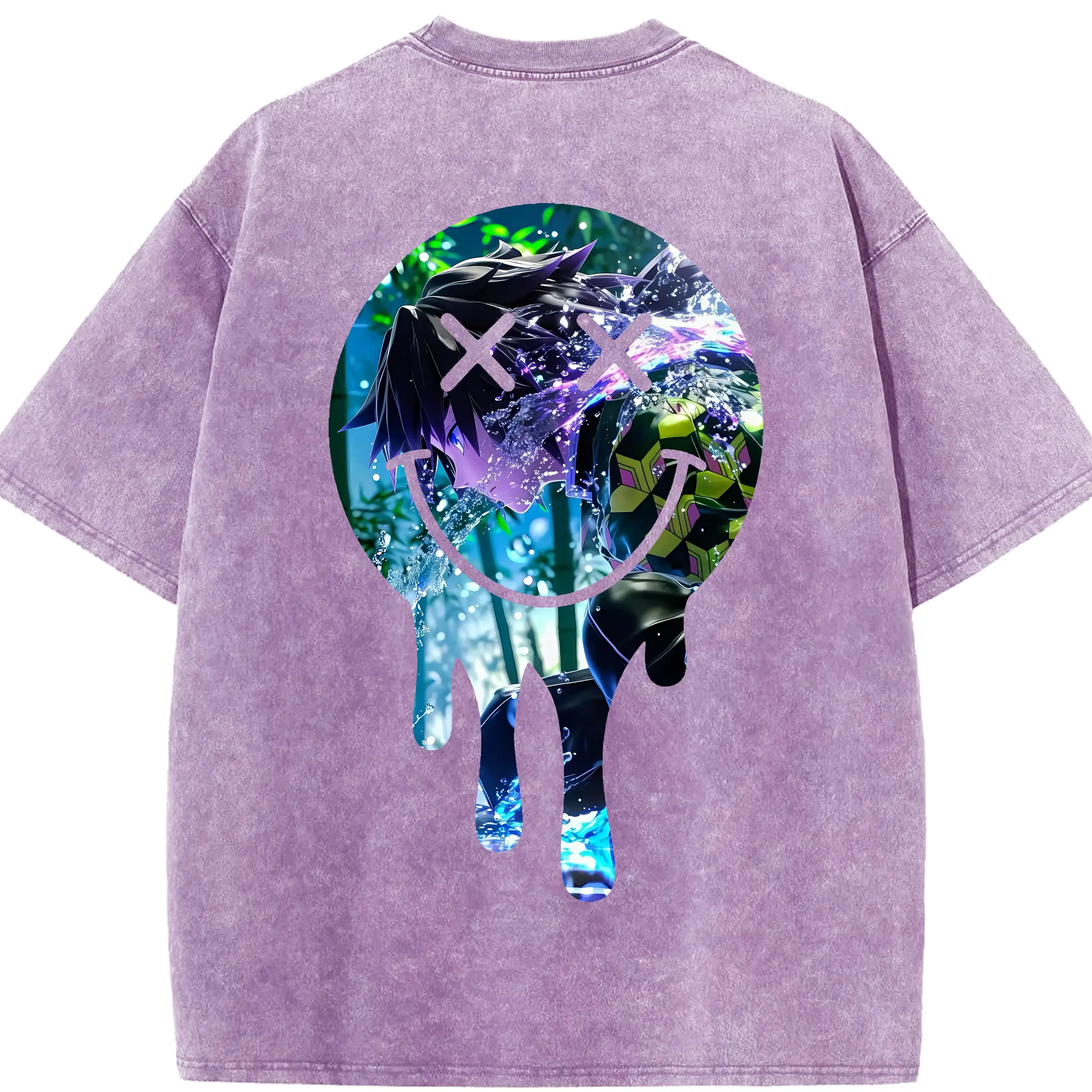 鬼滅の刃 グッズ,冨岡 義勇 - 綿100% 半袖Tシャツ ・ バックプリント ・ 快適 通気性 ・ 日常使い 散歩 スポーツ用