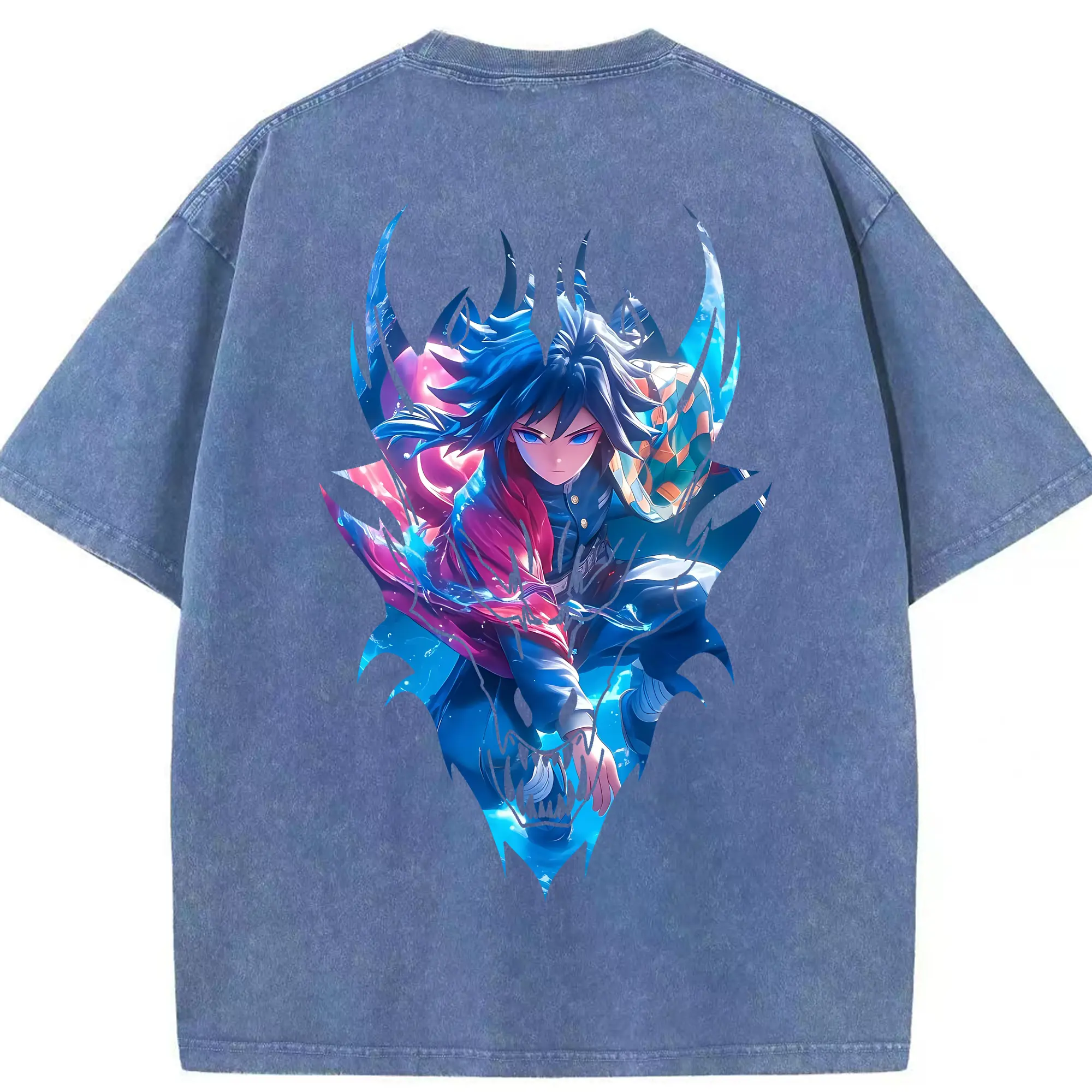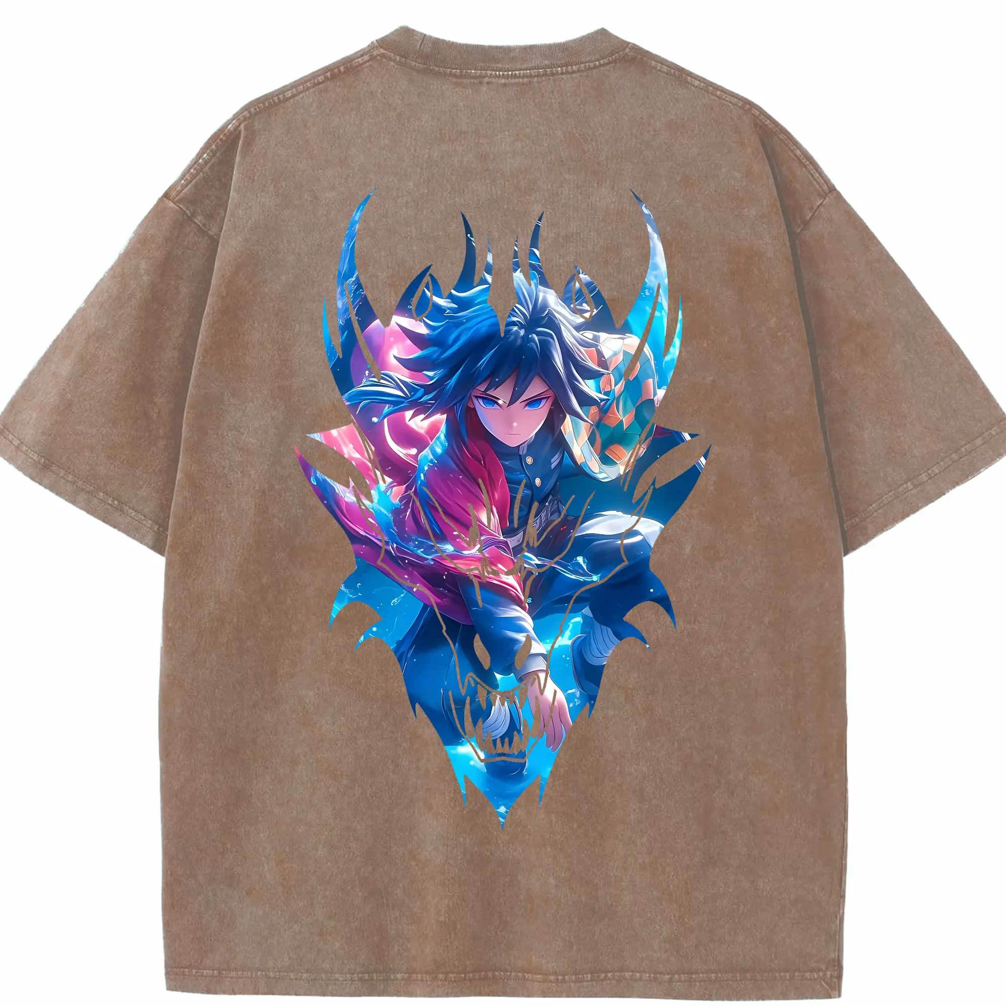 鬼滅の刃 グッズ,冨岡 義勇 - 綿100% 半袖Tシャツ ・ フロントプリント ・ 快適 通気性 ・ 日常使い 散歩 スポーツ用