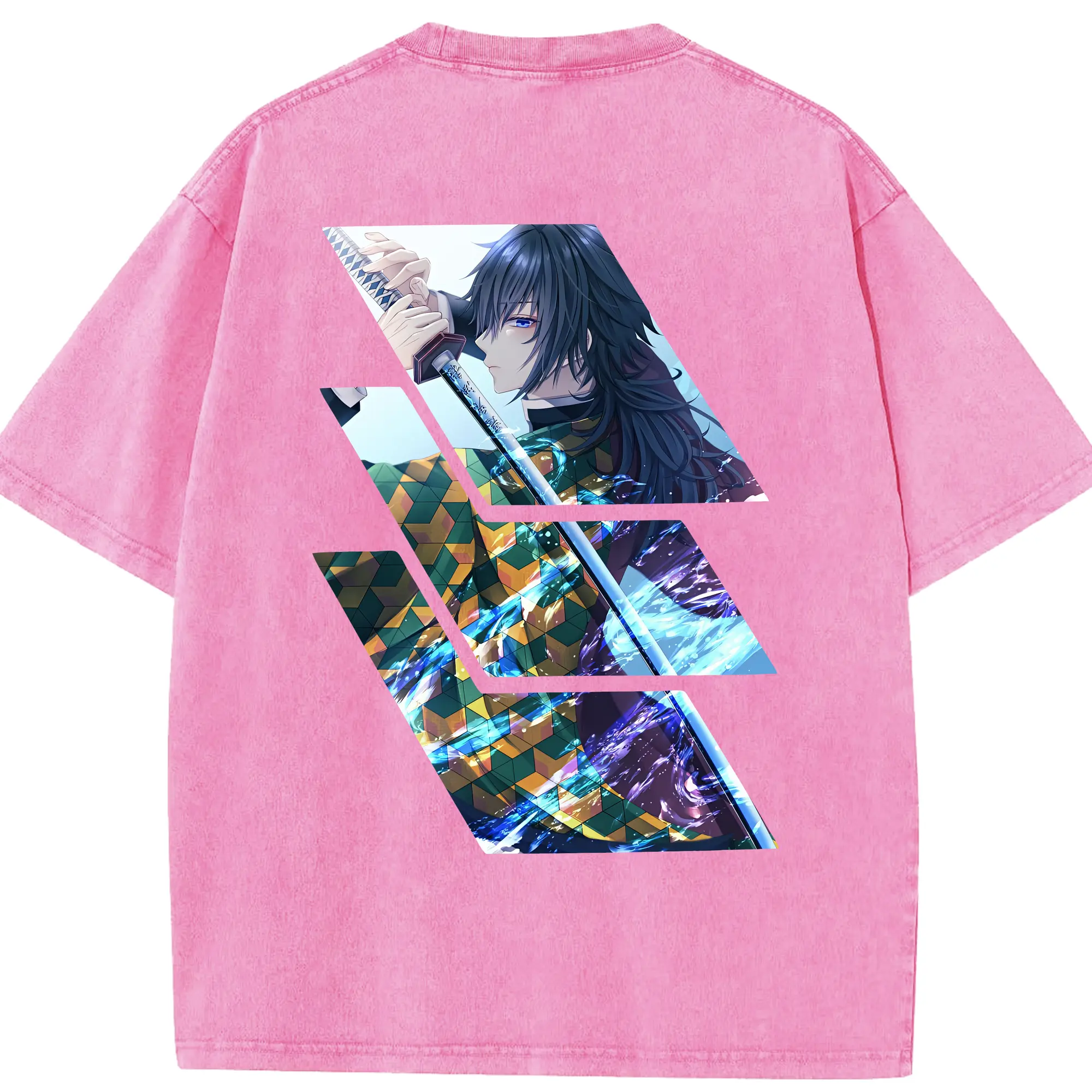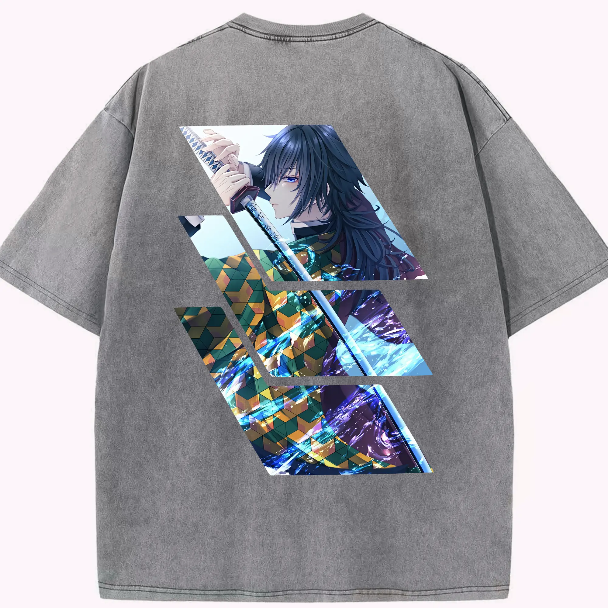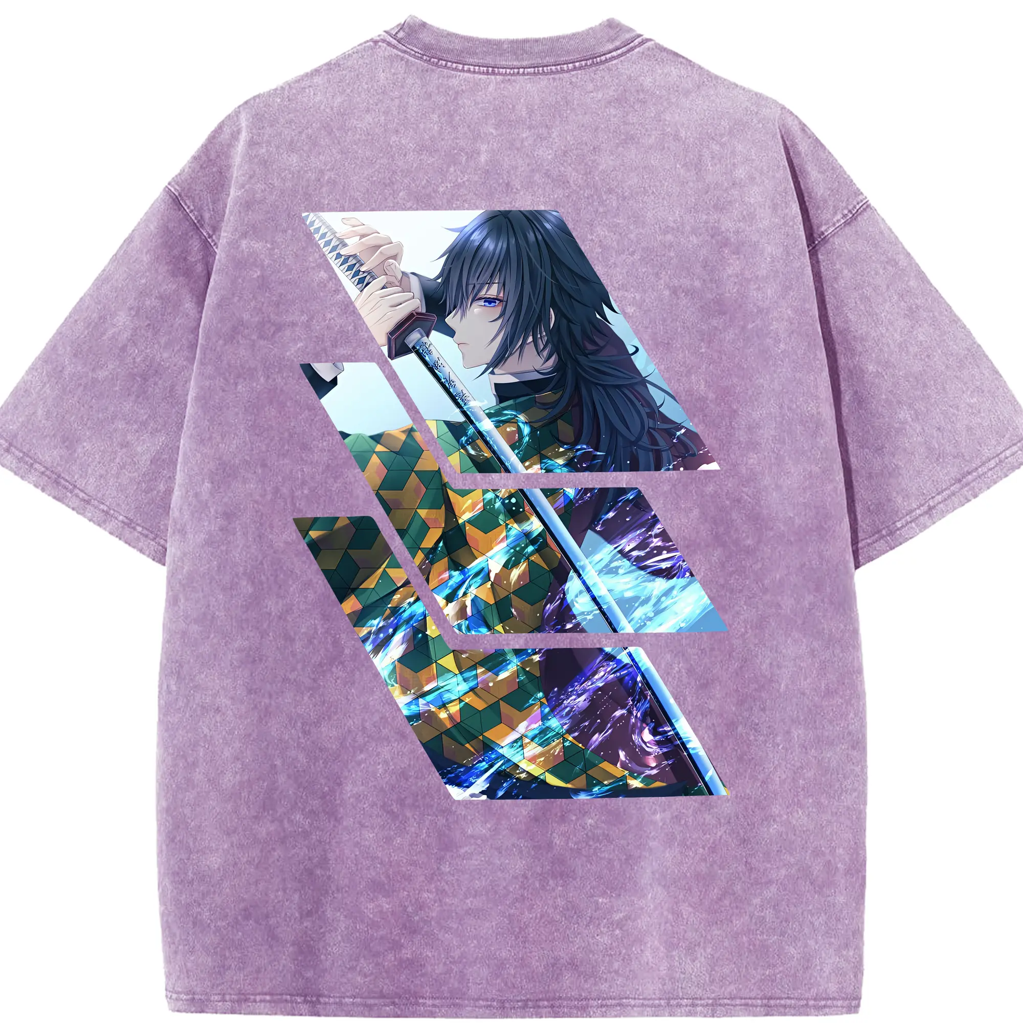 鬼滅の刃 グッズ,冨岡 義勇 - 綿100% 半袖Tシャツ ・ バックプリント ・ 快適 通気性 ・ 日常使い 散歩 スポーツ用