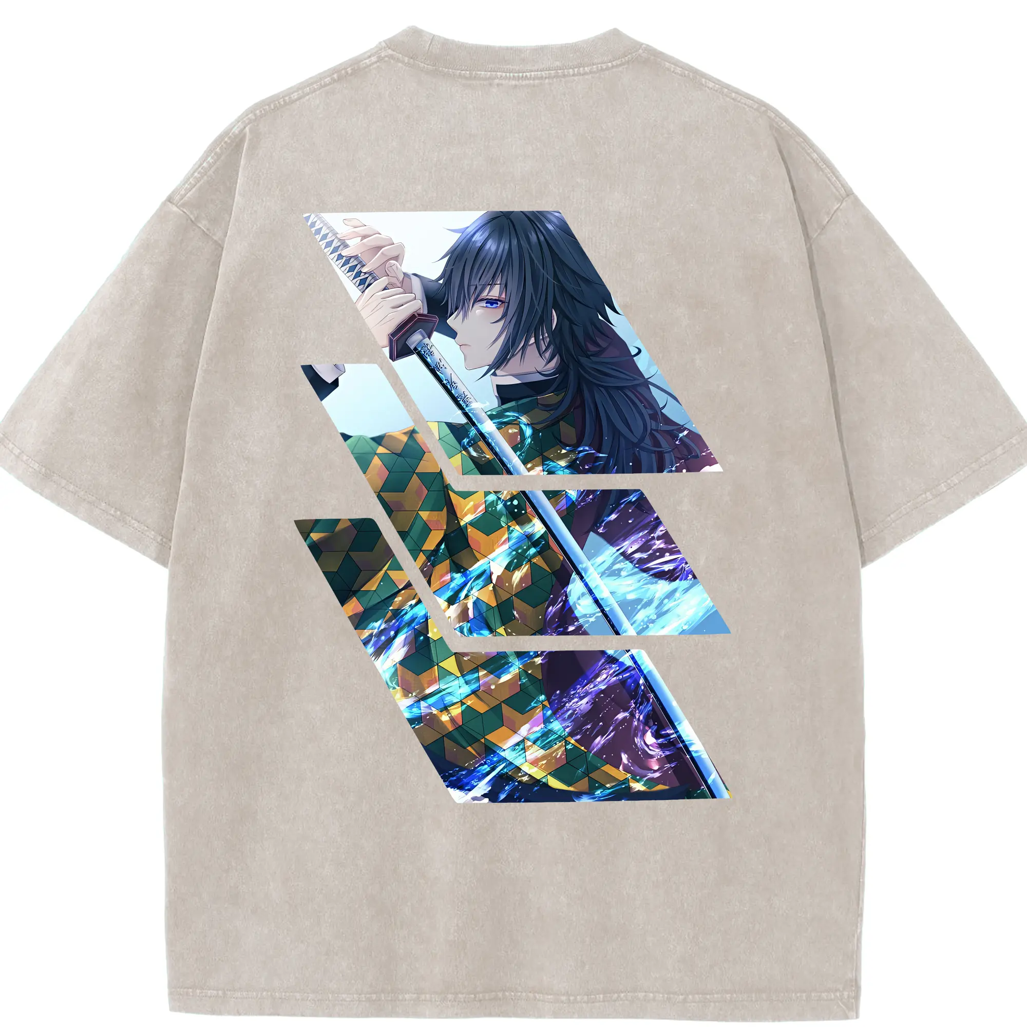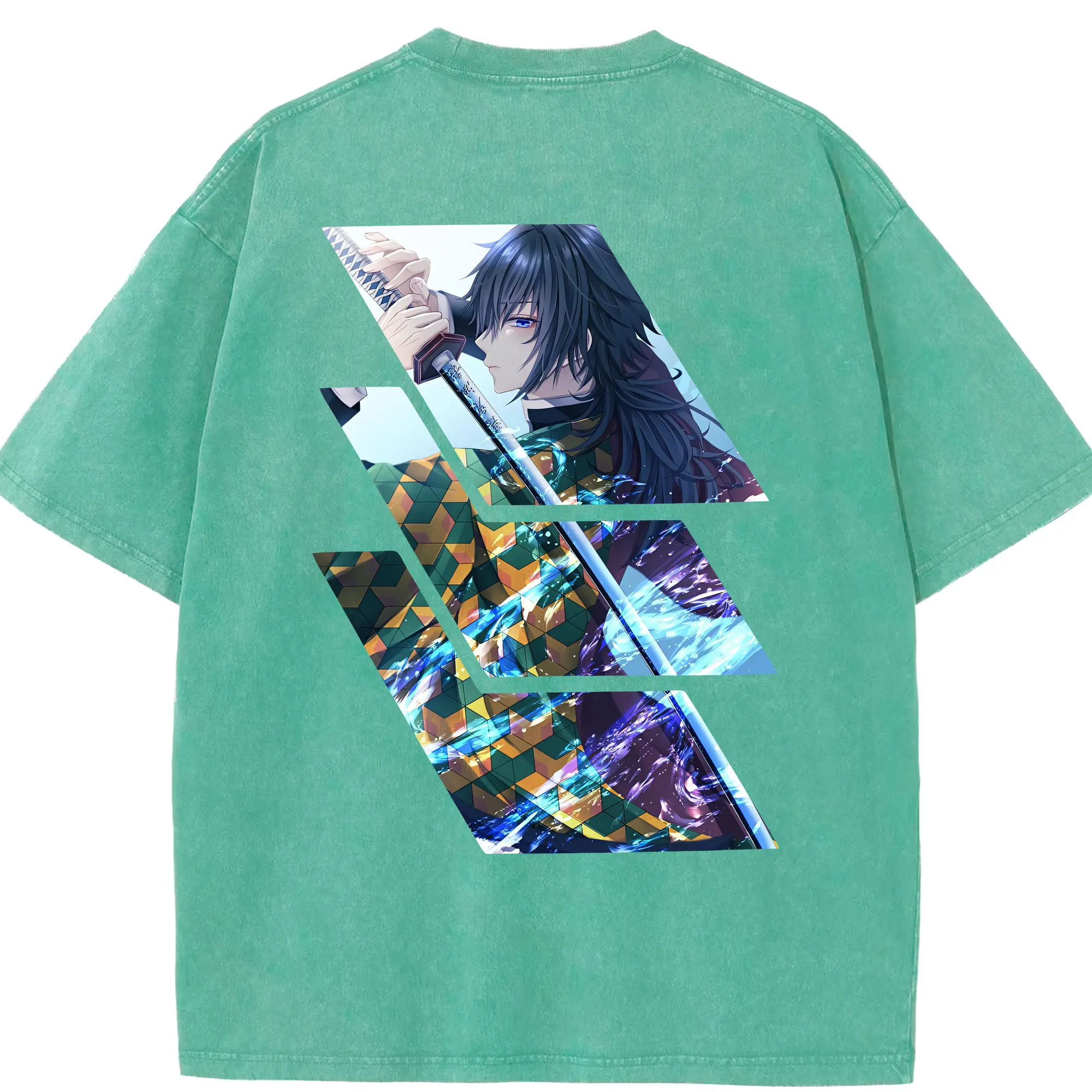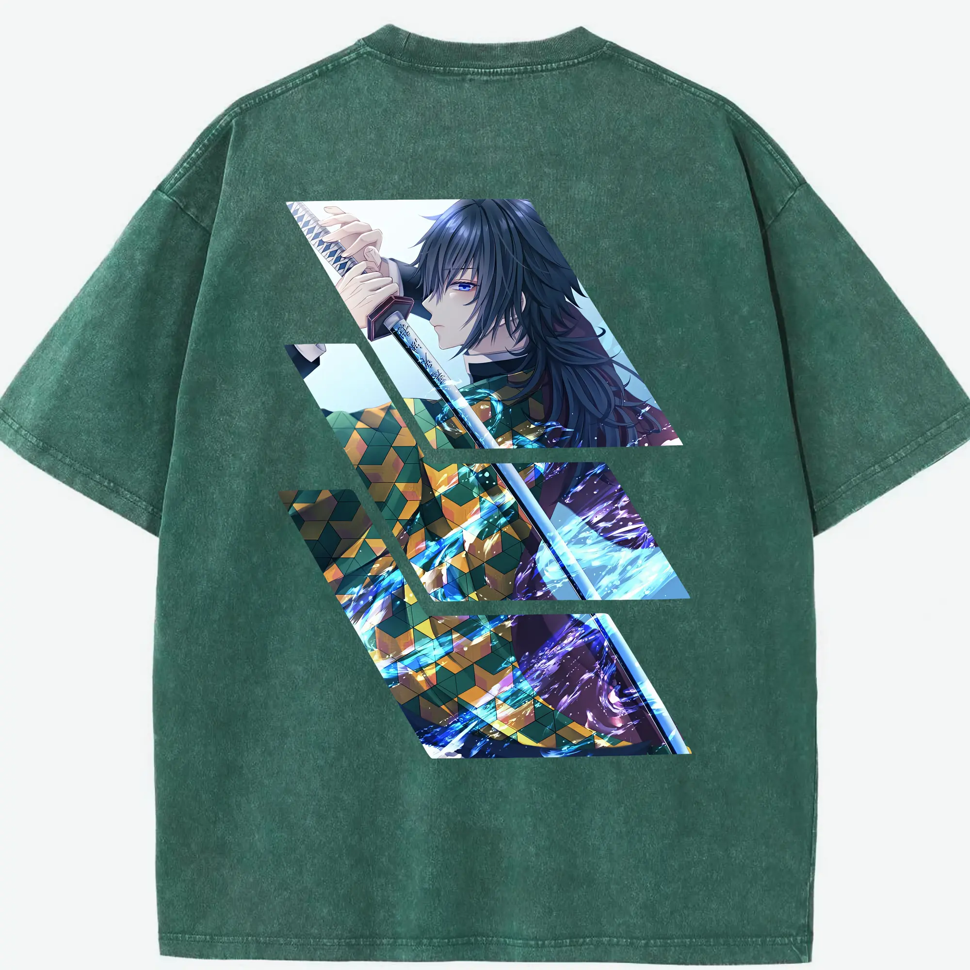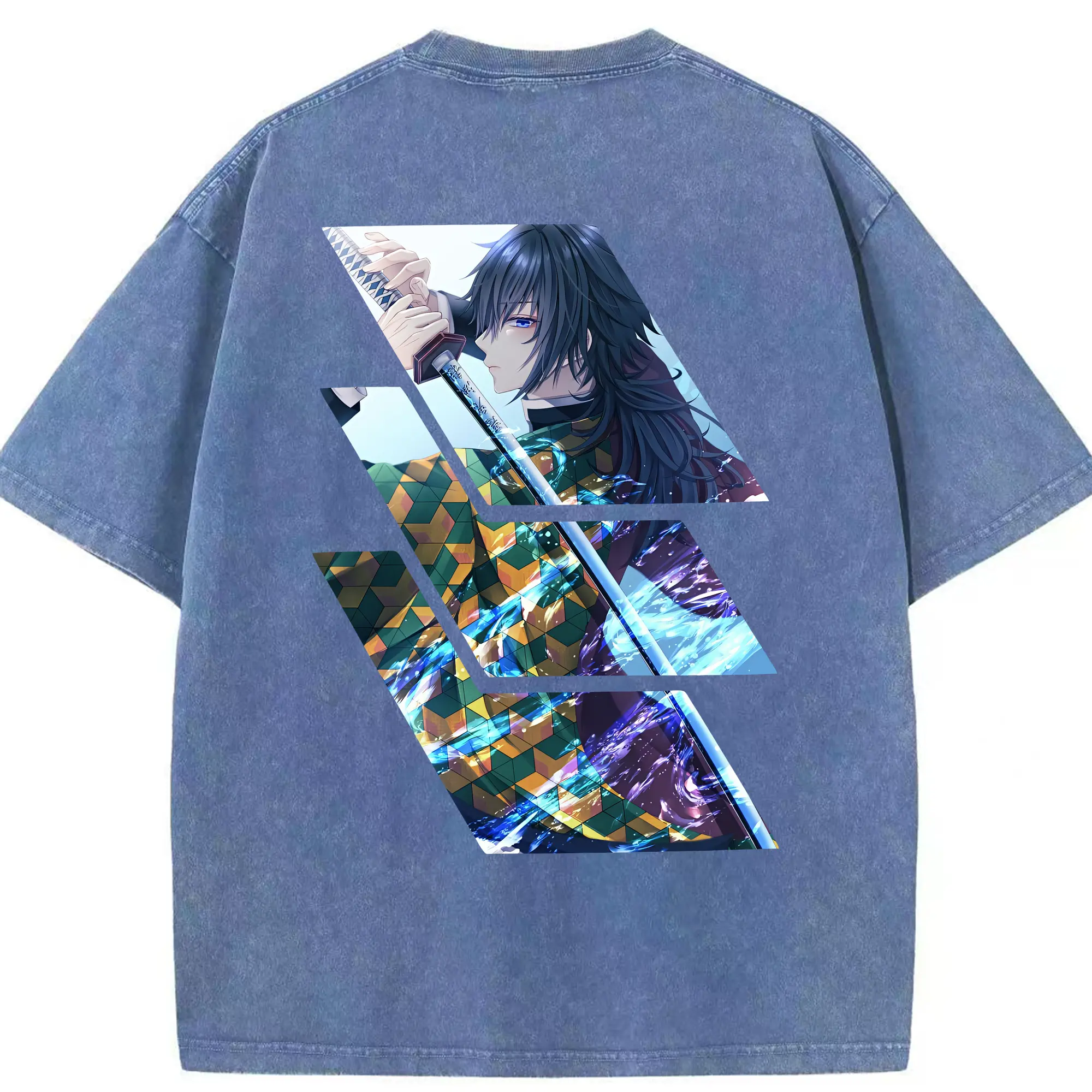 鬼滅の刃 グッズ,冨岡 義勇 - 綿100% 半袖Tシャツ ・ バックプリント ・ 快適 通気性 ・ 日常使い 散歩 スポーツ用