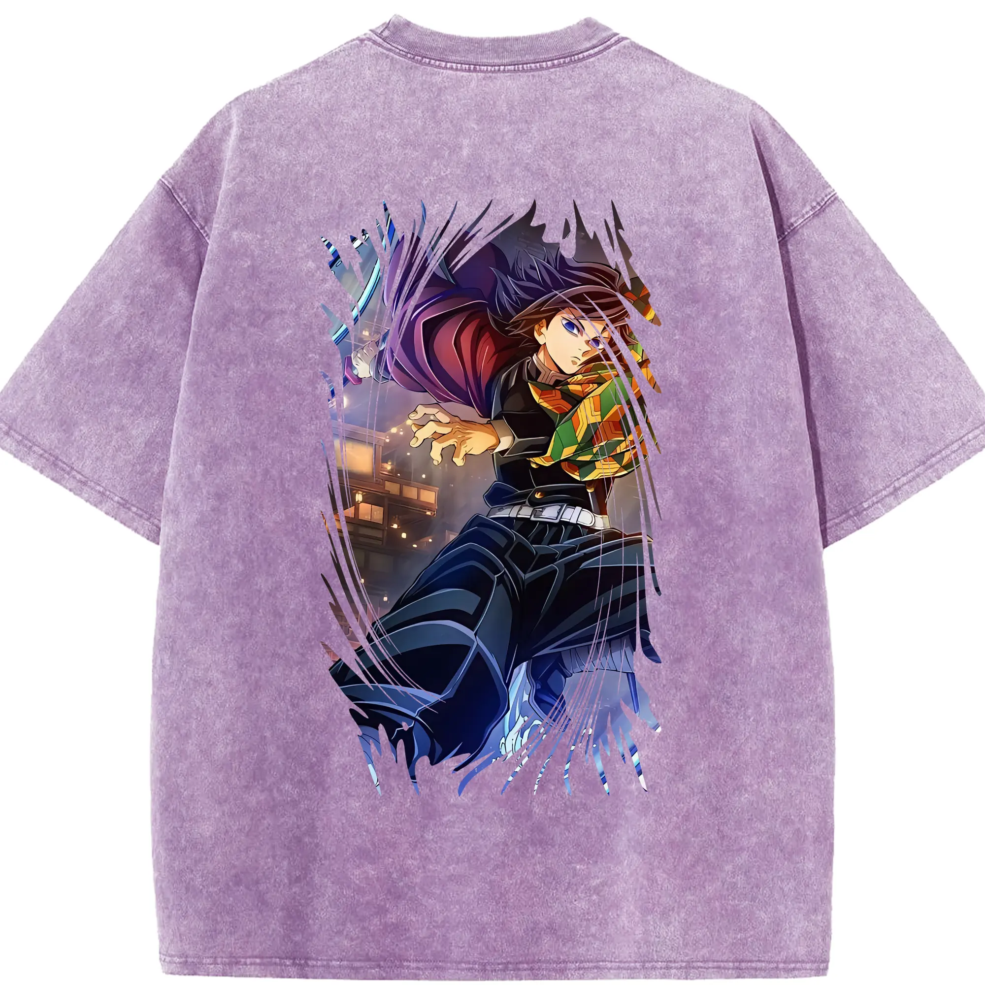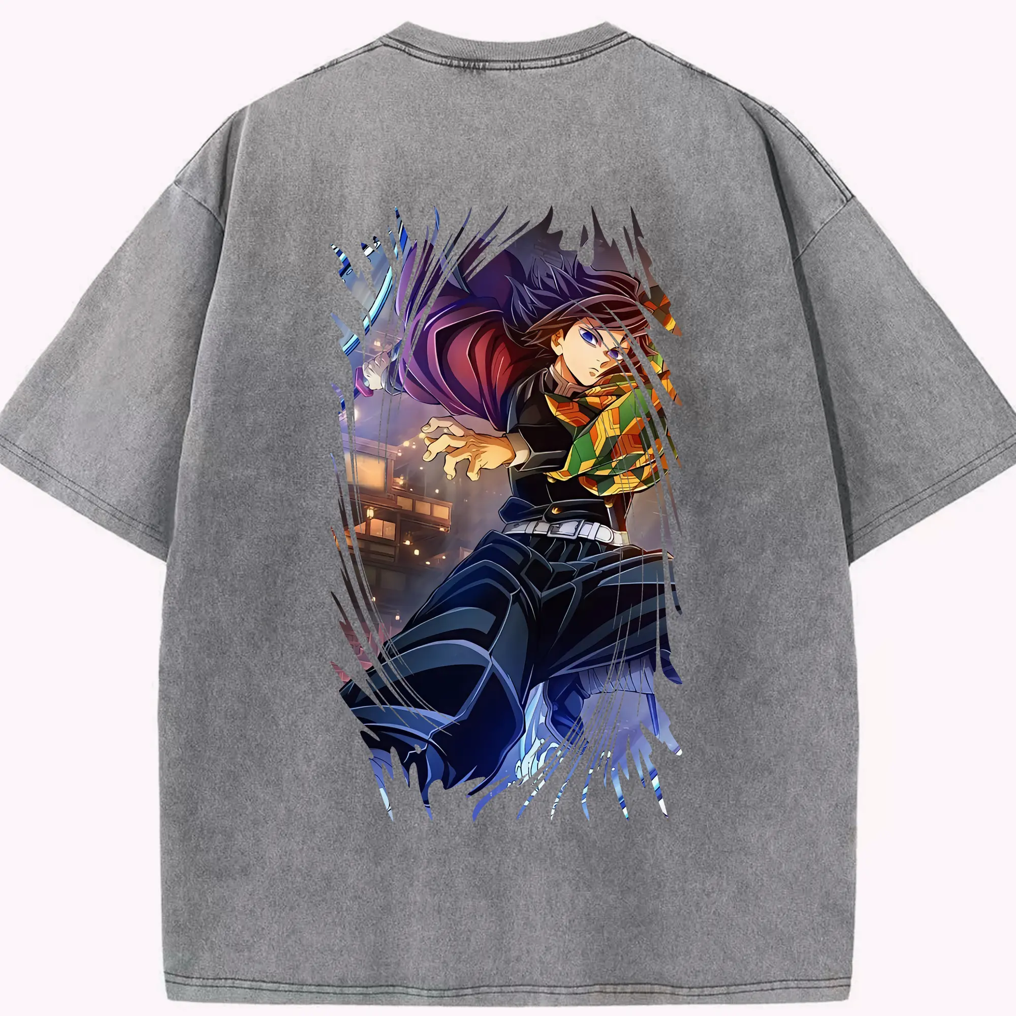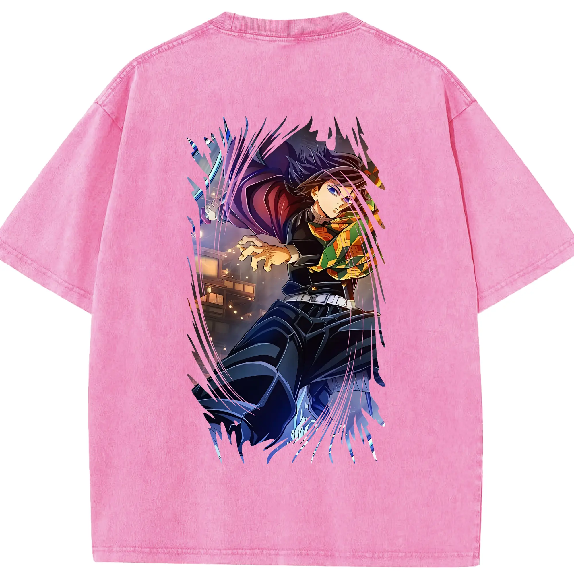 鬼滅の刃 グッズ,冨岡 義勇 - 綿100% 半袖Tシャツ ・ バックプリント ・ 快適 通気性 ・ 日常使い 散歩 スポーツ用