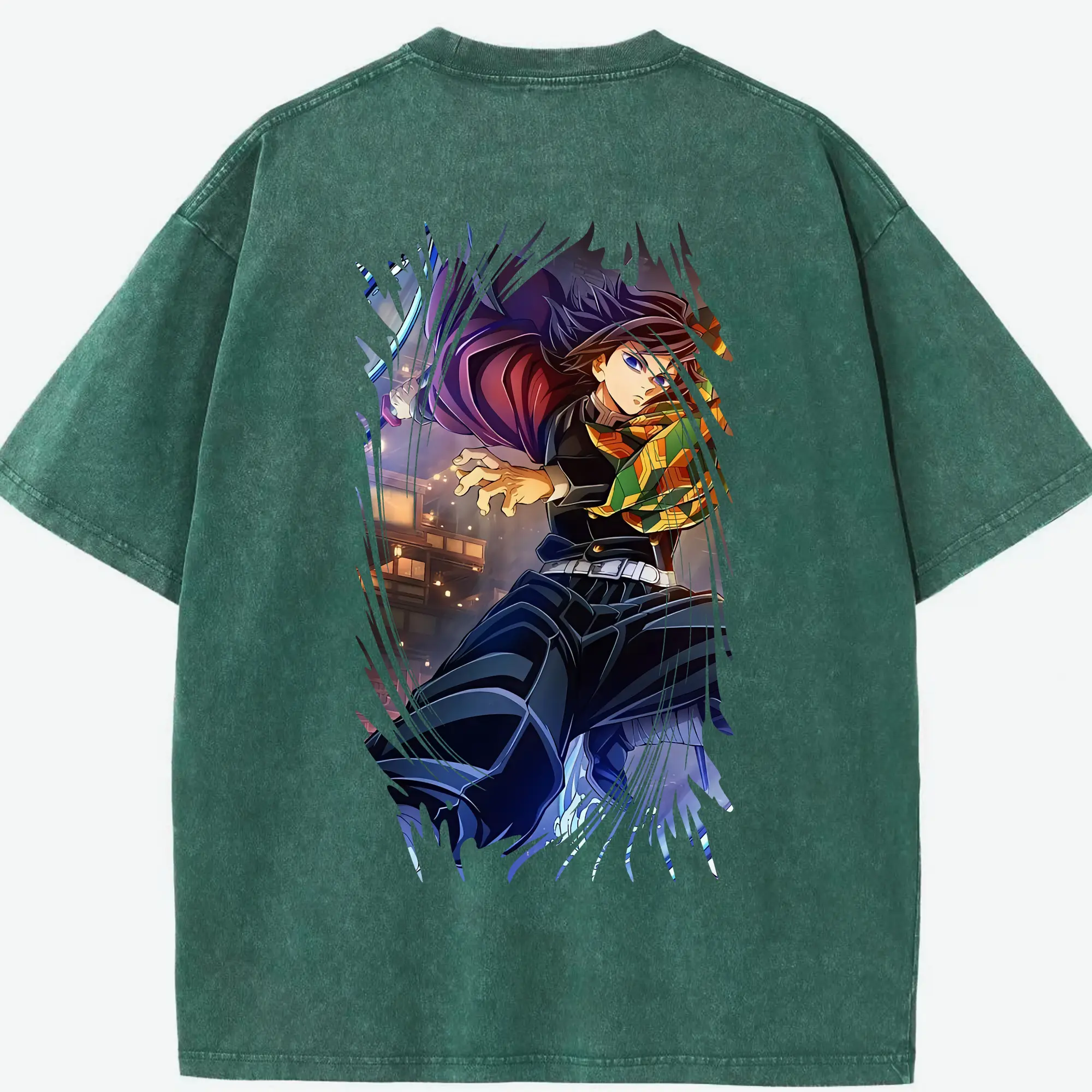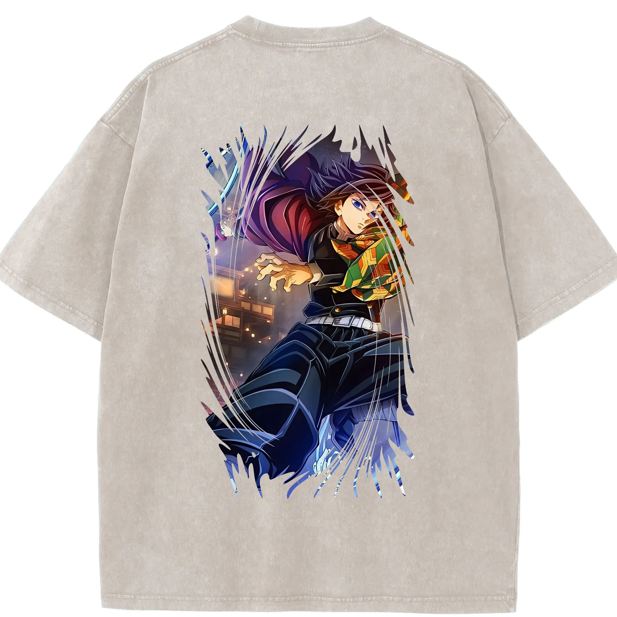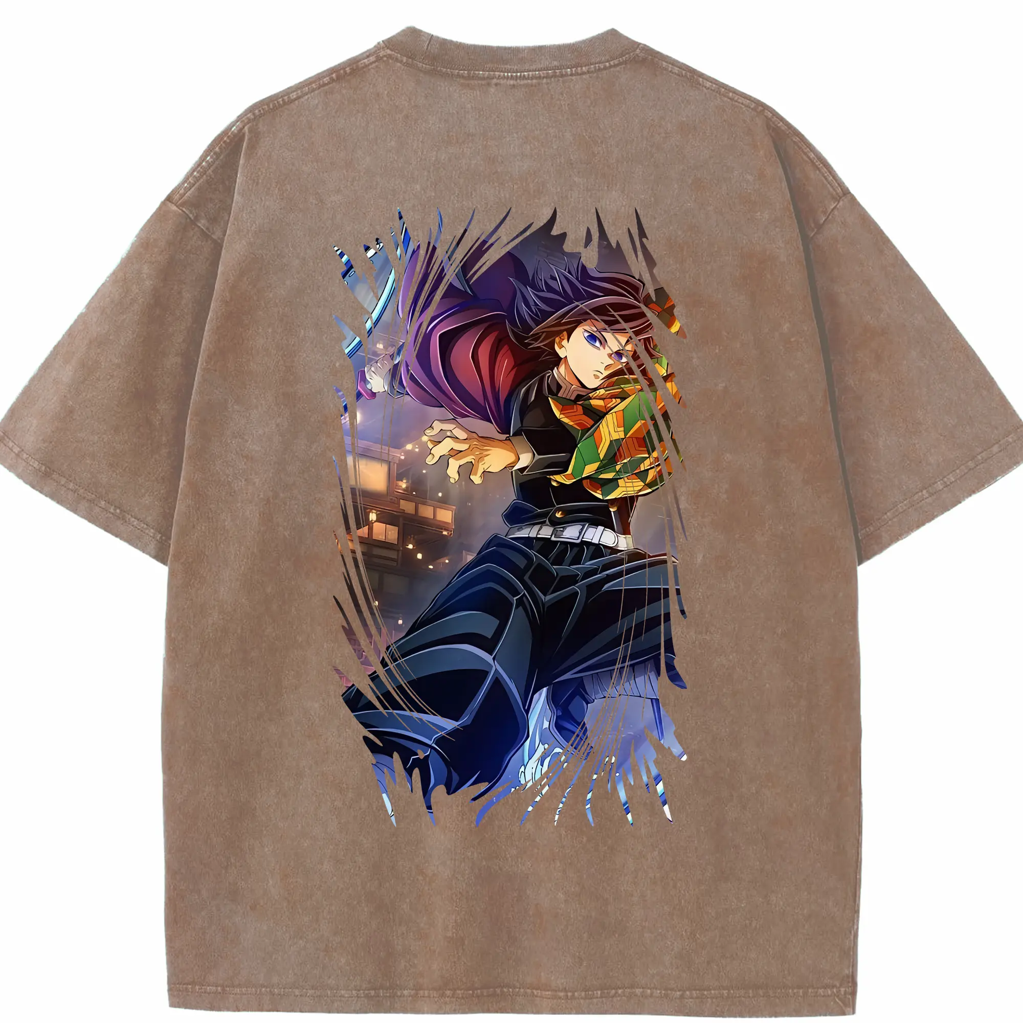 鬼滅の刃 グッズ,冨岡 義勇 - 綿100% 半袖Tシャツ ・ バックプリント ・ 快適 通気性 ・ 日常使い 散歩 スポーツ用