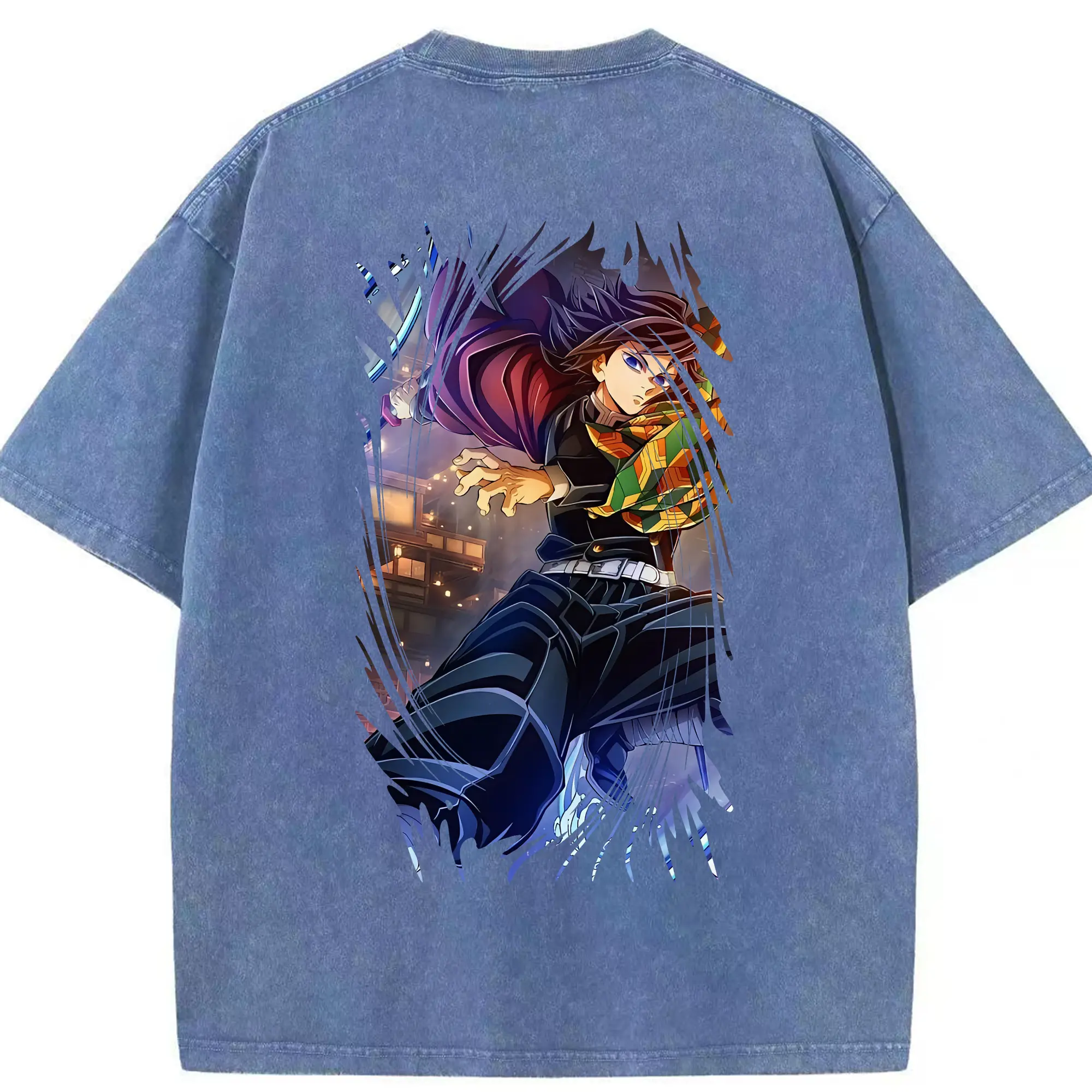鬼滅の刃 グッズ,冨岡 義勇 - 綿100% 半袖Tシャツ ・ フロントプリント ・ 快適 通気性 ・ 日常使い 散歩 スポーツ用