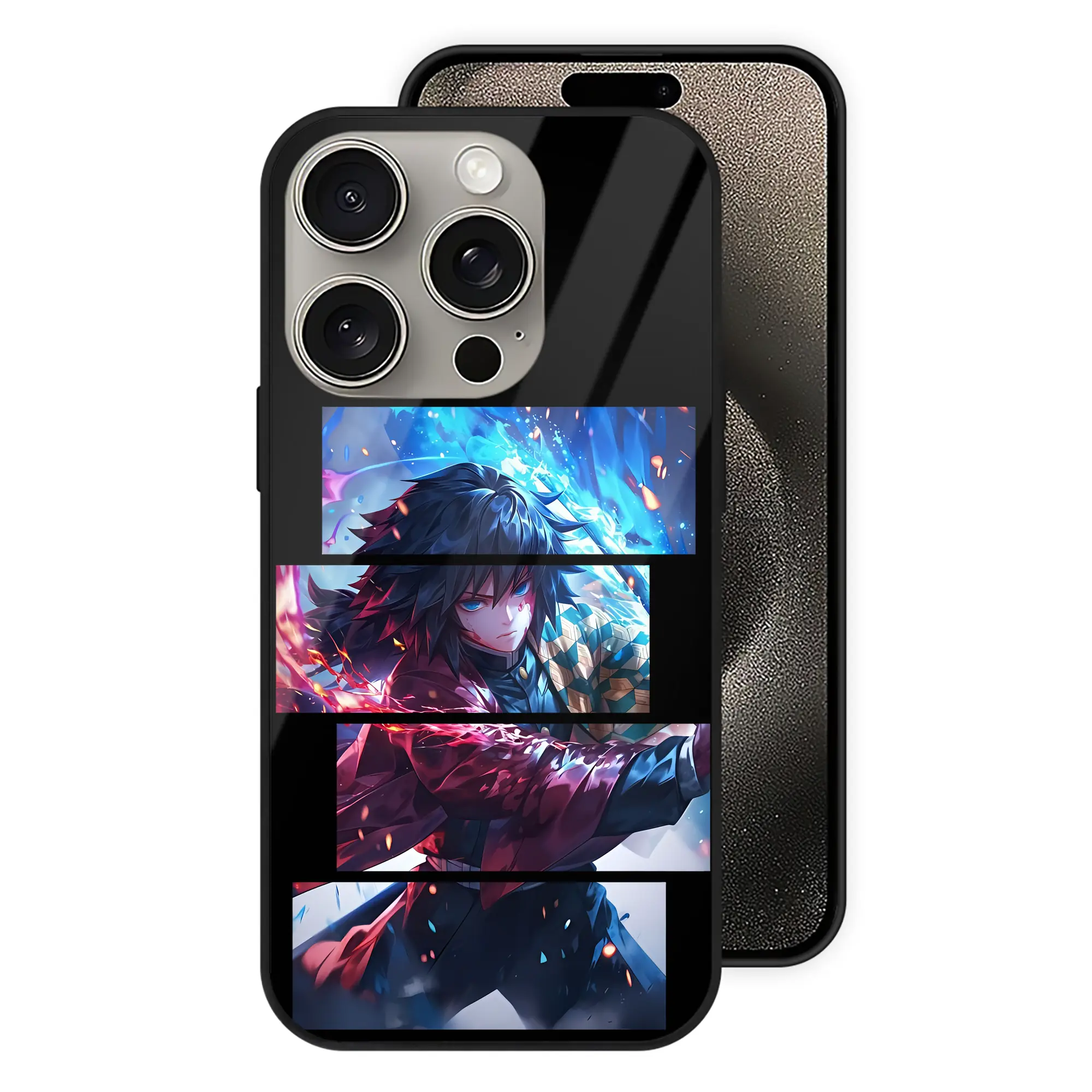 鬼滅の刃 グッズ,冨岡 義勇 - IPhone15Pro対応 ・ スマホケース ・ 背面ガラス ・ TPU+強化ガラス ・ 耐衝撃 ・ 黄変防止 ・ ワイヤレス充電対応 ・ 3D立体ボタン