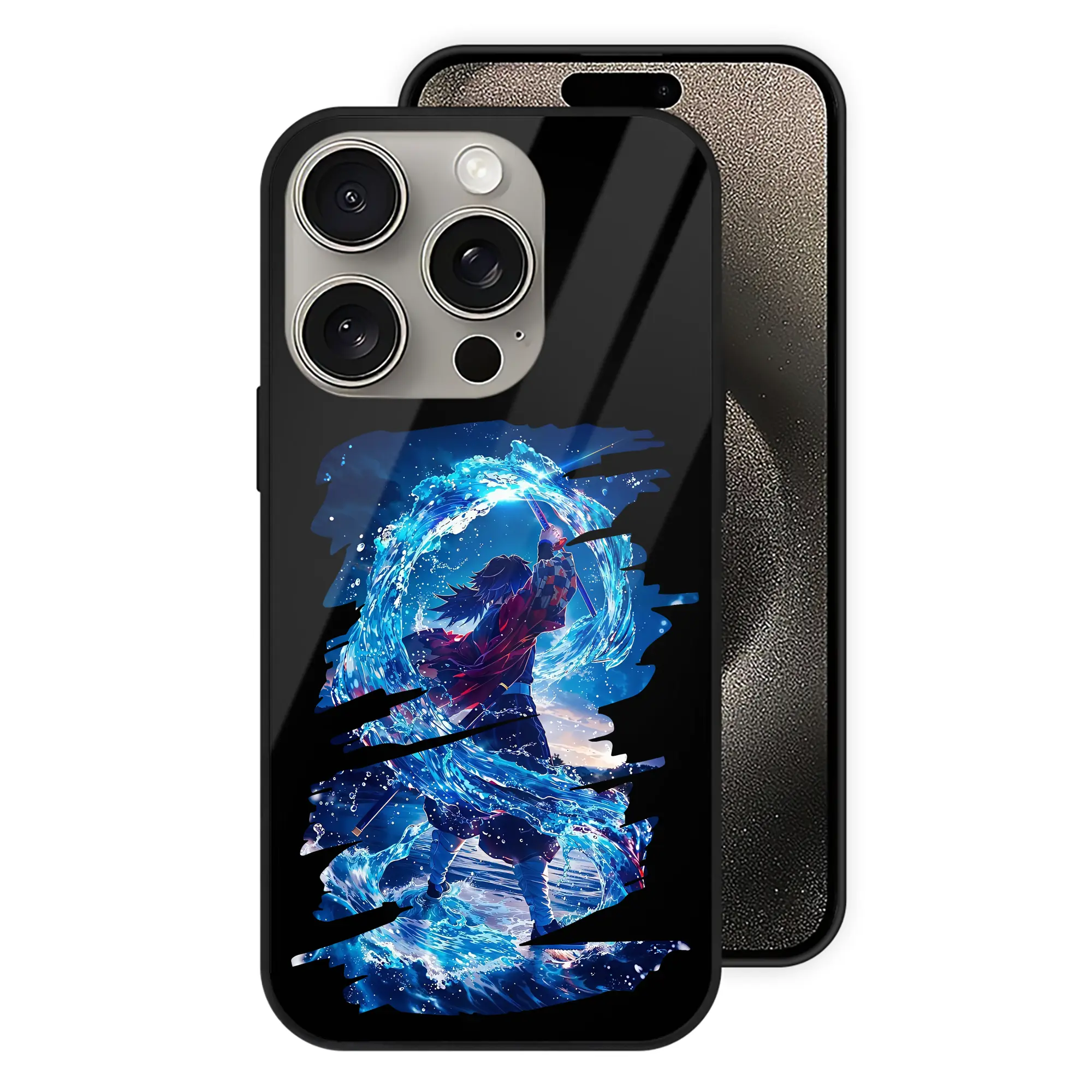 鬼滅の刃 グッズ,冨岡 義勇 - IPhone15Pro対応 ・ スマホケース ・ 背面ガラス ・ TPU+強化ガラス ・ 耐衝撃 ・ 黄変防止 ・ ワイヤレス充電対応 ・ 3D立体ボタン