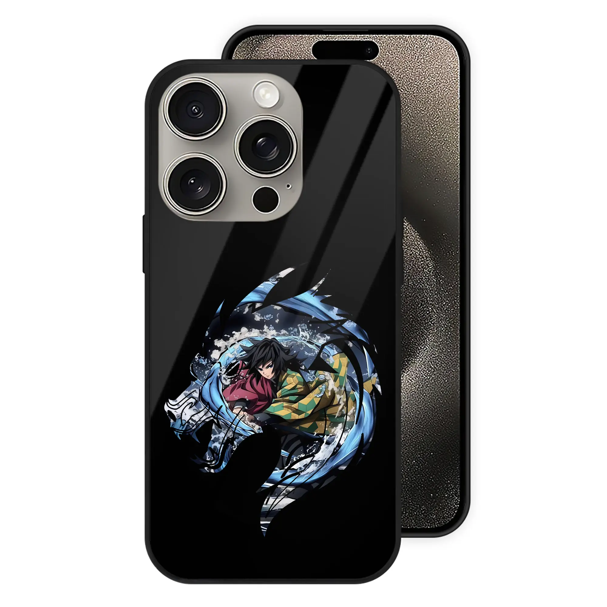 鬼滅の刃 グッズ,冨岡 義勇 - IPhone15Pro対応 ・ スマホケース ・ 背面ガラス ・ TPU+強化ガラス ・ 耐衝撃 ・ 黄変防止 ・ ワイヤレス充電対応 ・ 3D立体ボタン