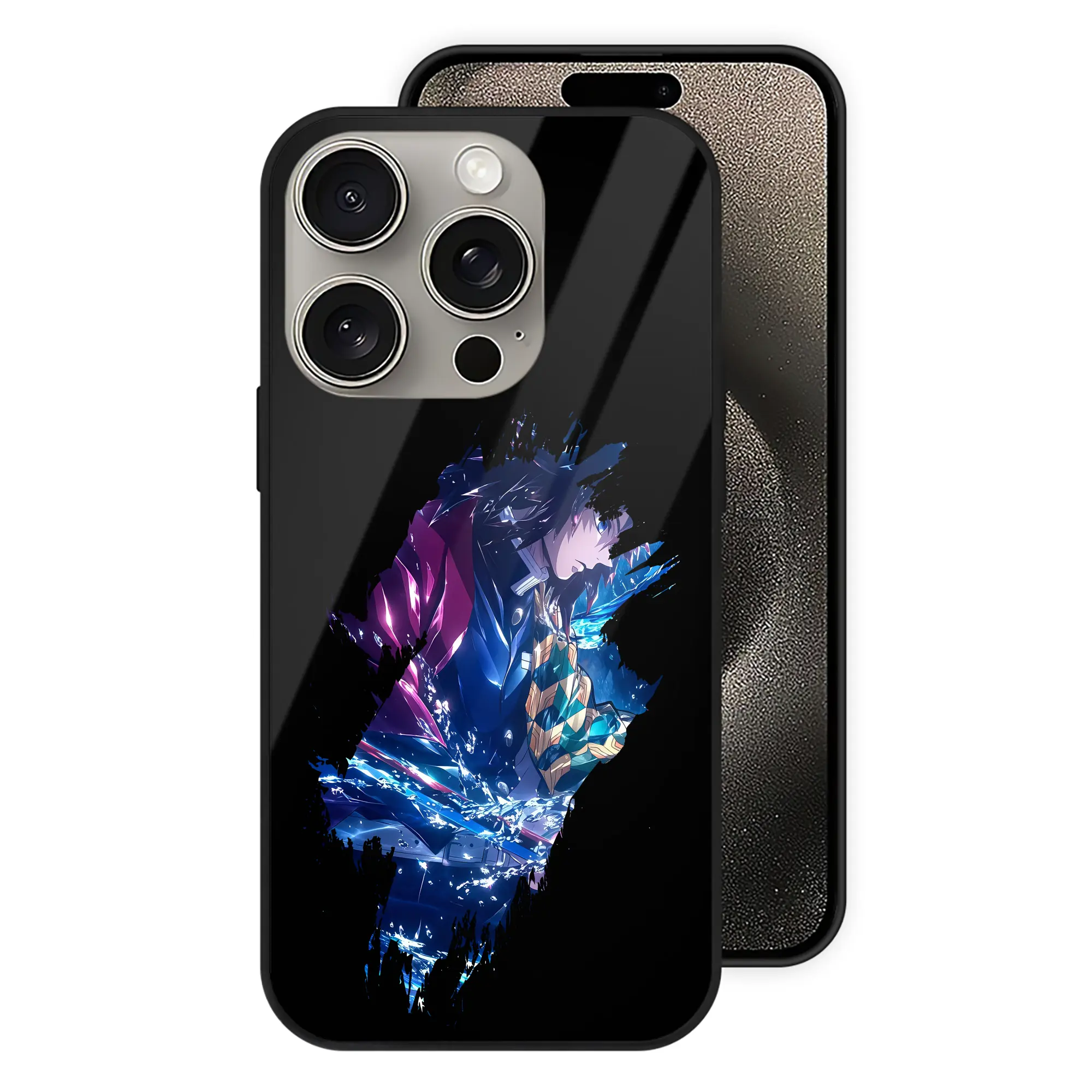 鬼滅の刃 グッズ,冨岡 義勇 - IPhone15Pro対応 ・ スマホケース ・ 背面ガラス ・ TPU+強化ガラス ・ 耐衝撃 ・ 黄変防止 ・ ワイヤレス充電対応 ・ 3D立体ボタン